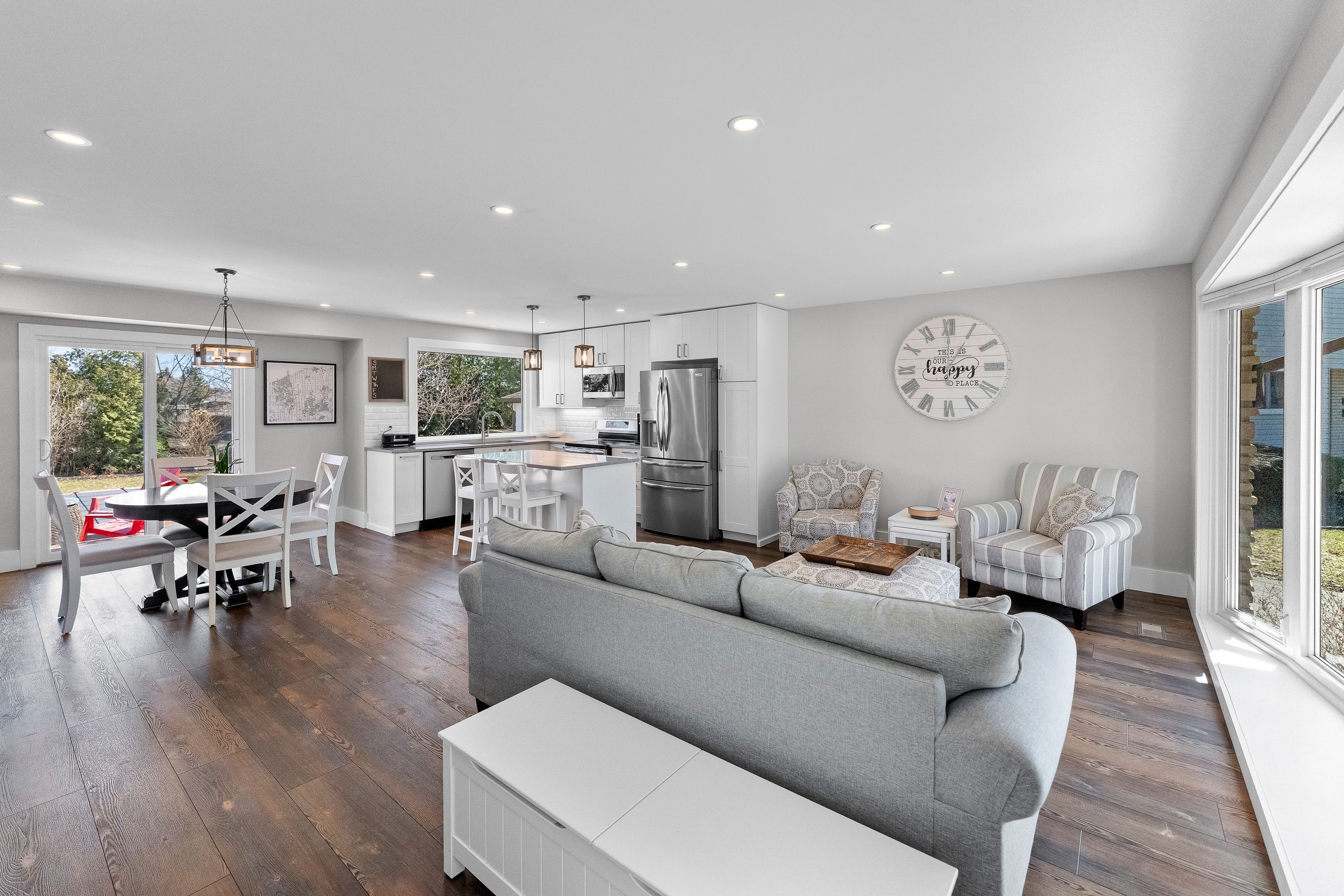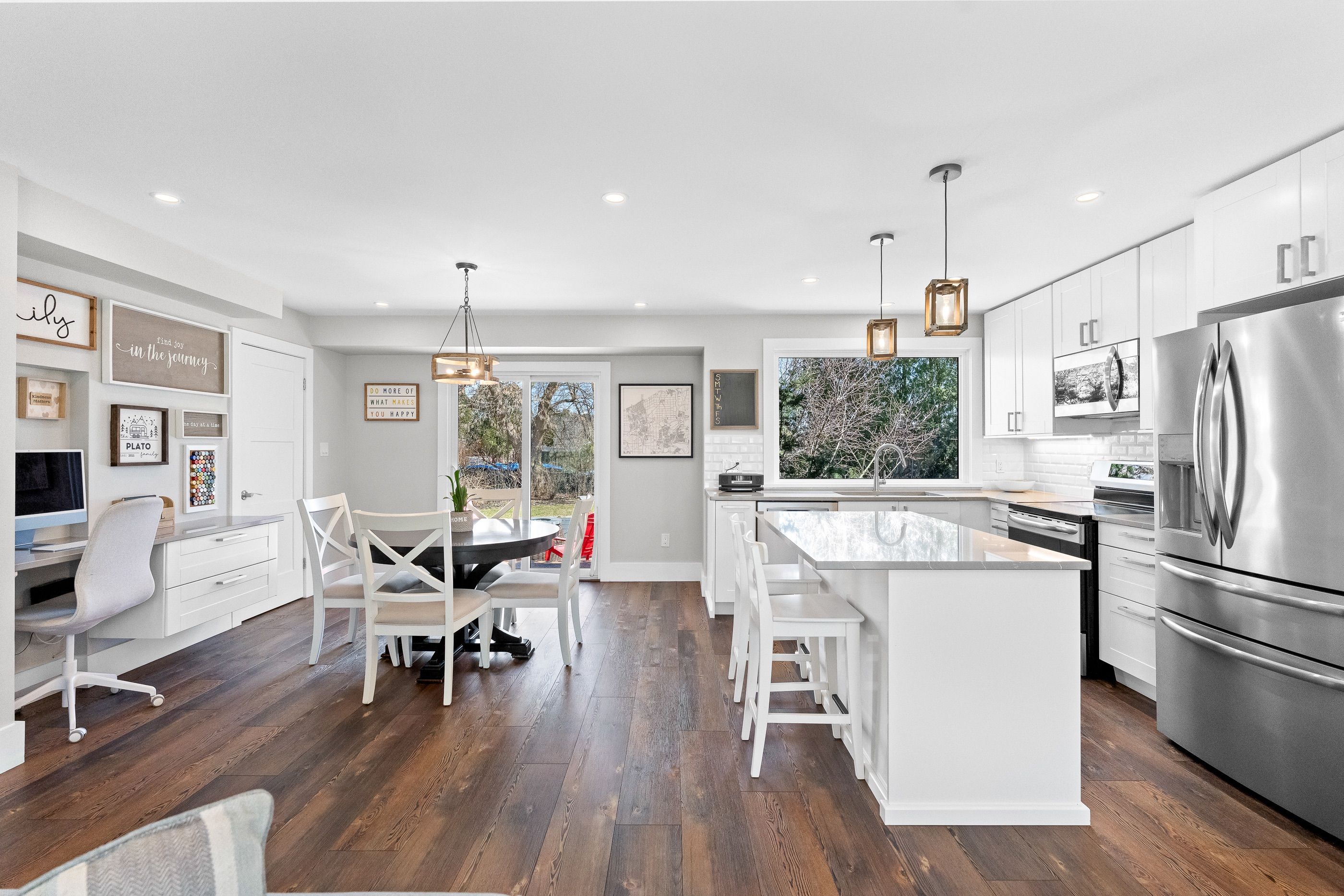 This is the perfect family home. This beautiful, four level, fully finished side-split is your key to a summer of fun. Resting on a pie shaped lot with a detached garage and located in this hidden gem of a neighbourhood, you are a short walk to all amenities, schools, parks, and more. Centrally located with connectivity to the entire Niagara Region, this home backs on to the millennium trail with a backyard that gives the peace and serenity one wishes for. Step into your open concept main floor layout with gorgeous laminate floors, pot-lights, large windows, a built-in workspace and a generous sized living room., A beautiful kitchen completes the space with quartz counters, tile backsplash and stainless steel appliances with a bonus, custom built pantry, giving you the desired living space for your family. The second story is complete with three bedrooms, including a large primary big enough for a king size bed and more with a renovated five piece washroom with double sink, floating vanity, and a beautiful glass and tile shower tub combo. The lower level rec room area is a perfect entertaining space complete with 8.5 foot ceilings and extra large windows, letting in an abundance of natural light and also includes a bonus playroom area with built-in shelving and extra storage closets. The bonus fourth level offers a separate, three-piece washroom, a large laundry room, separate storage room, and a bonus finish space that can be used as a home office, media room, or potential fourth bedroom. Saving the best for last is the stunning backyard. Space complete with a beautiful 32x16 inground, heated saltwater pool, new composite deck (2025) and dining area with pergola. All of this with extra yard, space and gardening area that provides the desired privacy during your summer enjoyment.