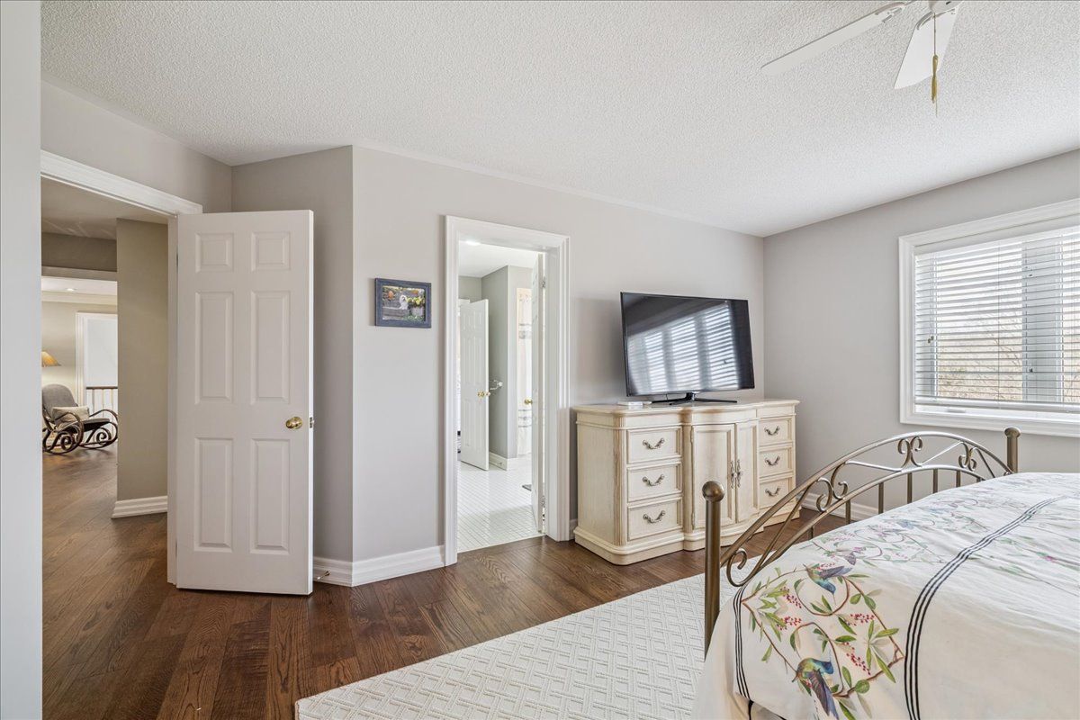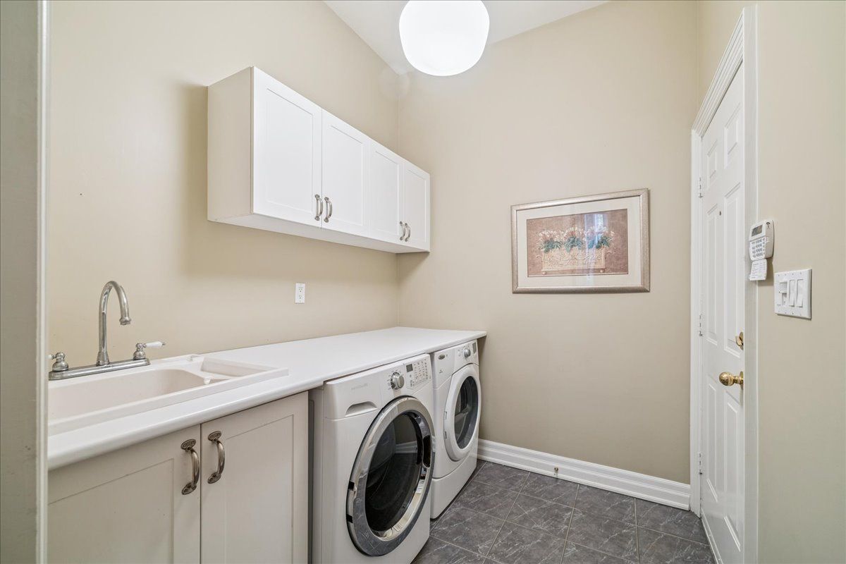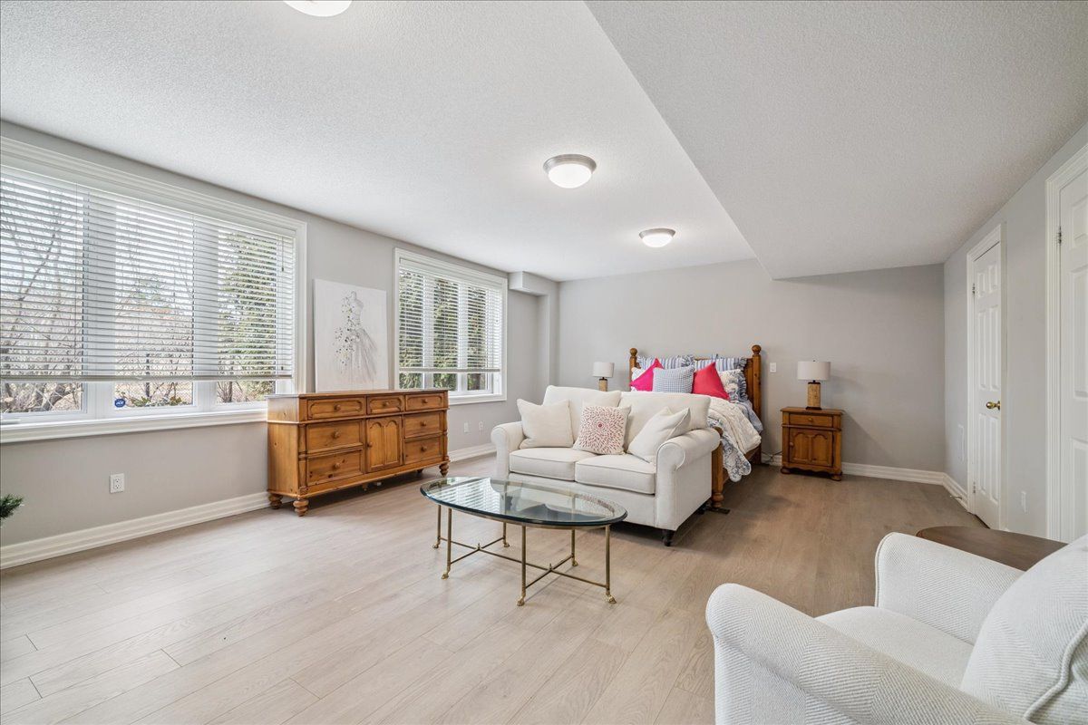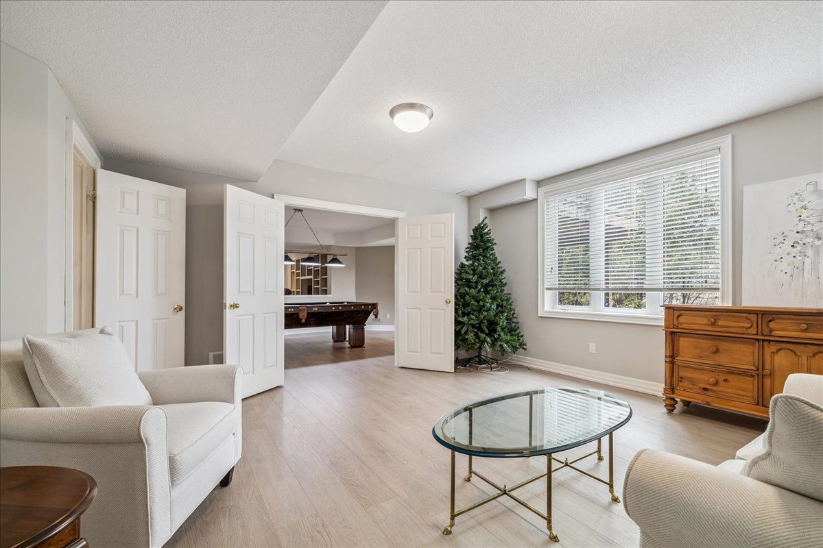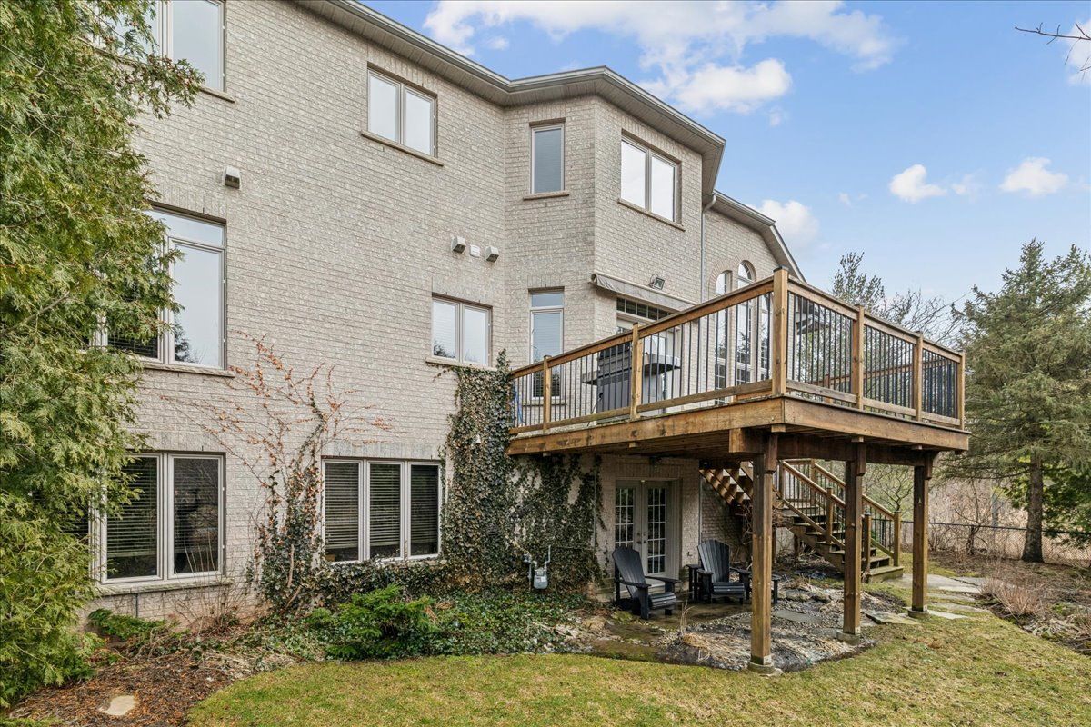 Built by the owner of Fernbrook Homes for his personal residence. TREED END UNIT RAVINE LOT - WALKOUT BASEMENT. This rare executive end-unit freehold townhome is set on a treed ravine lot - the largest on the street! Imagine waking in your main floor master to breathtaking treed views and unwinding in your walk-out basement retreat. With over 4000sq ft of total finished living space across three levels, this home is designed for those who crave both luxury and nature. Surrounded by the scenic beauty of Lions Valley Park, Sixteen Mile Creek, and Canadas Heritage walking Trail at the end of your driveway, this home offers a peaceful yet connected lifestyle in one of Oakville's most exclusive neighbourhoods - Woodhaven Estates. Inside, a grand two-storey foyer welcomes you, leading to an open and airy main level with hardwood floors, a formal open dining area, and a spacious living room with 16 foot windows bathed in natural light. The kitchen features maple cabinetry, granite countertops, chefs appliances, pantry, and breakfast area. Step out onto your deck, with a natural gas bbq connection, to enjoy a morning coffee while taking in the serene treed views. Upstairs, continues the wide plank hardwood flooring with another family room and two additional bedrooms and a four-piece bathroom, also on this level is a 17 ft x 9 ft storage room. The 1565 sq ft finished walk-out lower level with 2nd gas fireplace is a showstopper - offering a versatile entertainment space and billiards table, a three-piece bathroom and abundant storage. The walk-out leads to a stunning backyard oasis, where you'll find a stone patio, inground sprinkler system, all surrounded by lush greenery. Located just minutes from top-rated schools, Oakville Hospital, highways, and every convenience you could need.