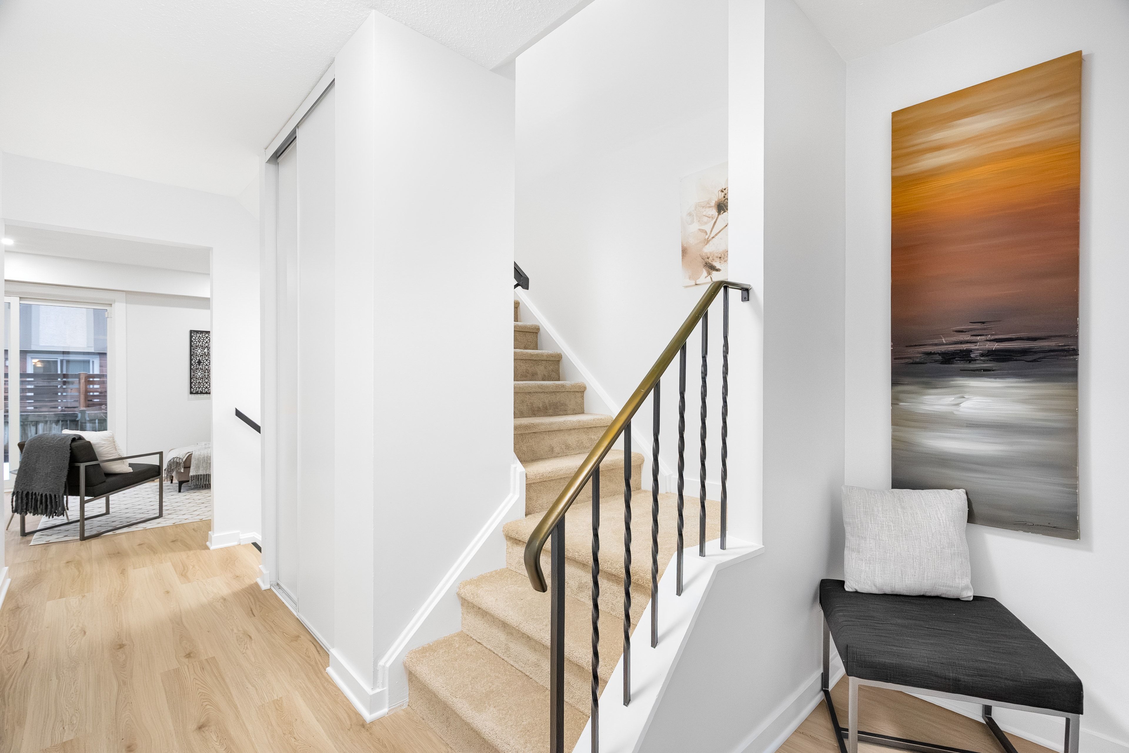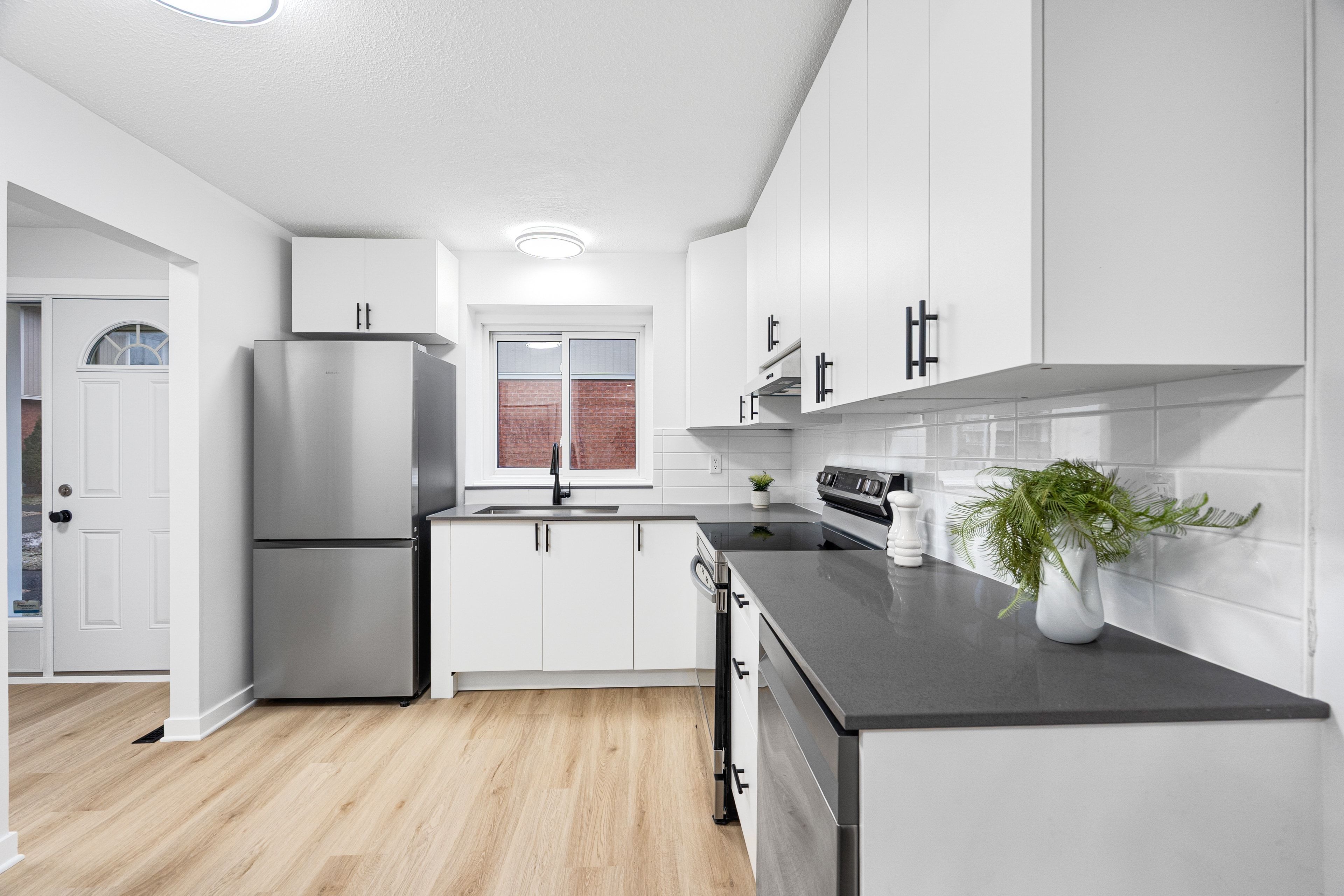 Welcome to this beautifully fully renovated 3-bedroom, 2-bathroom condo townhome in the community of Bells Corners. Renovated from top to bottom, this move-in-ready home features stylish modern finishes and brand-new appliances, offering a turnkey opportunity for first-time buyers, investors, or anyone seeking low-maintenance living. The bright and spacious main level offers an open living and dining area perfect for everyday living and entertaining, along with a completely updated kitchen featuring modern cabinetry, quality finishes, and new appliances. Upstairs, you will find three generously sized bedrooms and a fully renovated main bathroom with contemporary fixtures and finishes. The lower level adds valuable living space with a large rec room, laundry area, and a convenient second bathroom, ideal for a home office, gym, or additional family space. Enjoy the private, sun-filled backyard, perfect for relaxing, gardening, or creating your own outdoor retreat. Conveniently located close to parks, schools, shopping, the Trans Canada Trail, and major transit routes, with easy access to the highway for commuting.1 parking space included.