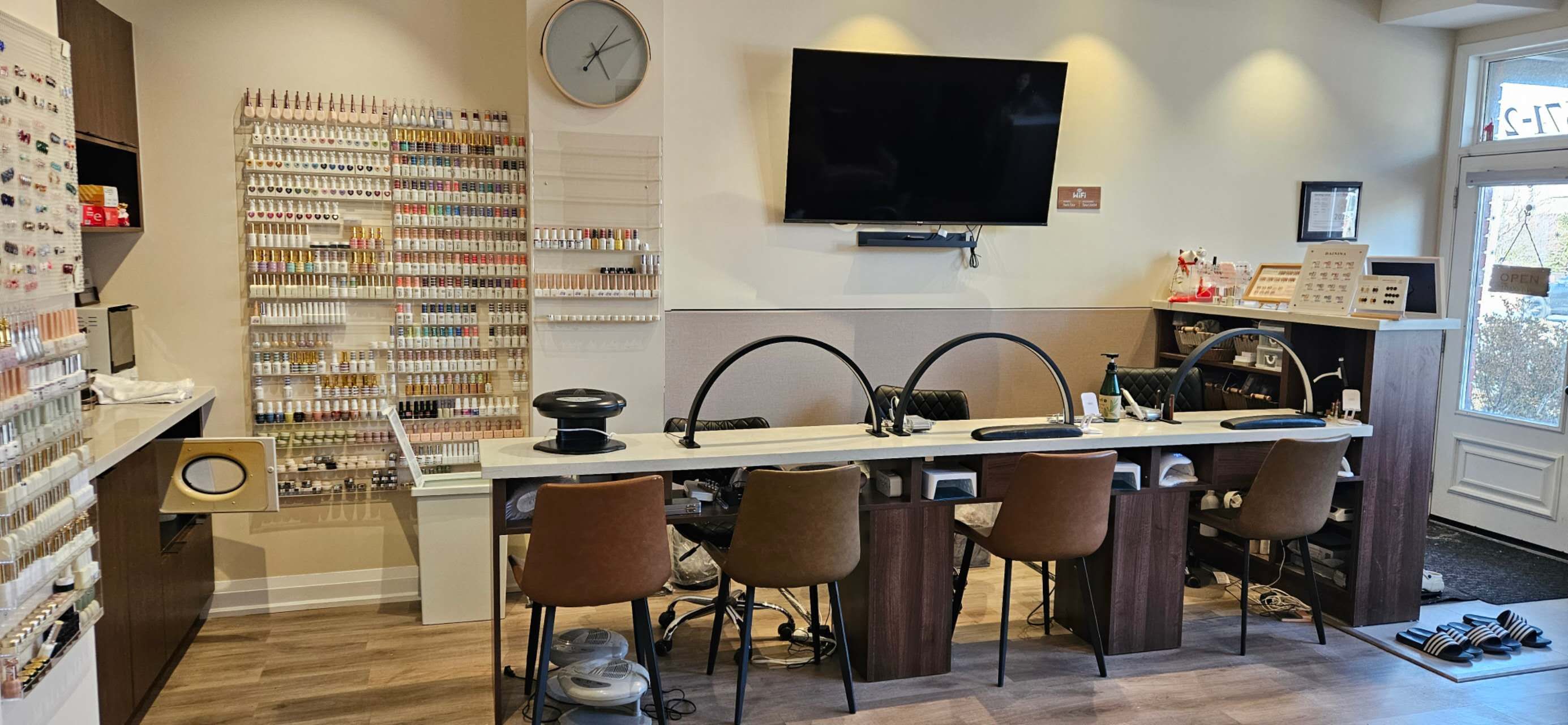 Newly renovated Nail Salon located in a densely populated residential areas In Markham. Close to Markham & Stouffville Hospital. Two Pedicure chairs and three manicure tables for six persons. One private room and one washroom . One receiption desk .660 sqft with only $2599 TMI&HST included. Great opportunity for beginers to start your own business .5 -star Google reviews.