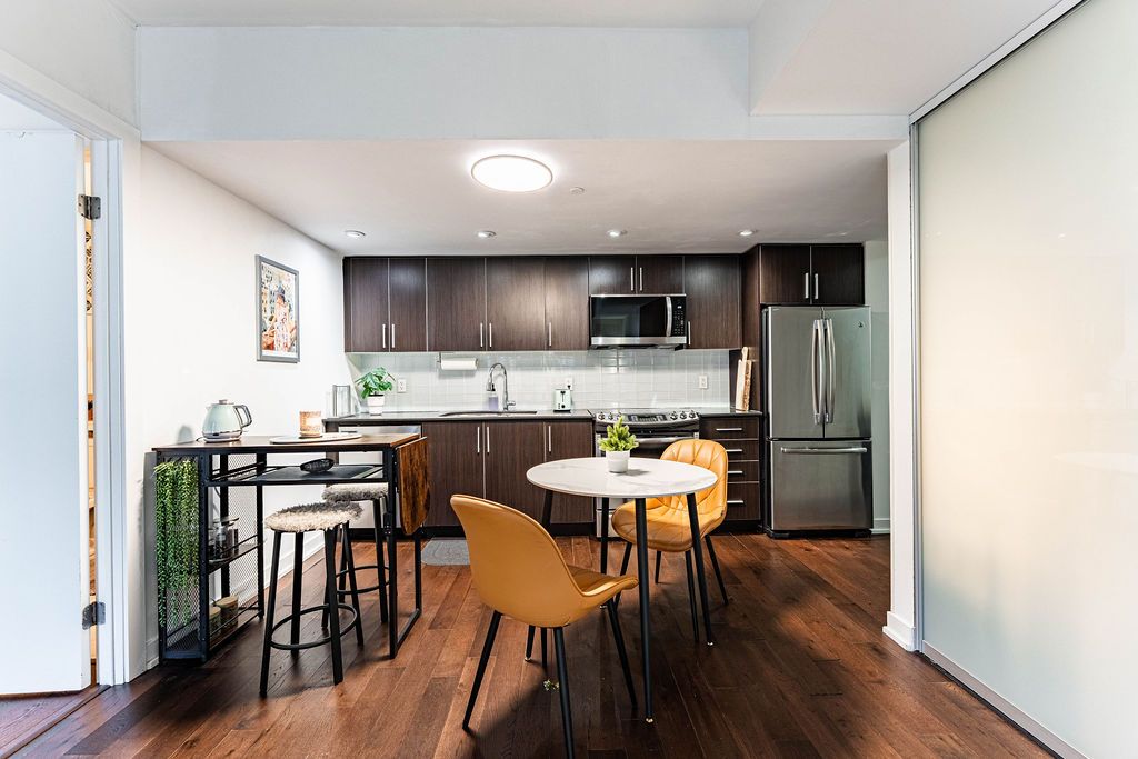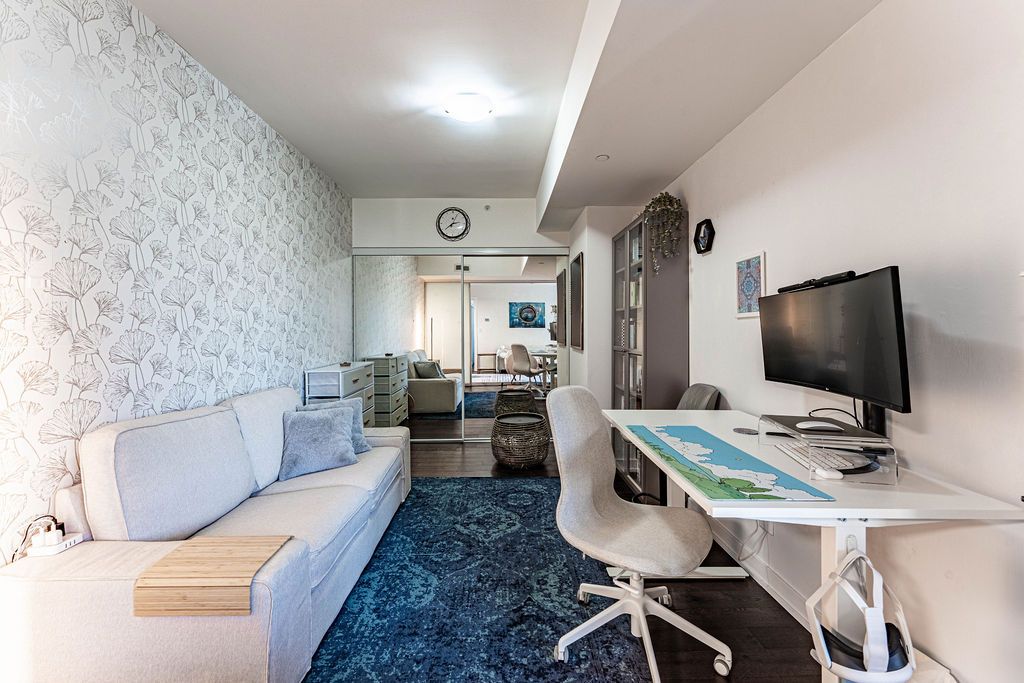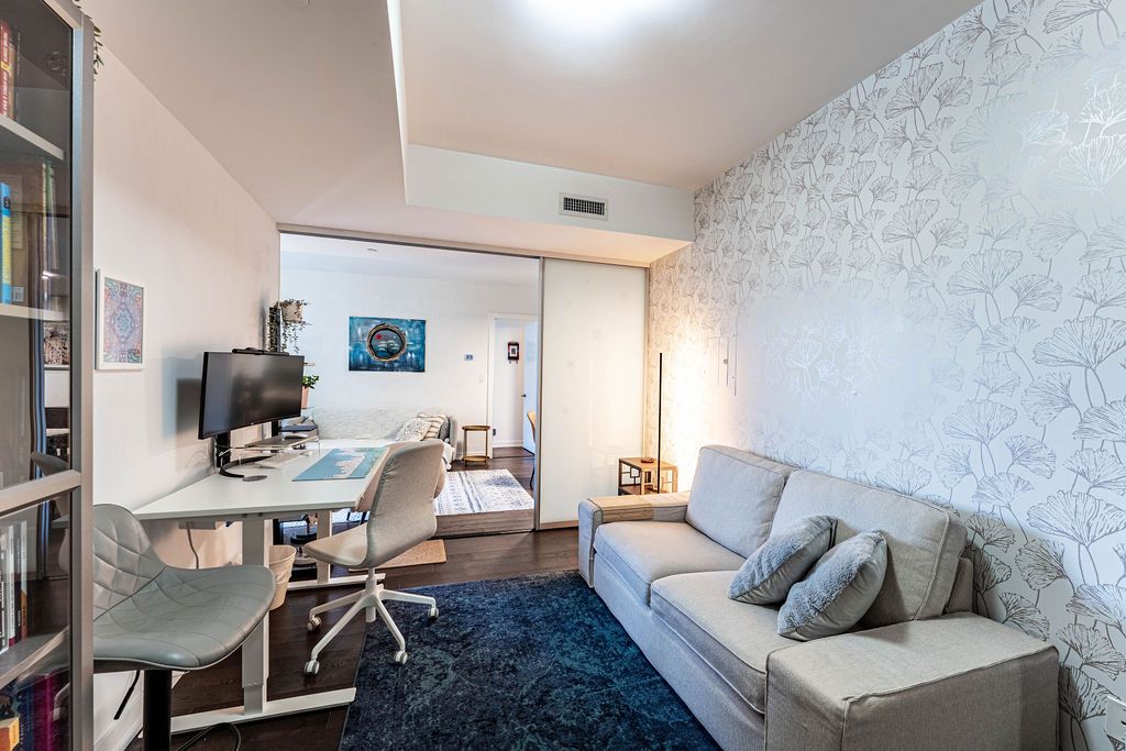 RARE - 956 Square Feet 1 Bedroom + 2 Den layout - (one of the dens can be used as a 2nd bedroom). This beautifully maintained suite features a spacious living and dining area, a large modern kitchen with full-size appliances, and two full bathrooms, both with tubs. The layout is further elevated by 2 oversized dens: one offers ideal flexibility for a home office, studio, or additional lounge space, while the other is a spacious enclosed den featuring a closet and sliding doors separating it from the living room, offering rare bedroom-like functionality for family members or guests, a nursery, or a large private work-from-home setup. Bright, modern, and highly functional, this is a condo that lives far larger than its category. Located Steps from historic Fort York and the waterfront trails - a 22 km paved, multi-use path running along Lake Ontario from the Humber Bridge in the west to the Balmy Beach Park in the east, you're perfectly placed for recreation. Daily life is seamless with Loblaws Supermarket, Shoppers Drug Mart, LCBO, plus King West's top dining all walking distance. Commuting is a breeze with a 93 Transit Score and Billy Bishop Airport minutes away. Residents enjoy "Club Y" amenities - Gym, a Party Room With Cocktail Lounge, Chefs Kitchen, Dining Room and Bar, Library, Rooftop Terrace With Outdoor BBQ Area With Dining and Sundeck Area, Guest suites, while top-tier local schools make this vibrant community ideal for everyone.