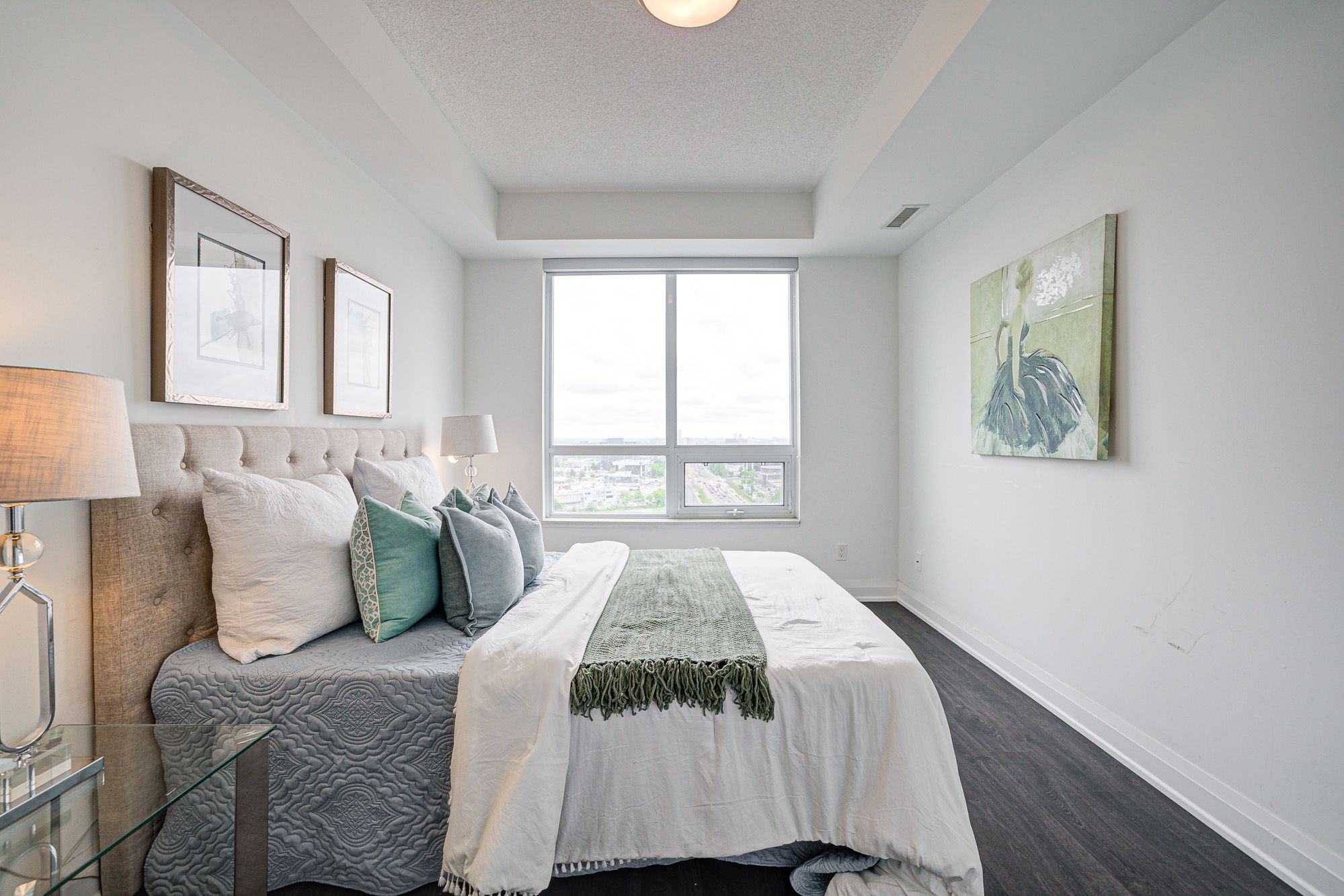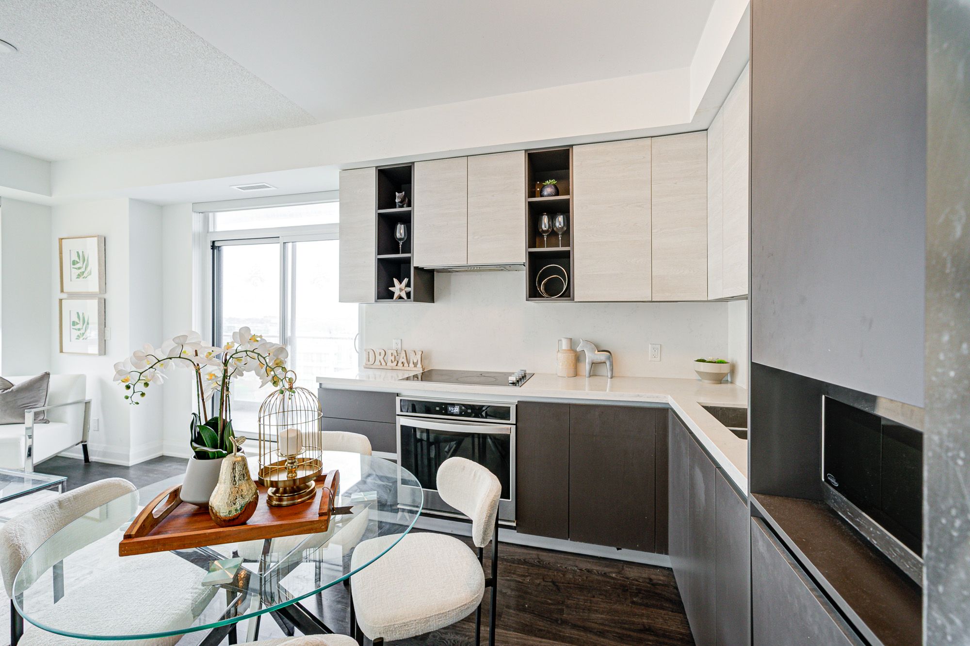 Rarely Available! Spacious, Bright corner 2 Bed, 2 Bath unit with 2 Parking Spots and Locker! Prime Location at Hwy 7 & Leslie, featuring two generously sized bedrooms, two full bathrooms, Enjoy unobstructed southeast views, abundant natural light, and a bright, airy layout with 9-foot ceilings and high-grade laminate flooring throughout.The open-concept kitchen is equipped with quartz countertops and stainless steel appliances. The primary bedroom offer a private ensuite. Located just steps from Viva transit, restaurants, banks, schools, and shops, with easy access to Hwy 404, Yonge, and Hwy 407.The building impresses with its quality construction, stylish lobby, and a full range of amenities, including a gym, party room, game room, and library.**Extras** S/S Fridge , Stove, Dishwasher, Washer & Dryer, Microwave, Window Blind &, Light Fixtures, 2 parkings and 1 locker included.