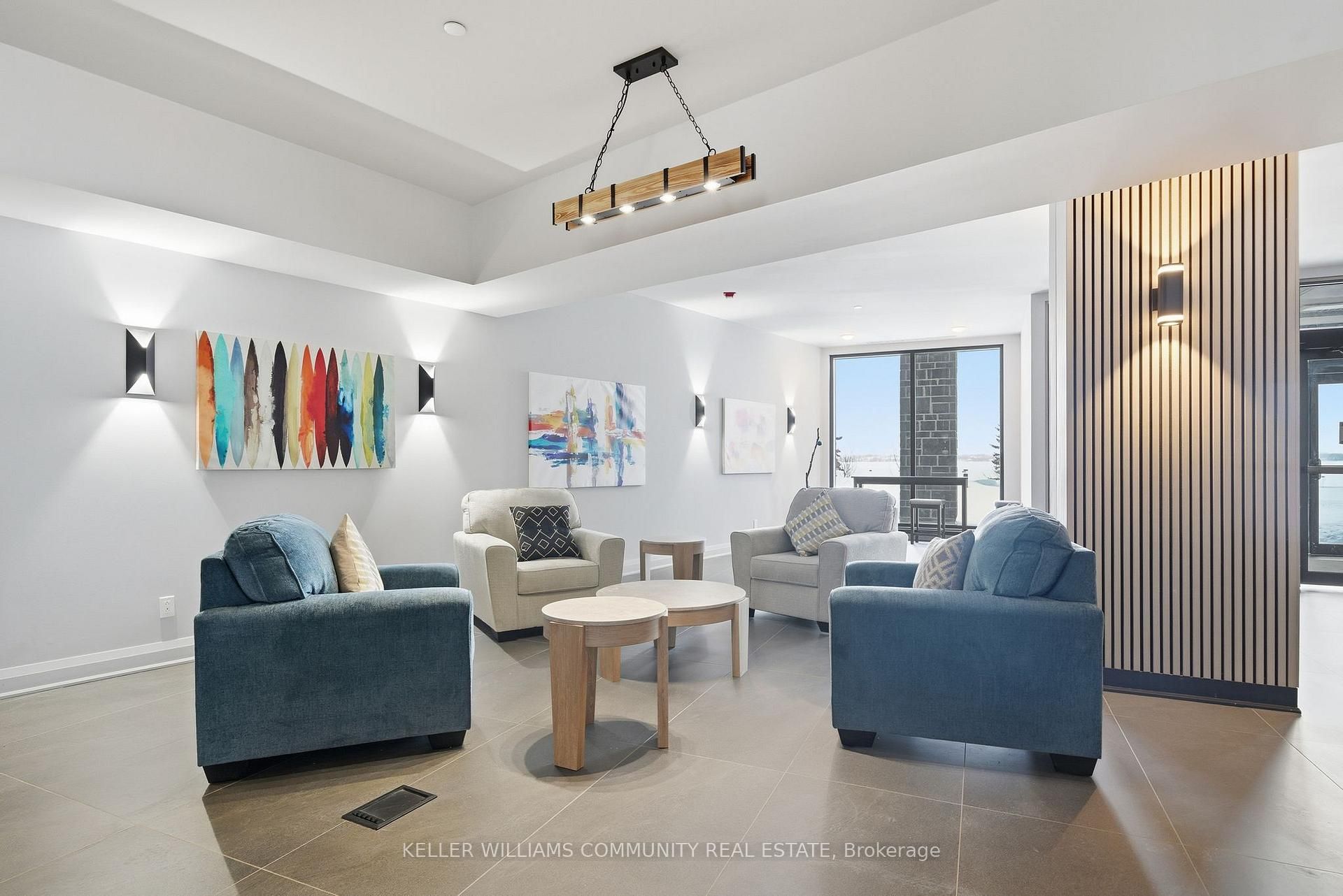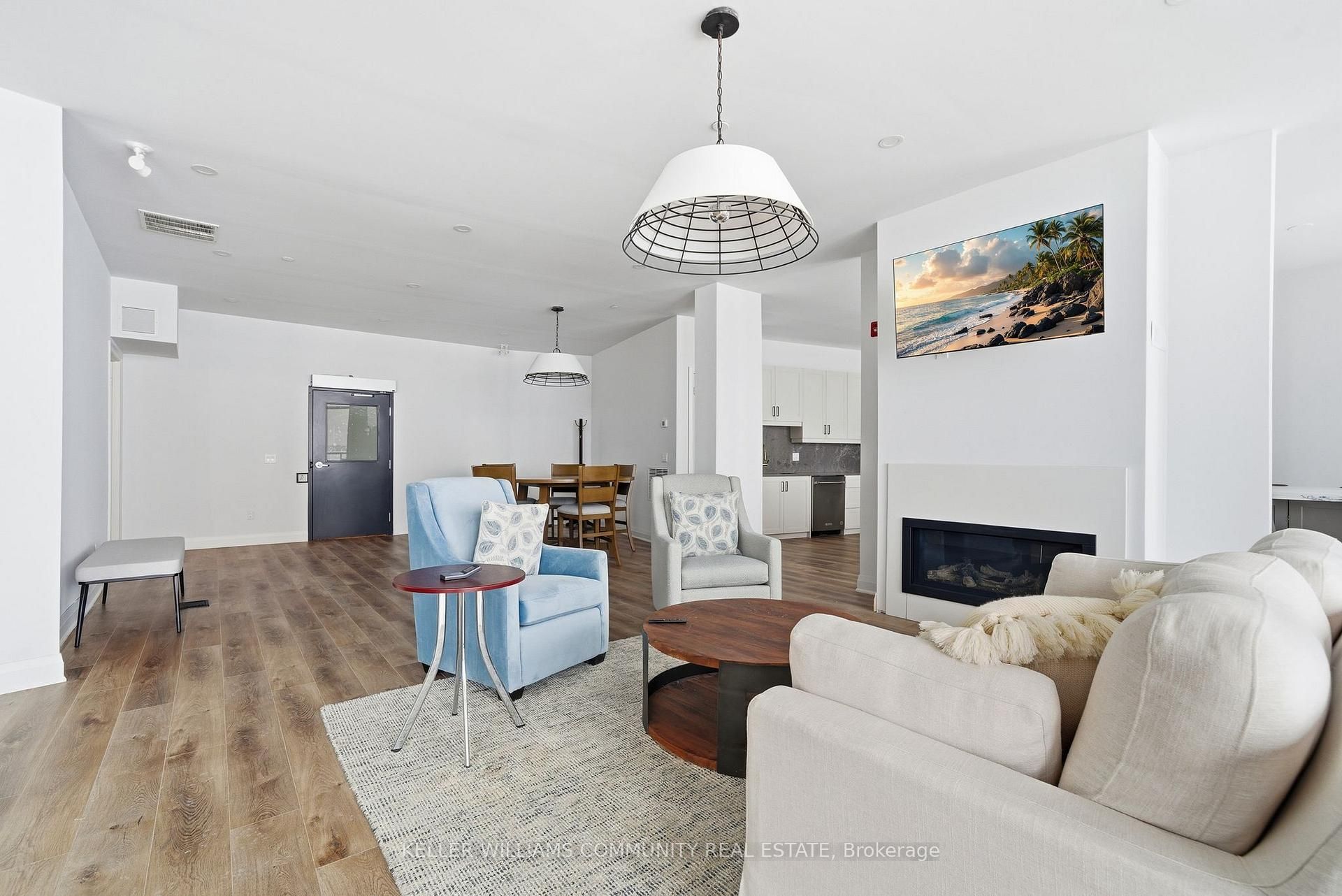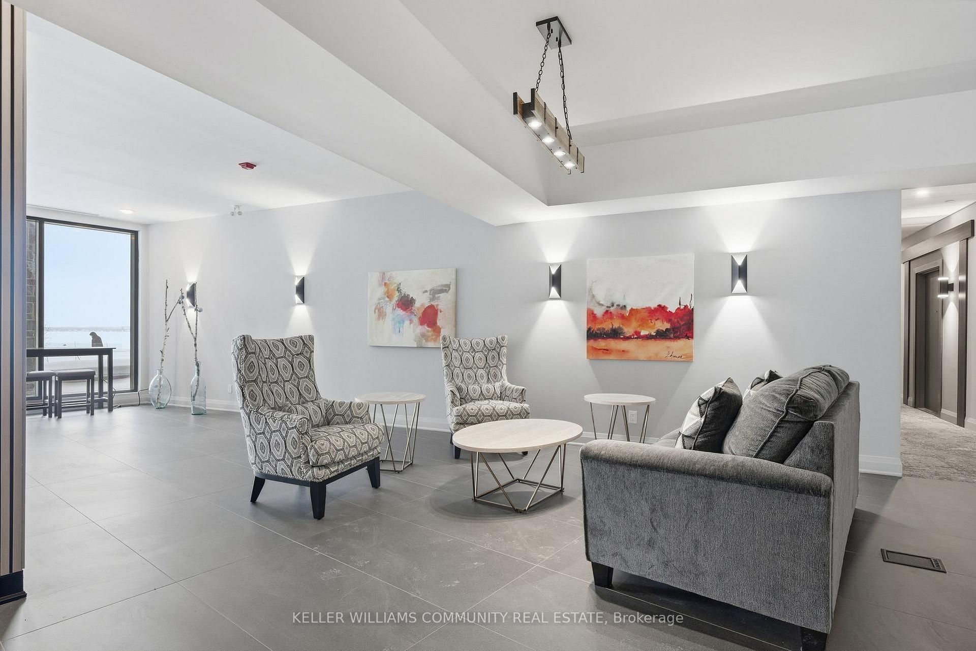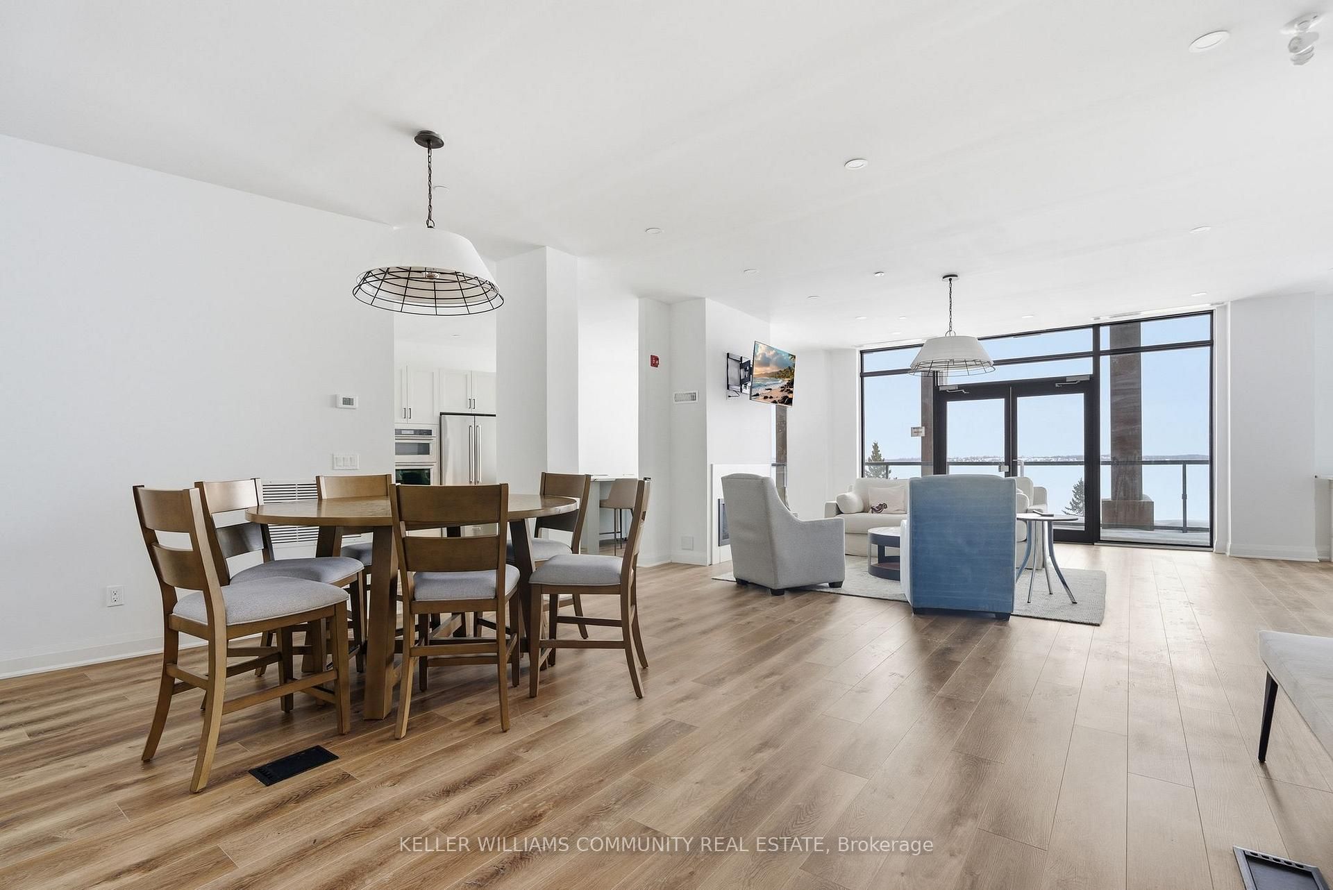 Welcome to Unit 206 at The Moorings on Cameron Lake, where refined condo living meets the calm and beauty of waterfront life. This spacious2-bedroom, 2-bathroom suite offers approximately 1,063 sq ft of thoughtfully designed interior space, plus a stunning 39-foot covered balconyproviding an additional 250 sq ft of living space, all overlooking Cameron Lake. Perfect for relaxing, entertaining, or enjoying unforgettablesunrises over the water. Inside, the suite features 9-foot ceilings, expansive windows, and quality finishes throughout, creating a bright andwelcoming atmosphere. The open-concept living and dining area flows seamlessly into the modern kitchen, ideal for both everyday living andhosting guests. The primary bedroom includes a private ensuite and generous closet space, while the second bedroom and full bathroom offerflexibility for guests, a home office, or comfortable everyday living. In-suite laundry adds to the convenience of this well-designed home.Residents of The Moorings enjoy exceptional resort-style amenities designed to support both relaxation and an active lifestyle. The third-floorowners' lounge features breathtaking lake views and includes a full kitchen, dining areas, cozy fireside seating, and a private theatre room,perfect for entertaining. The fitness centre is equipped with cardio and weight machines change rooms, a dedicated yoga and pilates studio, anda cedar sauna. Additional conveniences include a pet cleaning station, ideal for dog owners after lakeside walks or outdoor adventures.Outdoors, residents can enjoy a heated pool and spa, tennis and pickleball courts, a landscaped lakeside courtyard, and waterfront docking withswimming and lounging platforms. Located on the shores of Cameron lake in the heart of Fenelon Falls, this condo offers the perfect balance ofnature and walkable small-town charm!