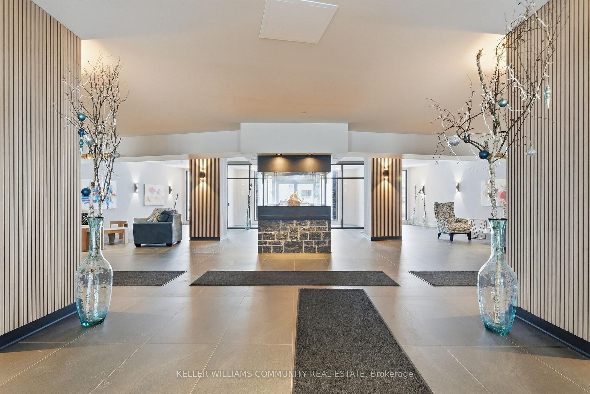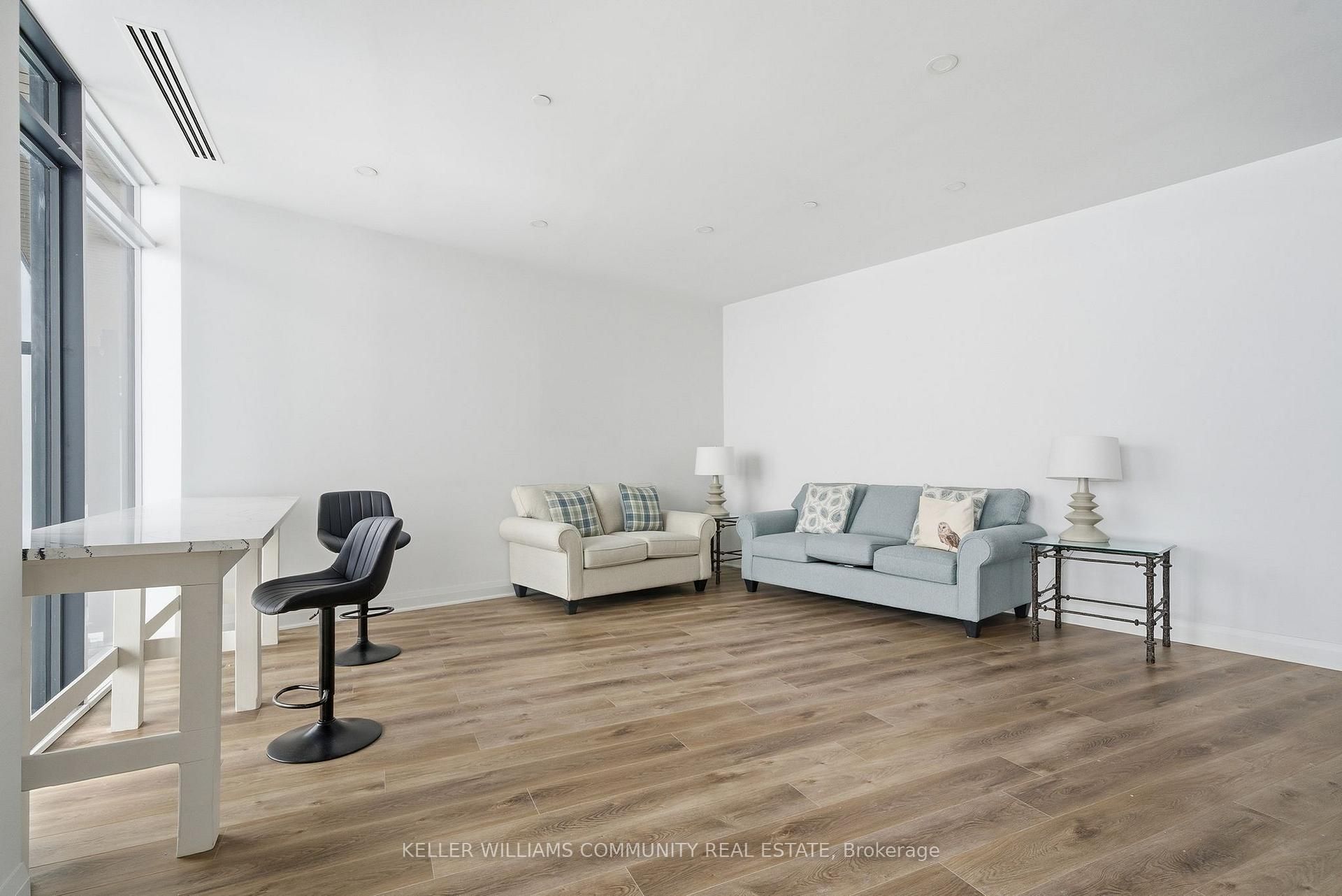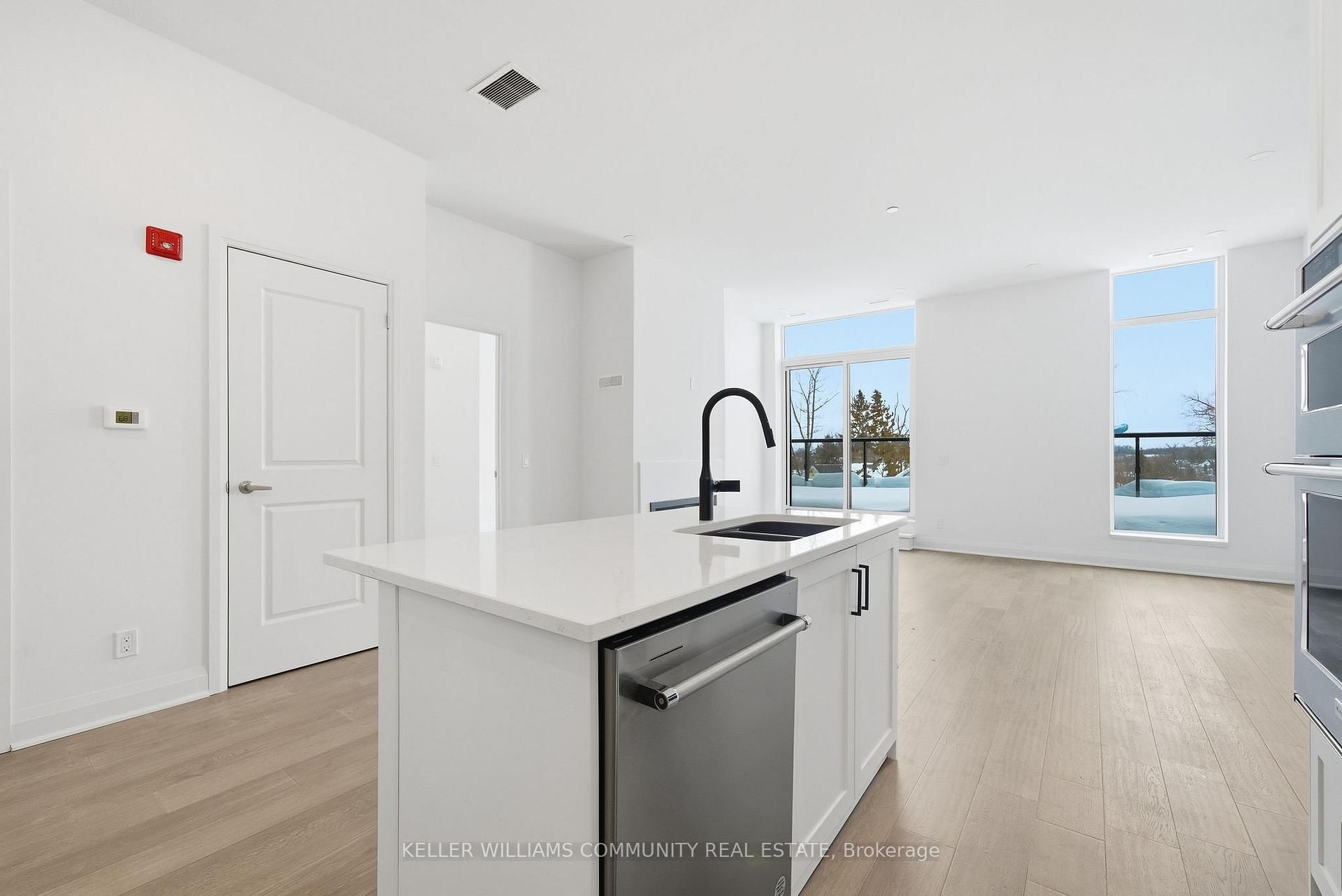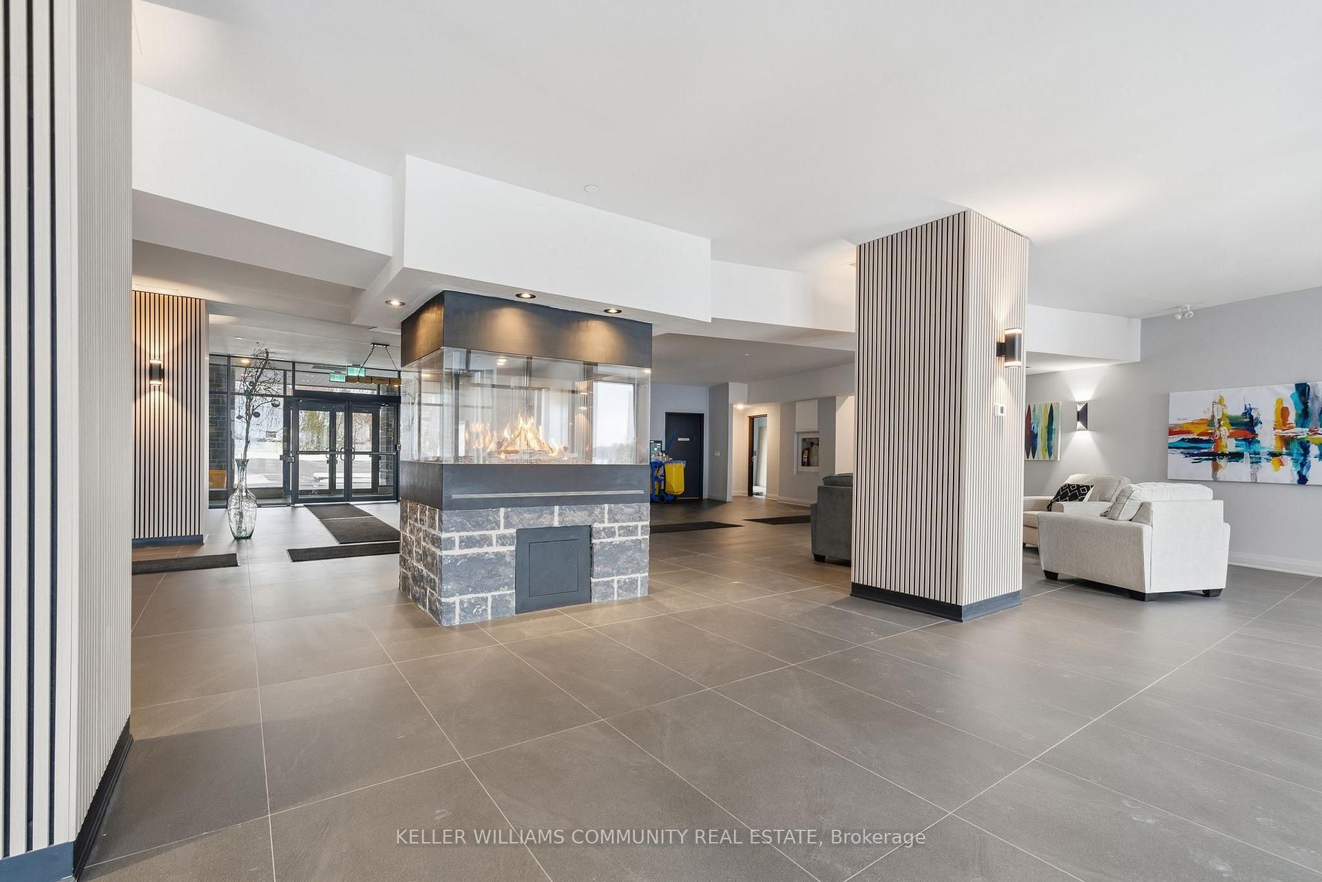 Welcome to Unit 206 at The Moorings on Cameron Lake, where refined condo living meets the calm and beauty of waterfront life. This spacious2-bedroom, 2-bathroom suite offers approximately 1,063 sq ft of thoughtfully designed interior space, plus a stunning 39-foot covered balconyproviding an additional 250 sq ft of living space, all overlooking Cameron Lake. Perfect for relaxing, entertaining, or enjoying unforgettablesunrises over the water. Inside, the suite features 9-foot ceilings, expansive windows, and quality finishes throughout, creating a bright andwelcoming atmosphere. The open-concept living and dining area flows seamlessly into the modern kitchen, ideal for both everyday living andhosting guests. The primary bedroom includes a private ensuite and generous closet space, while the second bedroom and full bathroom offerflexibility for guests, a home office, or comfortable everyday living. In-suite laundry adds to the convenience of this well-designed home.Residents of The Moorings enjoy exceptional resort-style amenities designed to support both relaxation and an active lifestyle. The third-floorowners' lounge features breathtaking lake views and includes a full kitchen, dining areas, cozy fireside seating, and a private theatre room,perfect for entertaining. The fitness centre is equipped with cardio and weight machines change rooms, a dedicated yoga and pilates studio, anda cedar sauna. Additional conveniences include a pet cleaning station, ideal for dog owners after lakeside walks or outdoor adventures.Outdoors, residents can enjoy a heated pool and spa, tennis and pickleball courts, a landscaped lakeside courtyard, and waterfront docking withswimming and lounging platforms. Located on the shores of Cameron lake in the heart of Fenelon Falls, this condo offers the perfect balance ofnature and walkable small-town charm!