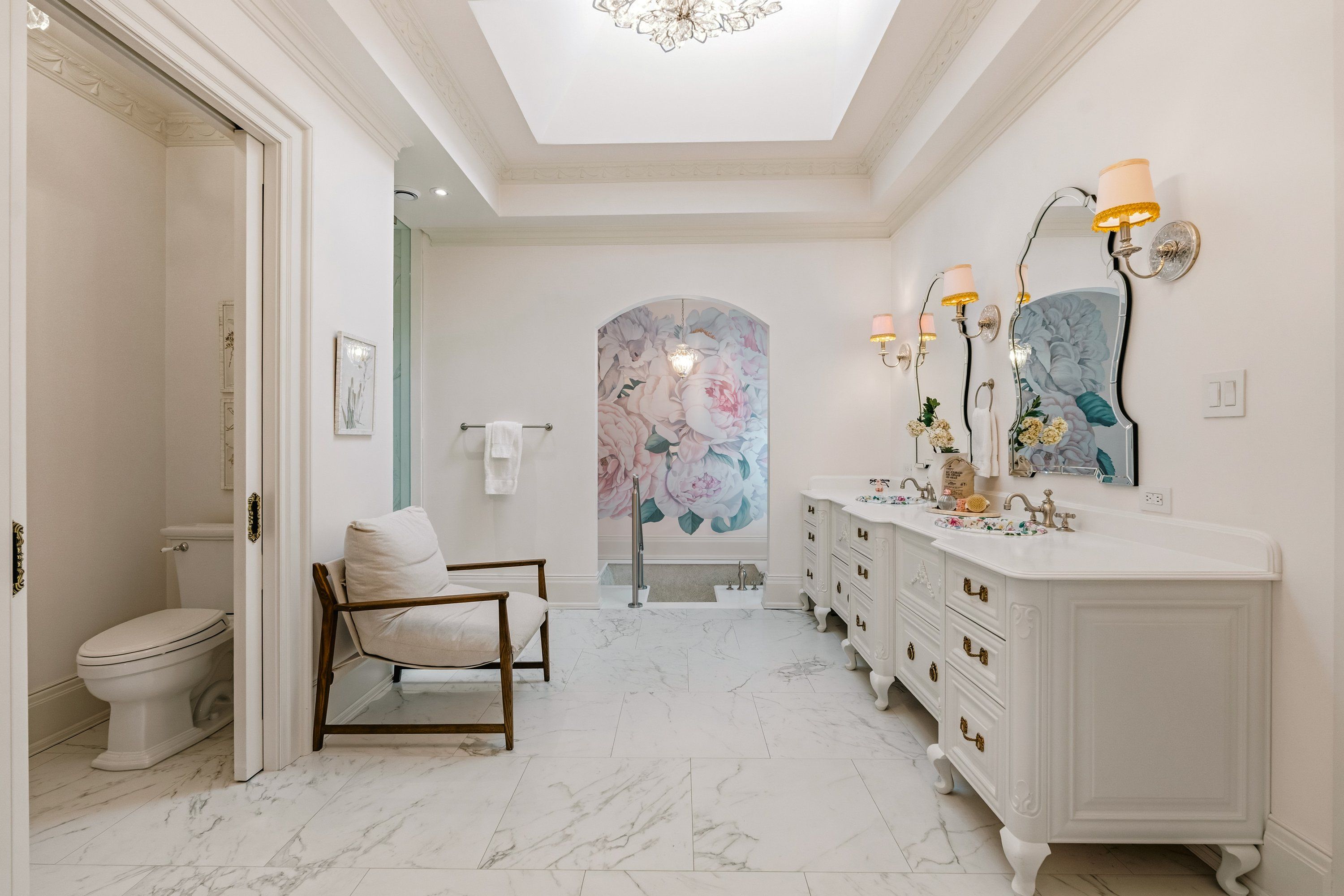 Exceptionally situated within a secluded cul-de-sac on nearly a half-acre of manicured grounds, this custom-built 2017 estate represents the pinnacle of quality and refinement. Offering over 8,000 square feet of above-grade living space, the residence showcases meticulous craftsmanship and design inspiration drawn from the world's most prestigious 5-star hotels and global resorts; an ideal setting for family gatherings and high-level entertaining. The dramatic 2-storey grand foyer sets the tone, complemented by a private passenger elevator to access to all levels. Interior finishes reflect international influence, including a dining room inspired by The George V in Paris, an Orangerie greenhouse room reminiscent of a Relais & Châteaux estate, and a distinctive 2-storey office and study with a hidden connecting staircase modelled after an historic University of Toronto library. Designed for both sophisticated entertaining and daily living, the home features a double kitchen configuration with a sun-filled main kitchen and an enclosed back pantry kitchen for heavy cooking and catering. These spaces flow seamlessly into the breakfast area and majestic great room. Personal accommodations include two lavish primary suites with couture-style dressing rooms and ensuite bathrooms inspired by Japanese luxury. The fully finished lower level adds over 4,400 square feet dedicated to wellness and recreation, including a comprehensive fitness centre, spa, media room, games room, and a private guest or nanny's suite. Outdoors, the backyard transforms into a Caribbean-style pool retreat. Practical features include a heated circular driveway, heated triple-car garage, and state-of-the-art mechanical and security systems. This estate is a rare offering-an architectural statement of elegance, comfort, and master craftsmanship. Feng Shui certified by Master Paul Ng, with high life cycle for wealth. Three wealth centres, plus powerful energy for health, studies and relationships.