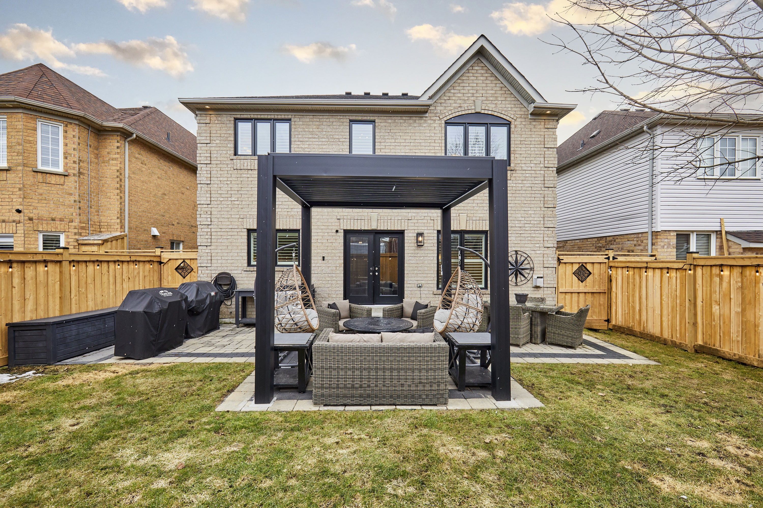Stunning, Great Gulf built all brick home offering 3,084 sq ft of refined living in the highly sought-after Williamsburg neighbourhood! Extensively renovated from top to bottom, inside & out, this exceptional property showcases true pride of ownership with designer finishes & high-end upgrades throughout. Step inside to soaring 9 ft ceilings & a bright, open-concept layout designed for both everyday comfort & memorable entertaining. The updated chef-inspired kitchen features quartz counters, centre island with breakfast bar, stainless steel appliances incl. gas range, French door fridge, custom backsplash, pantry & spacious breakfast area. The kitchen flows seamlessly into a formal dining room & inviting family room, with walk-out access to a beautifully landscaped backyard complete with a new louvered pergola-your private outdoor retreat. Offering 4 generous bedrooms, including a luxurious primary suite with spa-like ensuite featuring a jetted tub, double vanity & separate shower. A second bedroom boasts its own ensuite bath & walk-in closet, while 2 additional bedrooms provide ample space for family. Convenient main floor office for working from home or additional bedroom. Highlights include 2 family rooms, 3 fully renovated baths, hardwood flooring throughout main/upper levels (no carpet), updated staircases/railings, California shutters, designer lighting, waffle ceilings & main floor laundry with access to an ultimate finished garage hangout with wood ceiling & vinyl flooring. Additional upgrades incl. furnace, AC, windows, pot lights, roof, front/rear doors, driveway, garage doors, interlock walkway/patio, irrigation system, attic insulation, landscaping, fencing and more. Situated on a quiet, family-friendly street, walking distance to schools, parks & transit, and close to shopping, dining & recreation. Unfinished basement with large utility/storage area offers endless potential. A rare opportunity to own a turnkey, move-in ready home in a prime location!