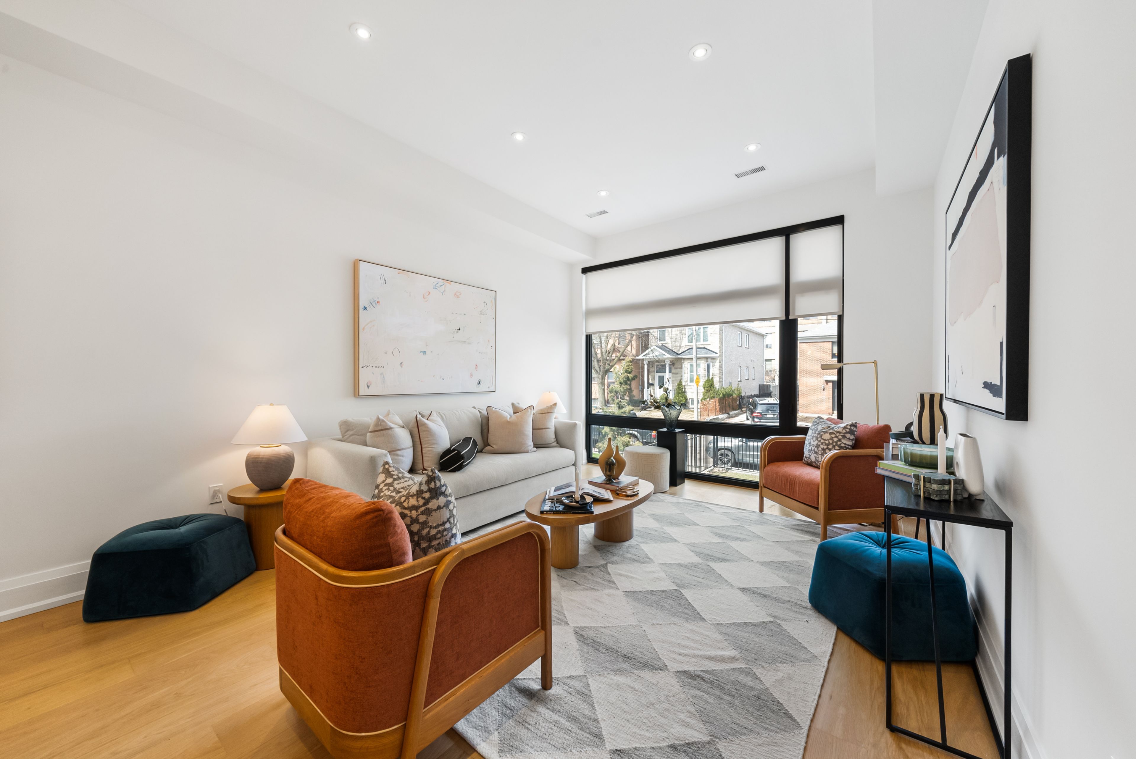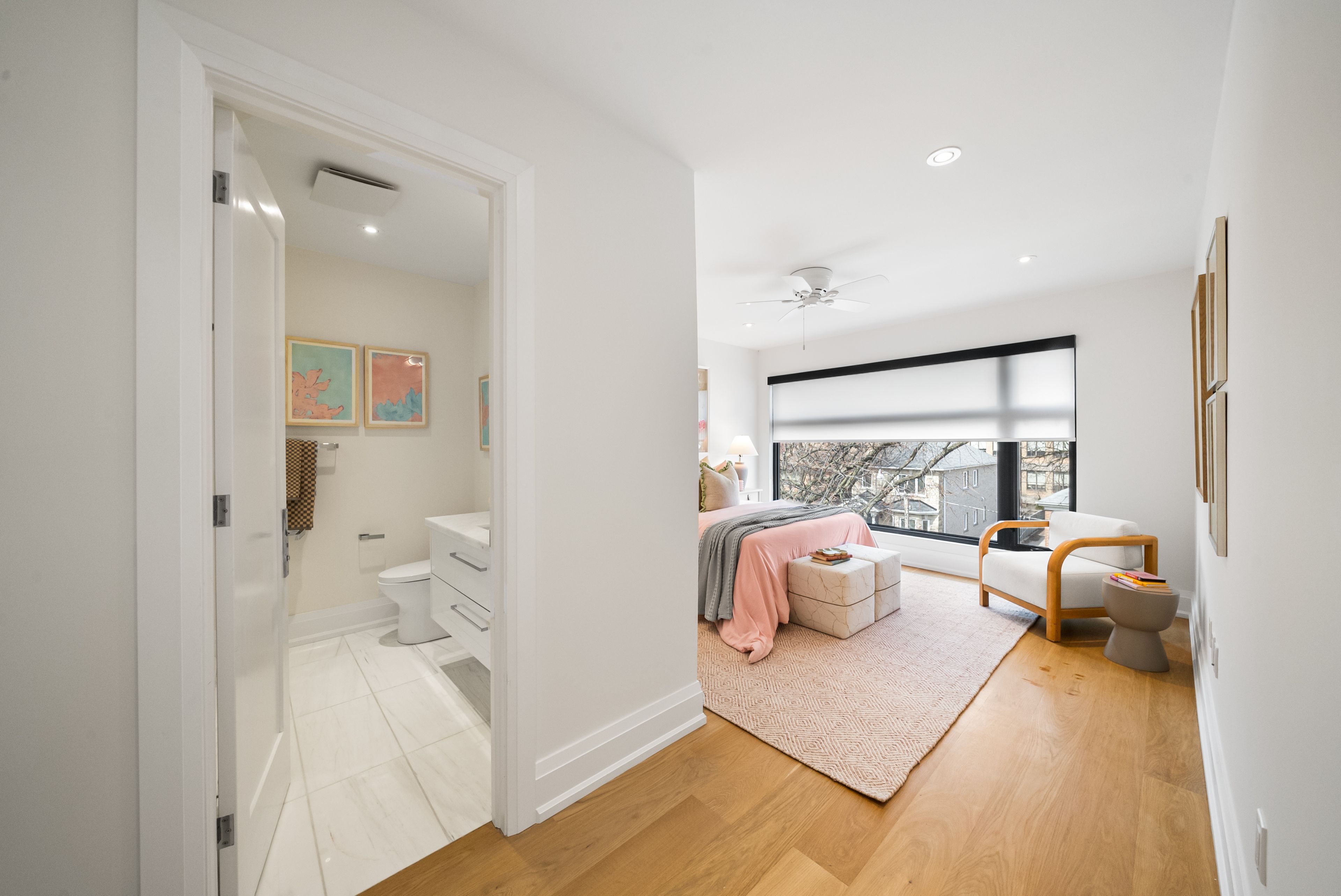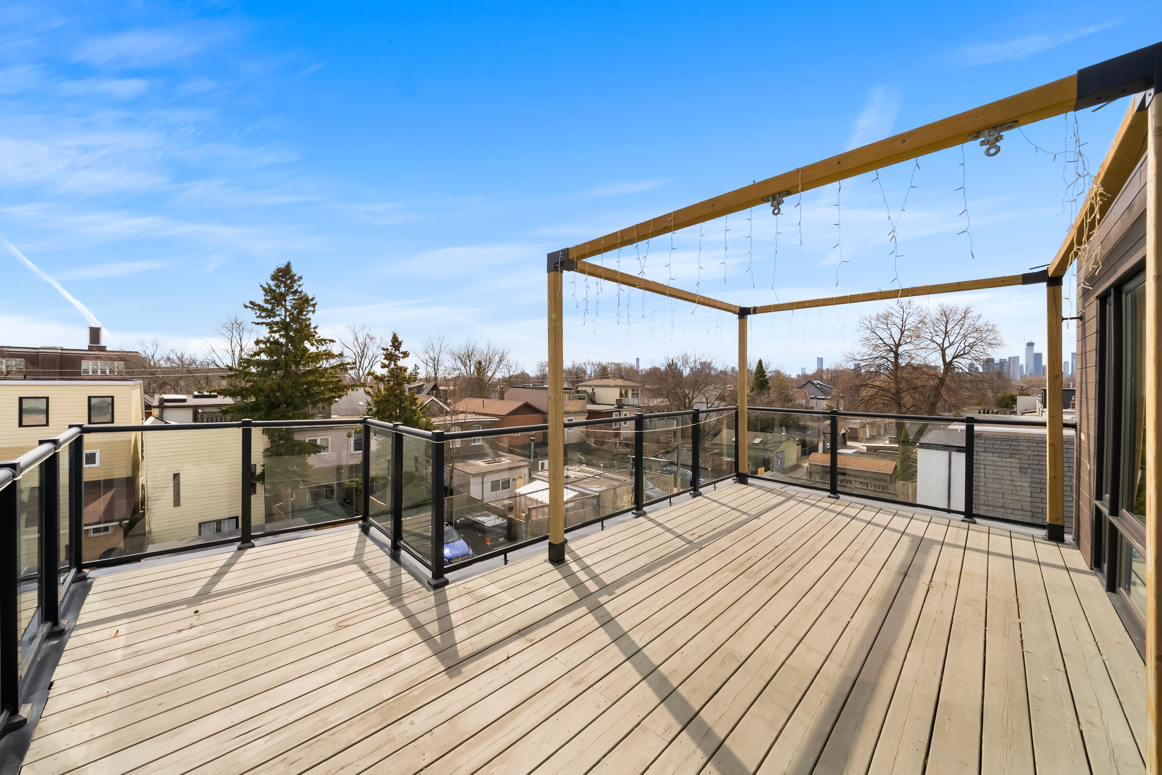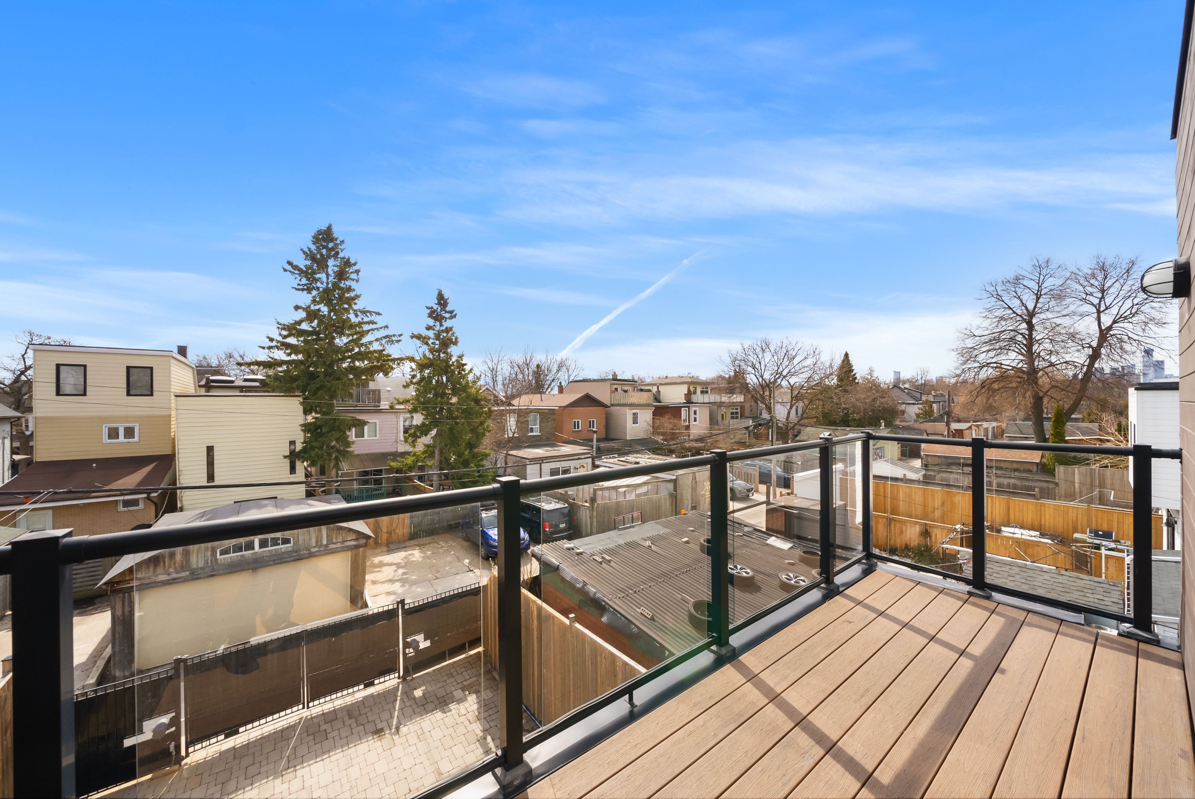 147 Hazelwood Ave sits on a quiet, tree-lined street in the heart of Riverdale, steps from everything that makes this neighbourhood exceptional. Set on a 25 x 103 ft lot with 4,321 sqft of beautifully finished living space, this custom-built 3-storey home offers a rare combination of scale, thoughtful design & an unbeatable location. Hardwood floors & soaring 9-foot ceilings on every level create a sense of openness & grandeur that carries throughout. The main floor flows naturally between well-proportioned living & dining spaces, a dedicated family room & a chef's kitchen designed for both everyday comfort & effortless entertaining. The upper levels deliver four generous bedrooms plus a versatile fifth, complemented by 5 bathrooms, including a convenient main floor powder room, each featuring the quiet luxury of heated floors. The primary suite is a true retreat, with two walk-in closets & a 5-piece ensuite complete with a soaker tub, heated floors & body jets. Two private balconies offer coveted outdoor moments, including a breathtaking upper-level terrace with sweeping views of the city skyline. A rear deck extends the living space further, connecting seamlessly to the outdoors. A rare 3-car parking arrangement eliminates one of the city's most common frustrations. Withrow Park, one of Riverdale's finest green spaces, is a 5-minute walk from your front door. The Danforth, with its celebrated restaurants, cafés & shops, is equally close, as is TTC access that puts the rest of the city within easy reach. The home boasts a near-perfect Walk Score & an exceptional Transit Score, making car-free living genuinely effortless. Families will appreciate being situated in the Frankland School District, with Riverdale Collegiate Institute, one of the east end's most respected high schools, serving the area. 147 Hazelwood is a home that genuinely has it all, space, quality, location & the kind of details that reveal themselves over time.