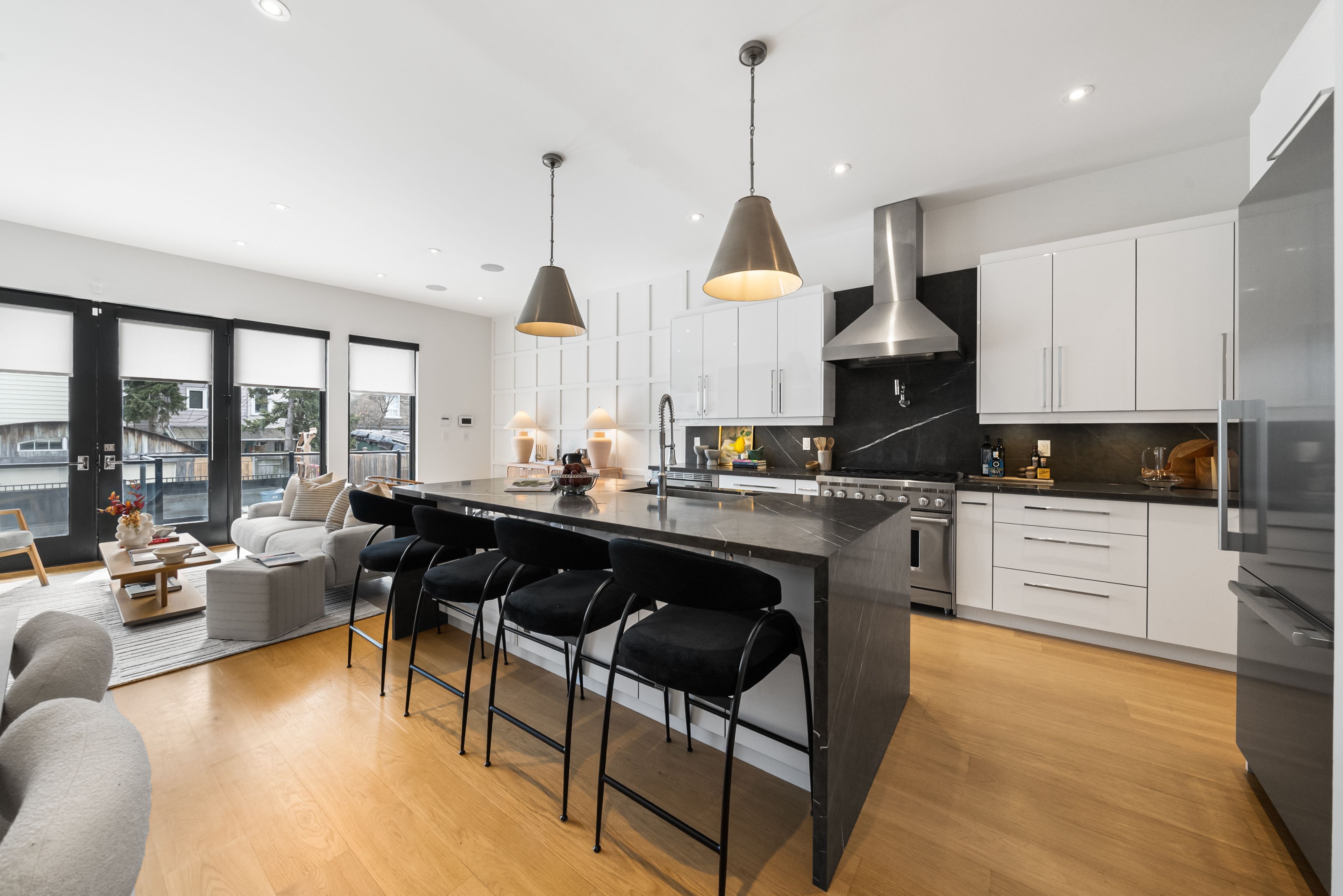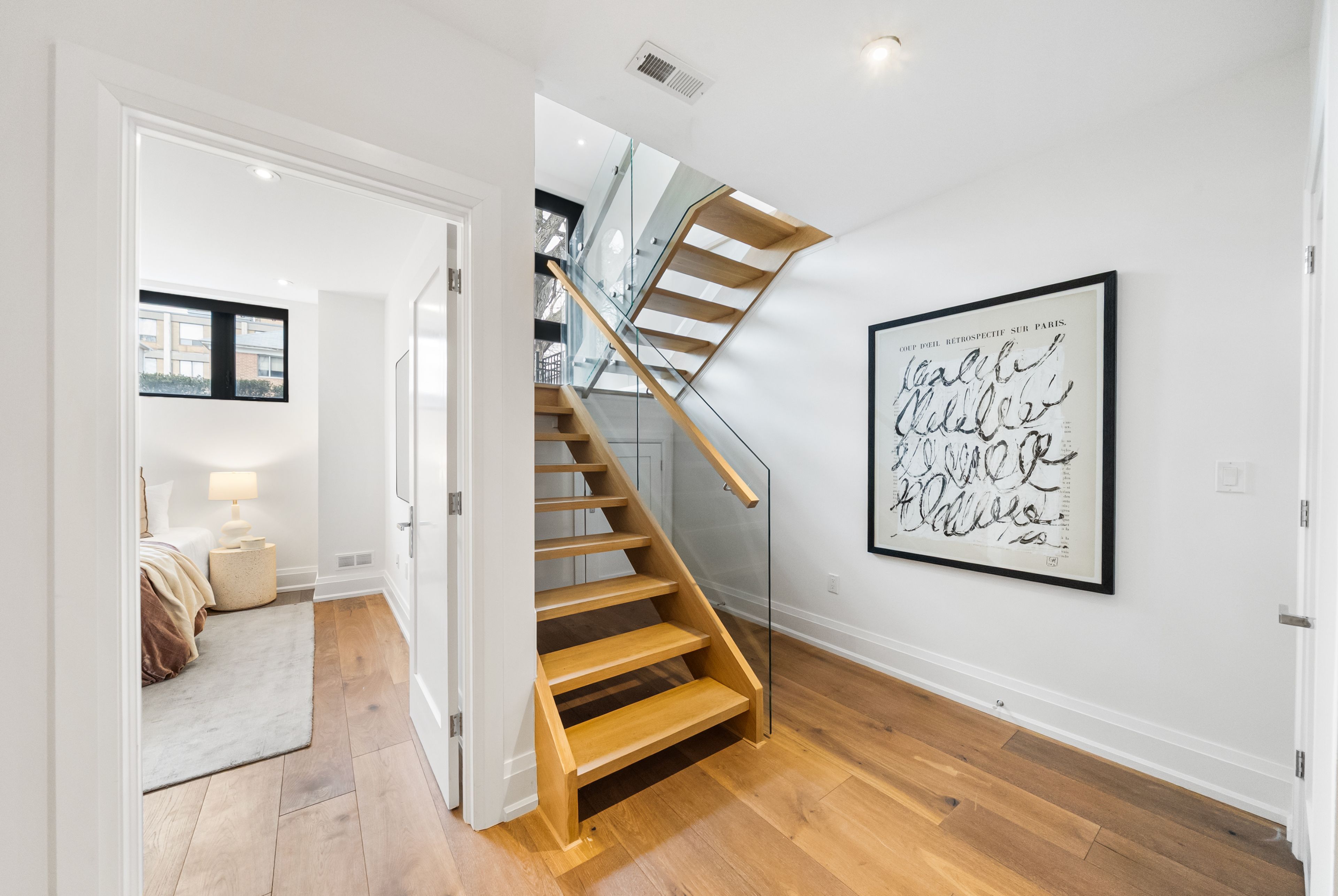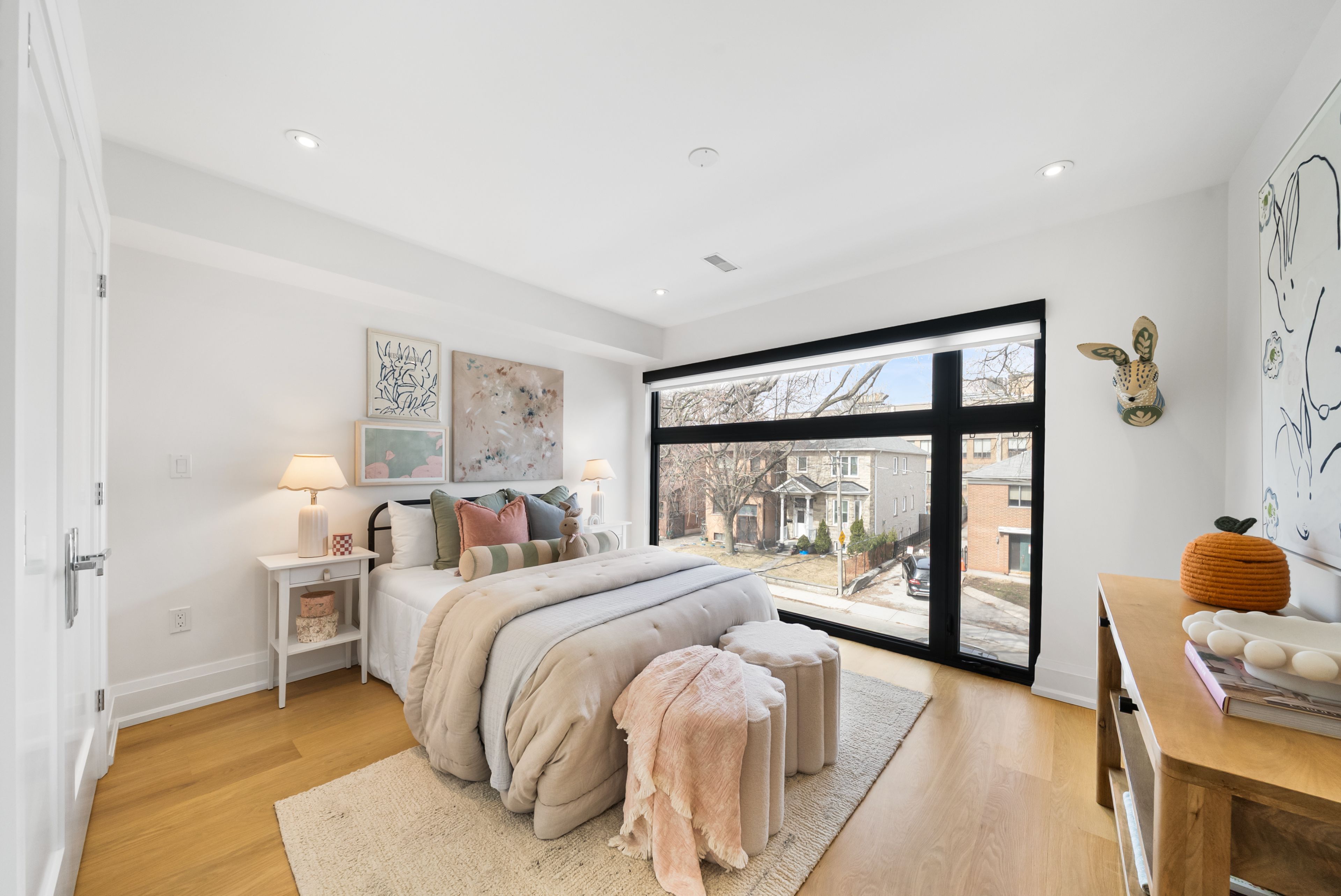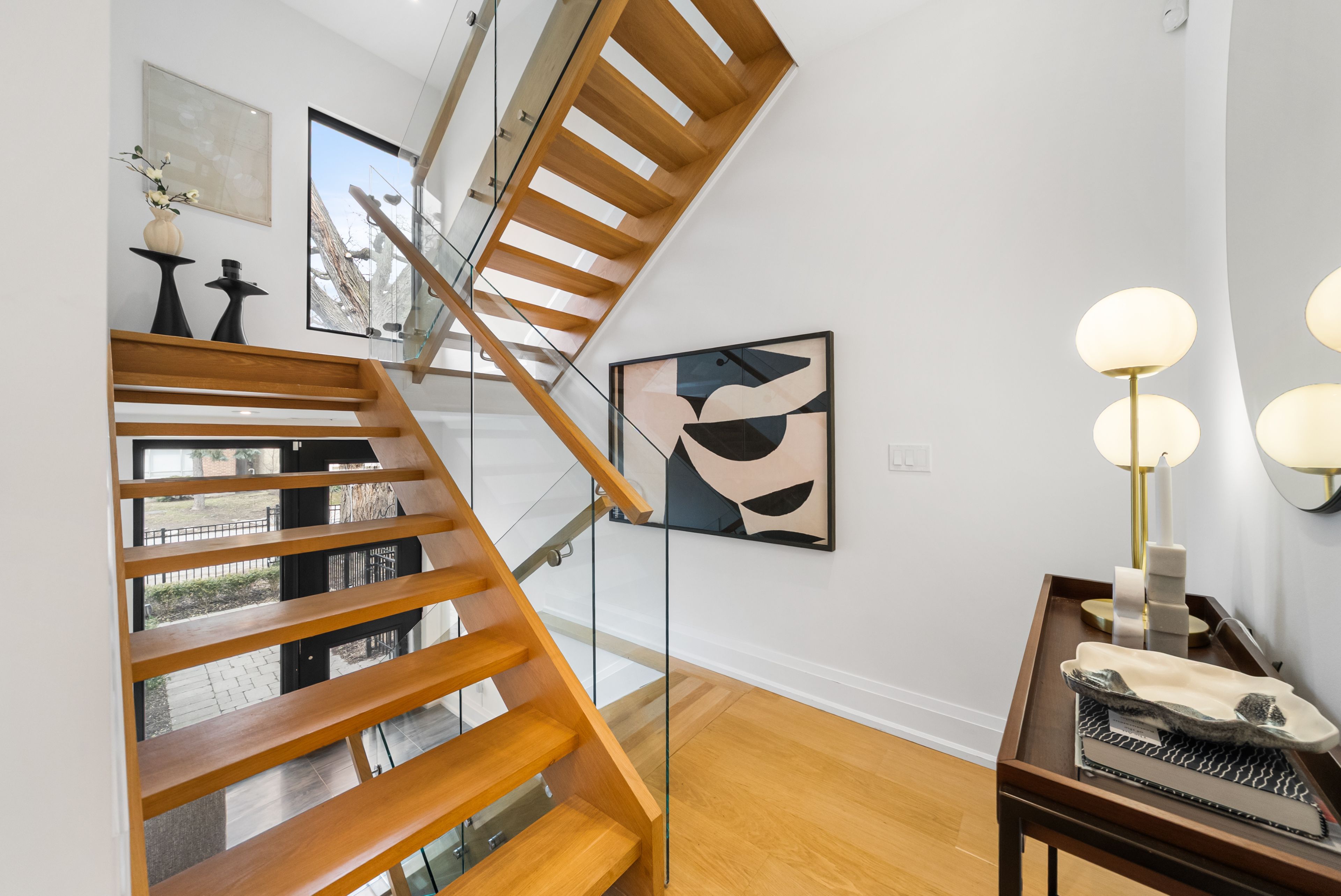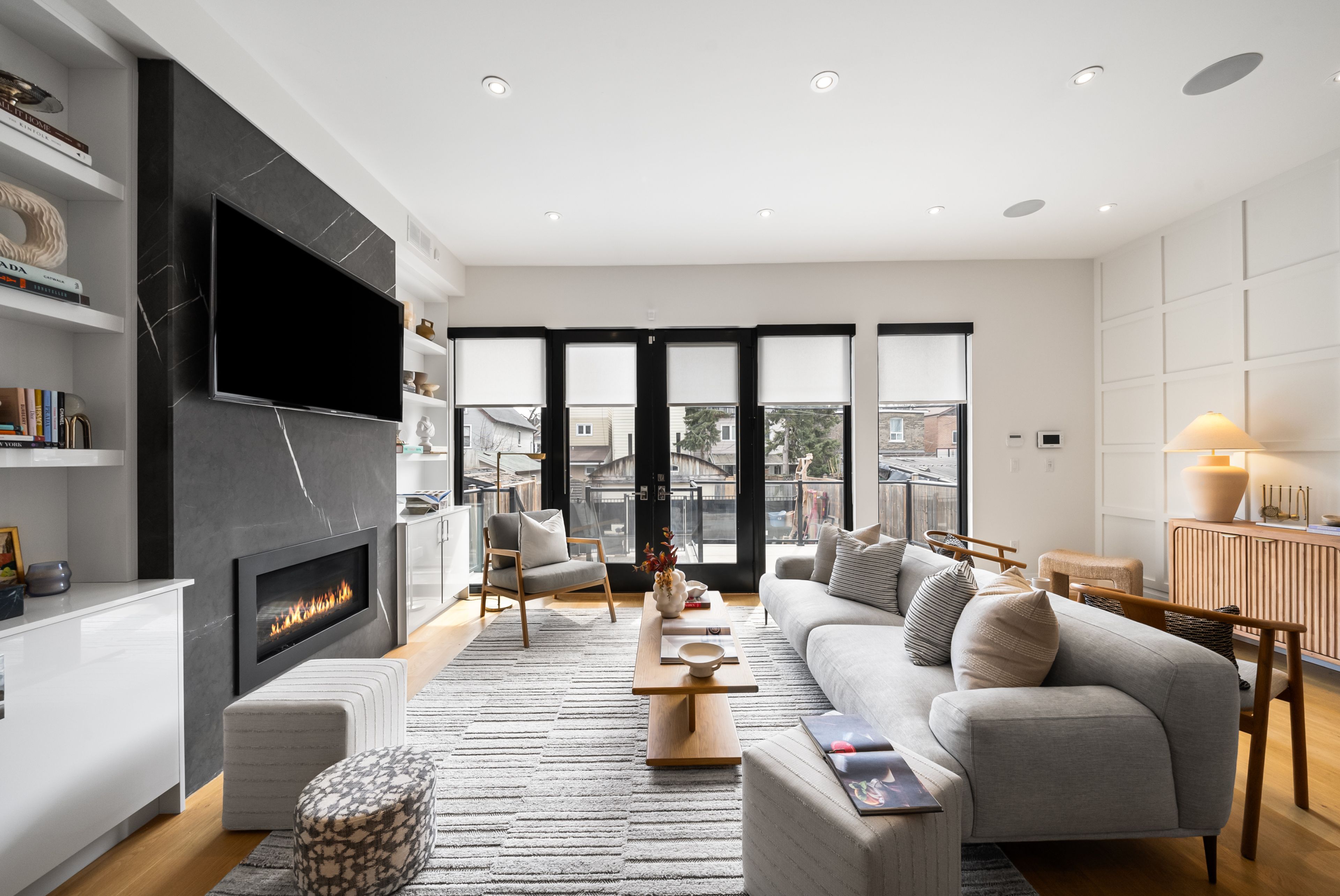 147 Hazelwood Ave sits on a quiet, tree-lined street in the heart of Riverdale, steps from everything that makes this neighbourhood exceptional. Set on a 25 x 103 ft lot with 4,321 sqft of beautifully finished living space, this custom-built 3-storey home offers a rare combination of scale, thoughtful design & an unbeatable location. Hardwood floors & soaring 9-foot ceilings on every level create a sense of openness & grandeur that carries throughout. The main floor flows naturally between well-proportioned living & dining spaces, a dedicated family room & a chef's kitchen designed for both everyday comfort & effortless entertaining. The upper levels deliver four generous bedrooms plus a versatile fifth, complemented by 5 bathrooms, including a convenient main floor powder room, each featuring the quiet luxury of heated floors. The primary suite is a true retreat, with two walk-in closets & a 5-piece ensuite complete with a soaker tub, heated floors & body jets. Two private balconies offer coveted outdoor moments, including a breathtaking upper-level terrace with sweeping views of the city skyline. A rear deck extends the living space further, connecting seamlessly to the outdoors. A rare 3-car parking arrangement eliminates one of the city's most common frustrations. Withrow Park, one of Riverdale's finest green spaces, is a 5-minute walk from your front door. The Danforth, with its celebrated restaurants, cafés & shops, is equally close, as is TTC access that puts the rest of the city within easy reach. The home boasts a near-perfect Walk Score & an exceptional Transit Score, making car-free living genuinely effortless. Families will appreciate being situated in the Frankland School District, with Riverdale Collegiate Institute, one of the east end's most respected high schools, serving the area. 147 Hazelwood is a home that genuinely has it all, space, quality, location & the kind of details that reveal themselves over time.
