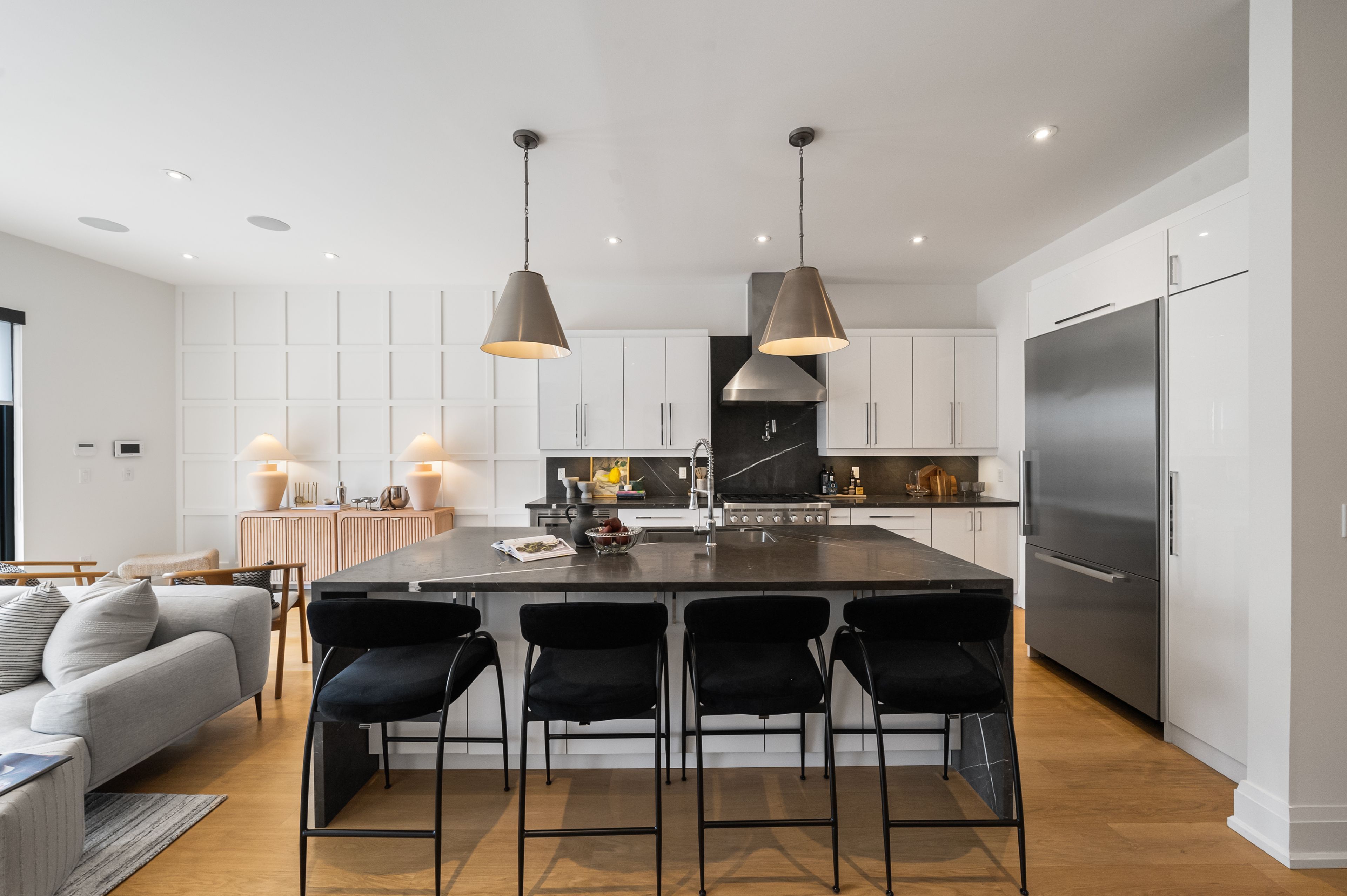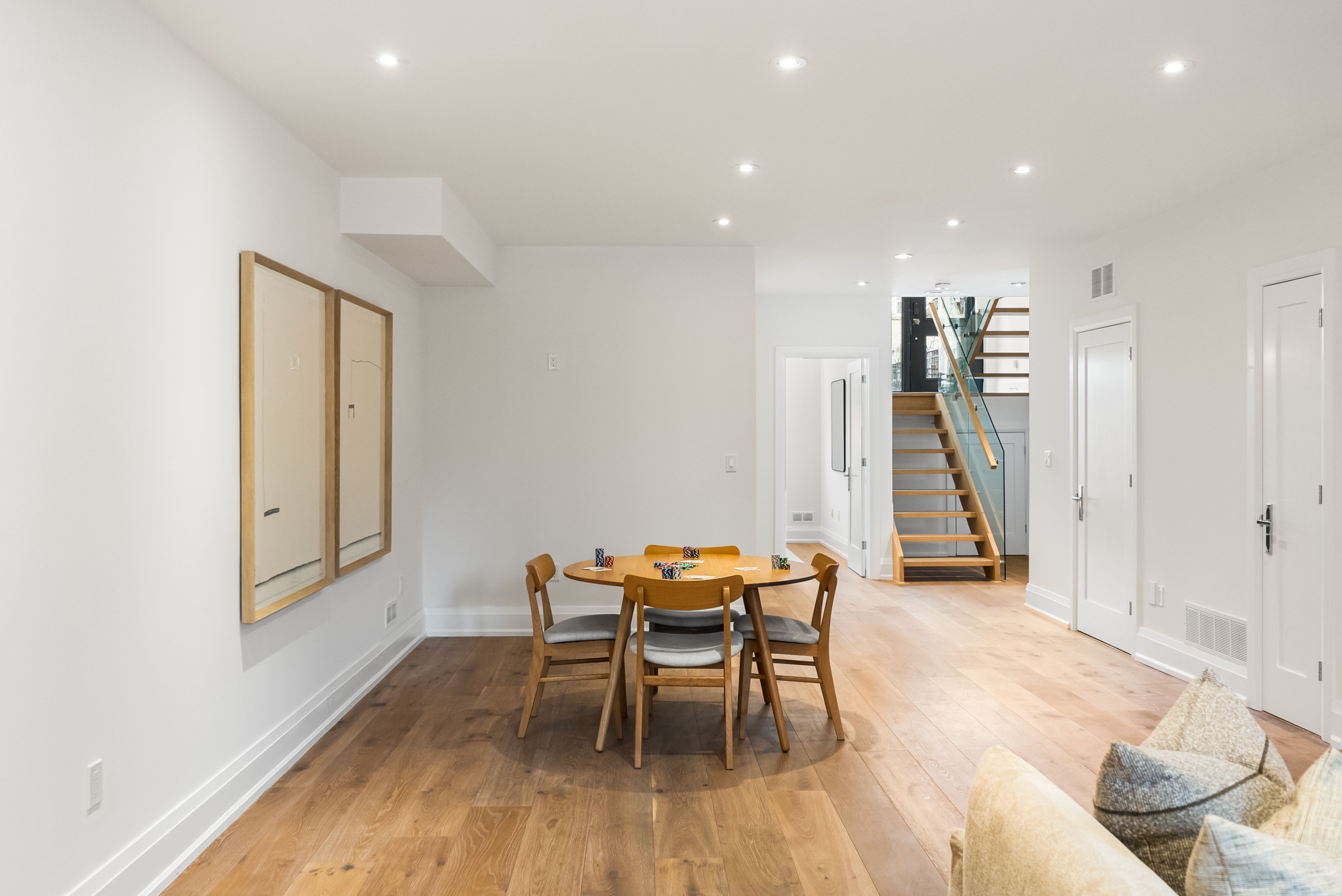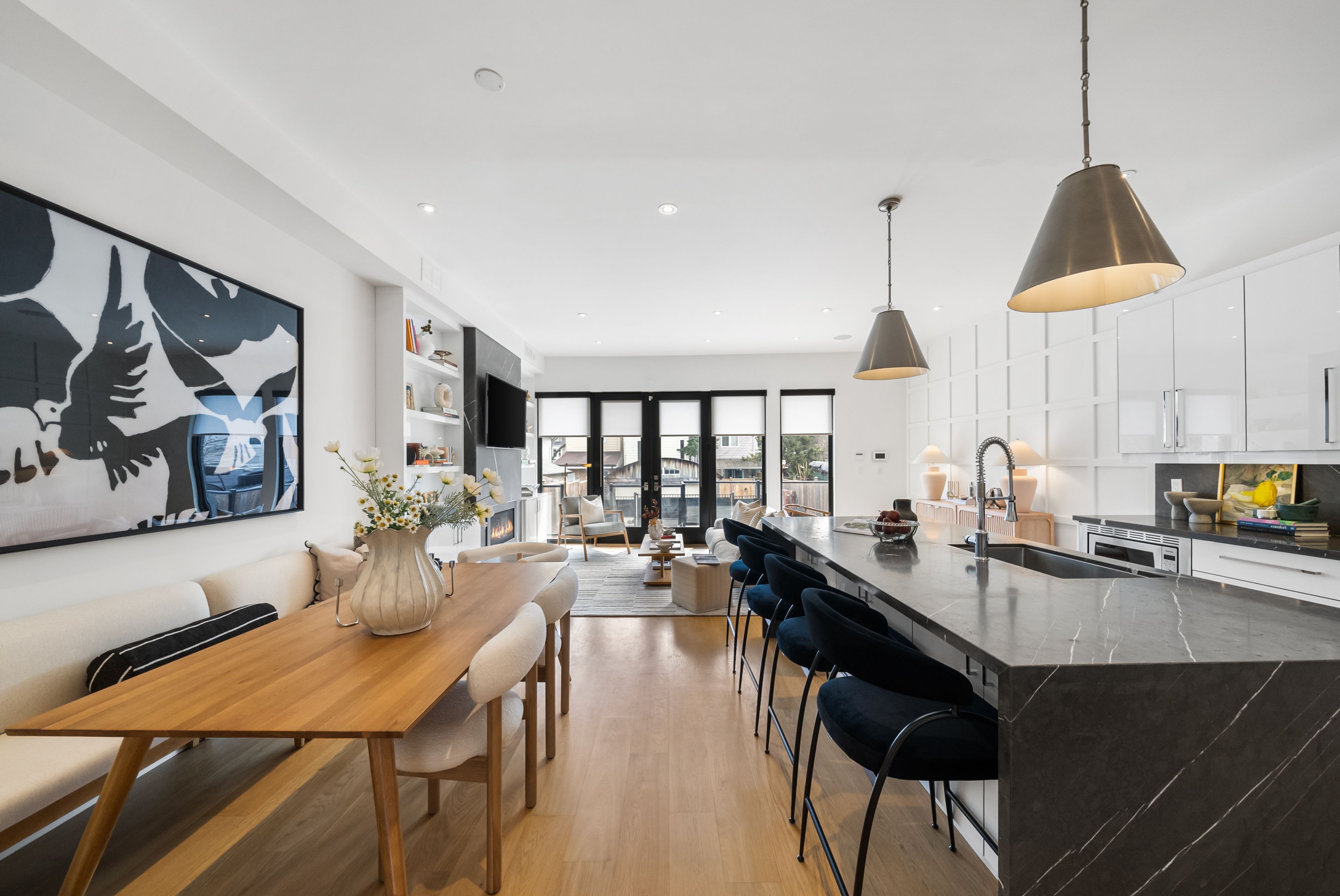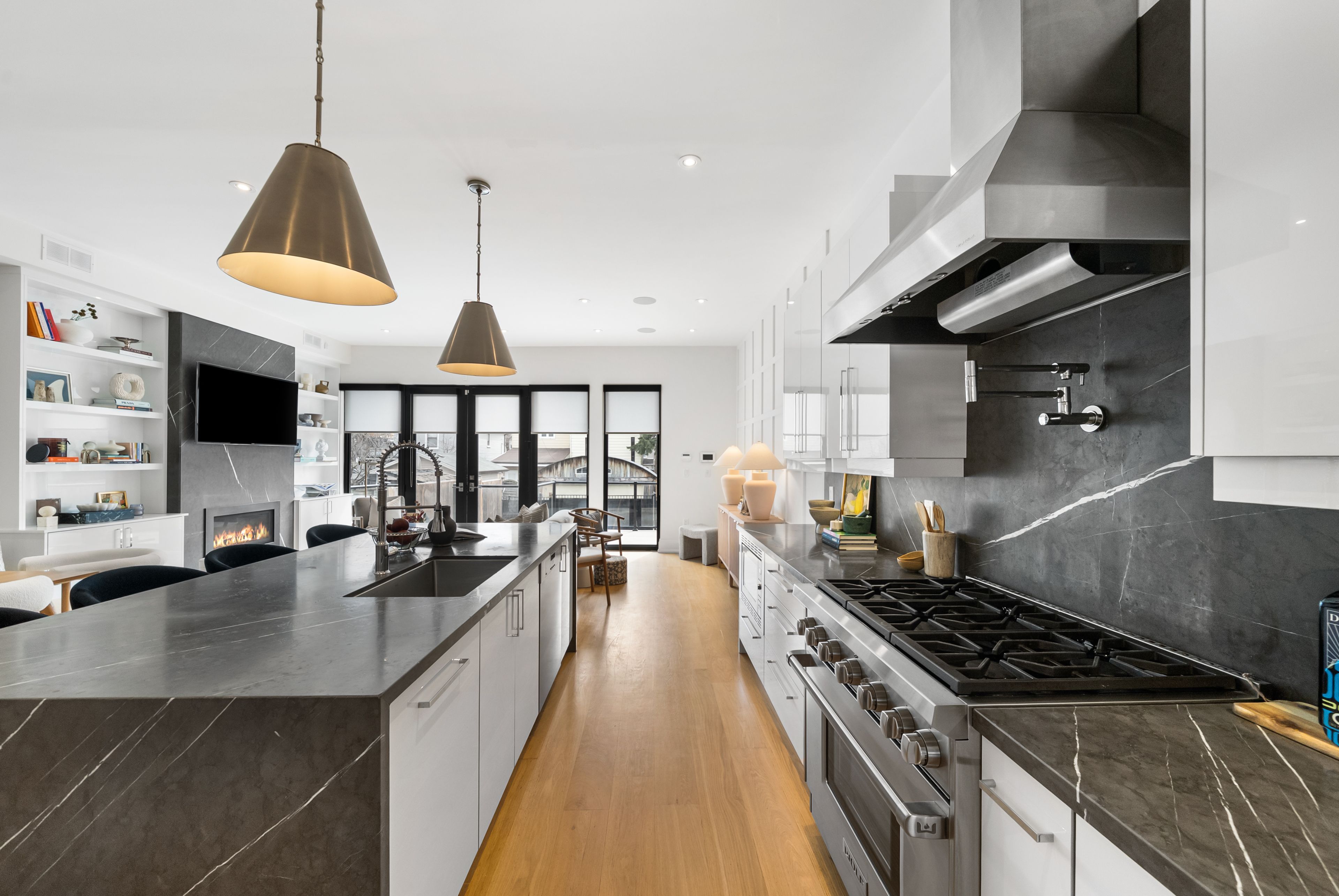 147 Hazelwood Ave sits on a quiet, tree-lined street in the heart of Riverdale, steps from everything that makes this neighbourhood exceptional. Set on a 25 x 103 ft lot with 4,321 sqft of beautifully finished living space, this custom-built 3-storey home offers a rare combination of scale, thoughtful design & an unbeatable location. Hardwood floors & soaring 9-foot ceilings on every level create a sense of openness & grandeur that carries throughout. The main floor flows naturally between well-proportioned living & dining spaces, a dedicated family room & a chef's kitchen designed for both everyday comfort & effortless entertaining. The upper levels deliver four generous bedrooms plus a versatile fifth, complemented by 5 bathrooms, including a convenient main floor powder room, each featuring the quiet luxury of heated floors. The primary suite is a true retreat, with two walk-in closets & a 5-piece ensuite complete with a soaker tub, heated floors & body jets. Two private balconies offer coveted outdoor moments, including a breathtaking upper-level terrace with sweeping views of the city skyline. A rear deck extends the living space further, connecting seamlessly to the outdoors. A rare 3-car parking arrangement eliminates one of the city's most common frustrations. Withrow Park, one of Riverdale's finest green spaces, is a 5-minute walk from your front door. The Danforth, with its celebrated restaurants, cafés & shops, is equally close, as is TTC access that puts the rest of the city within easy reach. The home boasts a near-perfect Walk Score & an exceptional Transit Score, making car-free living genuinely effortless. Families will appreciate being situated in the Frankland School District, with Riverdale Collegiate Institute, one of the east end's most respected high schools, serving the area. 147 Hazelwood is a home that genuinely has it all, space, quality, location & the kind of details that reveal themselves over time.