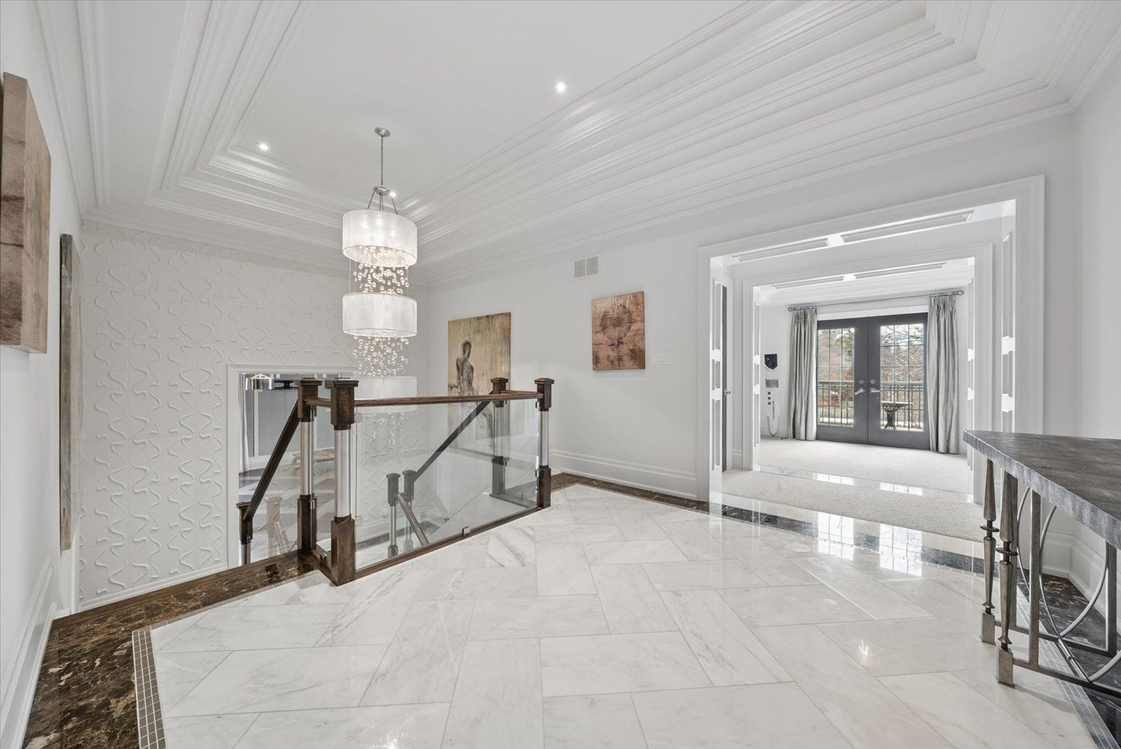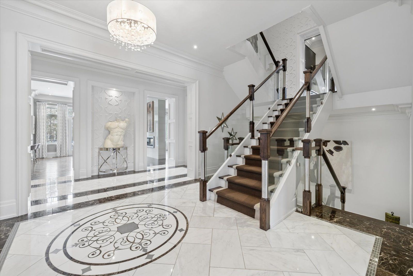 **POWER OF SALE** Welcome to this exceptional Greenpark built, Princess Margaret Home in the prestigious Uplands community, just minutes from Thornhill Golf Club. Situated on a premium 100 x 165 ft fully treed lot, this executive residence offers 6,044 sq. ft. above grade plus 2,981 sq. ft. of professionally finished basement space. Boasting 4+1 bedrooms and 6 bathrooms, this home is designed for refined family living and elegant entertaining. The main level features formal living and dining rooms, a spacious eat-in gourmet kitchen, and family room. Step Up to the Mid-Level which offers an Entertainers dream with a second family room complete with a wet bar and two-way fireplace.The expansive primary retreat offers a luxurious 6-piece ensuite, large walk-in closet, and the convenience of a secondary washer and dryer. Additional bedrooms include a private ensuite and a shared Jack & Jill bath configuration.The finished lower level is ideal for entertaining and recreation, featuring a wet bar, gym area, guest bedroom, and generous open space. Step outside to your private backyard oasis with a world-class deck and pool-perfect for summer enjoyment. Conveniently located near top-rated schools, parks, and Highways 407, 400, and 404. A rare offering combining luxury, scale, and exceptional lifestyle appeal.