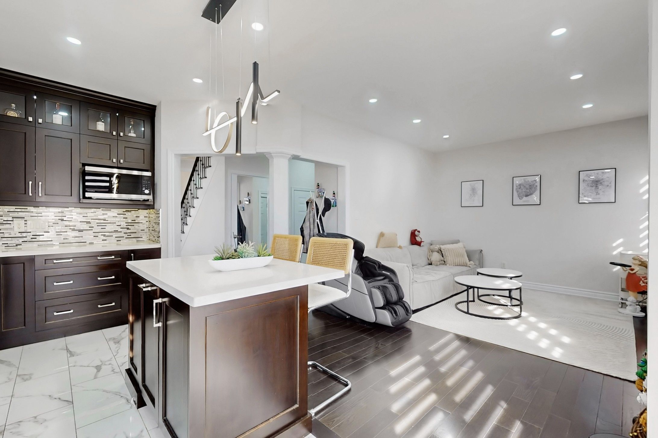 Rarely Offered Premium Corner-Lot Two-Storey Semi-Detached Home In The Highly Sought-After Cachet Community Of Markham. This Premium Corner Property Features A Wide Driveway With No Sidewalk, Allowing Parking For Up To 3 Cars - A Rare And Highly Practical Feature In The Area. This Beautifully Maintained Home Offers A Bright And Functional Layout With Abundant Windows On Multiple Sides, Filling The Home With Natural Sunlight Throughout The Day. The Stunning Living Room Boasts A Rare 18-Foot Soaring Ceiling, Creating A Grand And Elegant Space Perfect For Both Family Living And Entertaining. The Main Floor Features 9-Foot Ceilings With Pot Lights Throughout, Enhancing The Modern And Open Feel Of The Home.The Upgraded Kitchen Showcases Floor-To-Ceiling Cabinetry, Quartz Countertops, A Centre Island, Stainless Steel Appliances, And Walk-Out Access To The Private Backyard. The Fully Self-Contained Basement With Separate Entrance Includes 2 Bedrooms, A Living Area, Kitchen, And Bathroom, Seperated Dryer And Washer.Offering Excellent Potential For Rental Income Or Extended Family Living. Ideally Located With Easy Access To Highway 404, Shopping Plazas, Restaurants, Banks, Parks, And Public Transit. Situated Within The Boundaries Of Top-Ranking Richmond Green Secondary School And Top-Ranked St. Augustine Catholic High School. A Rare Opportunity To Own A Bright Corner Home With Grand Space, Functional Layout, And Exceptional Income Potential In One Of Markham's Most Established And Desirable Communities.