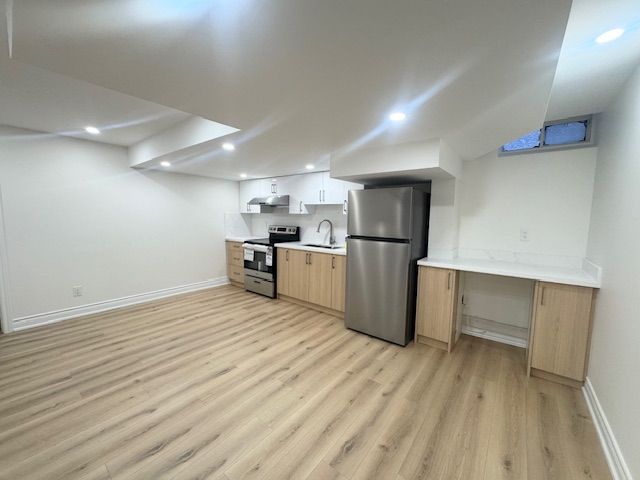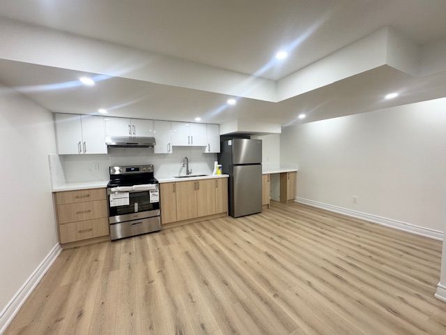 Brand New Renovated Basement Apartment, 2 Spacious Bedrooms, 2 Bathrooms, Separate Private Entrance. Bright And Modern With High-Quality Finishes, Brand New Kitchen, Appliances and new bathroom. Excellent Natural Light Creating A Warm And Comfortable Living Space. Private In-Suite Laundry. Quiet And Private Setting, Ideal For Small Families Seeking Comfort And Functionality. One Driveway Parking, All Utilities including.
