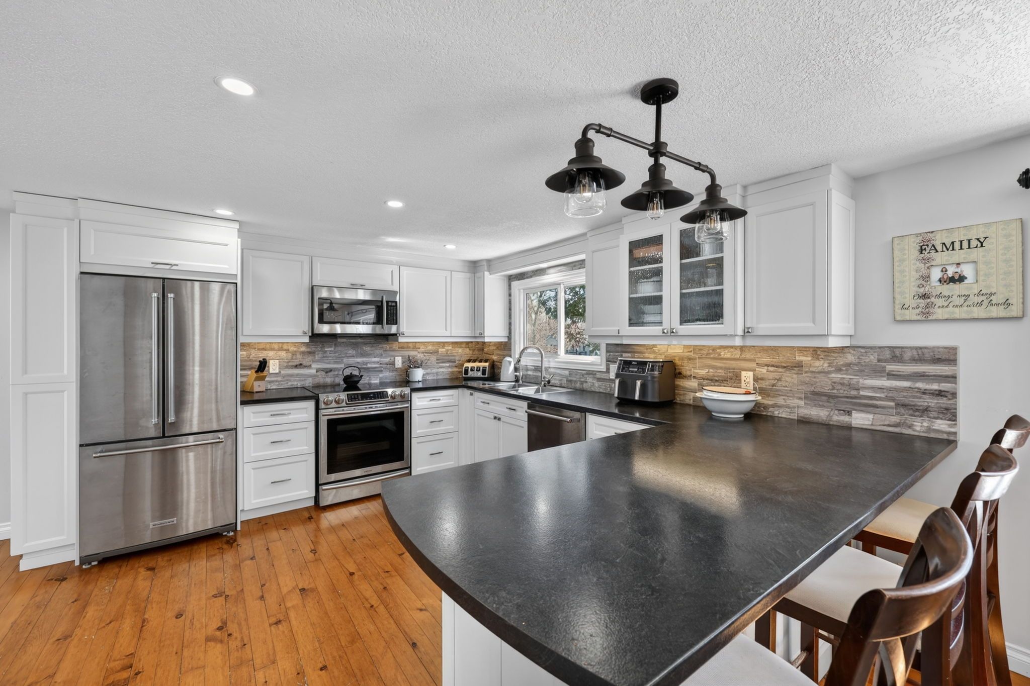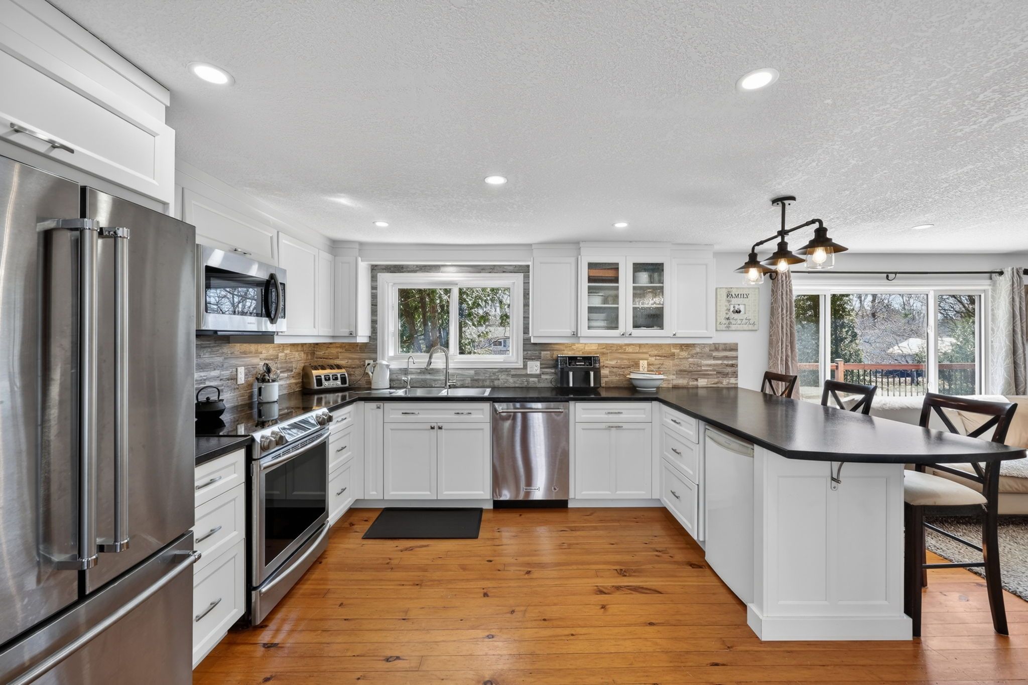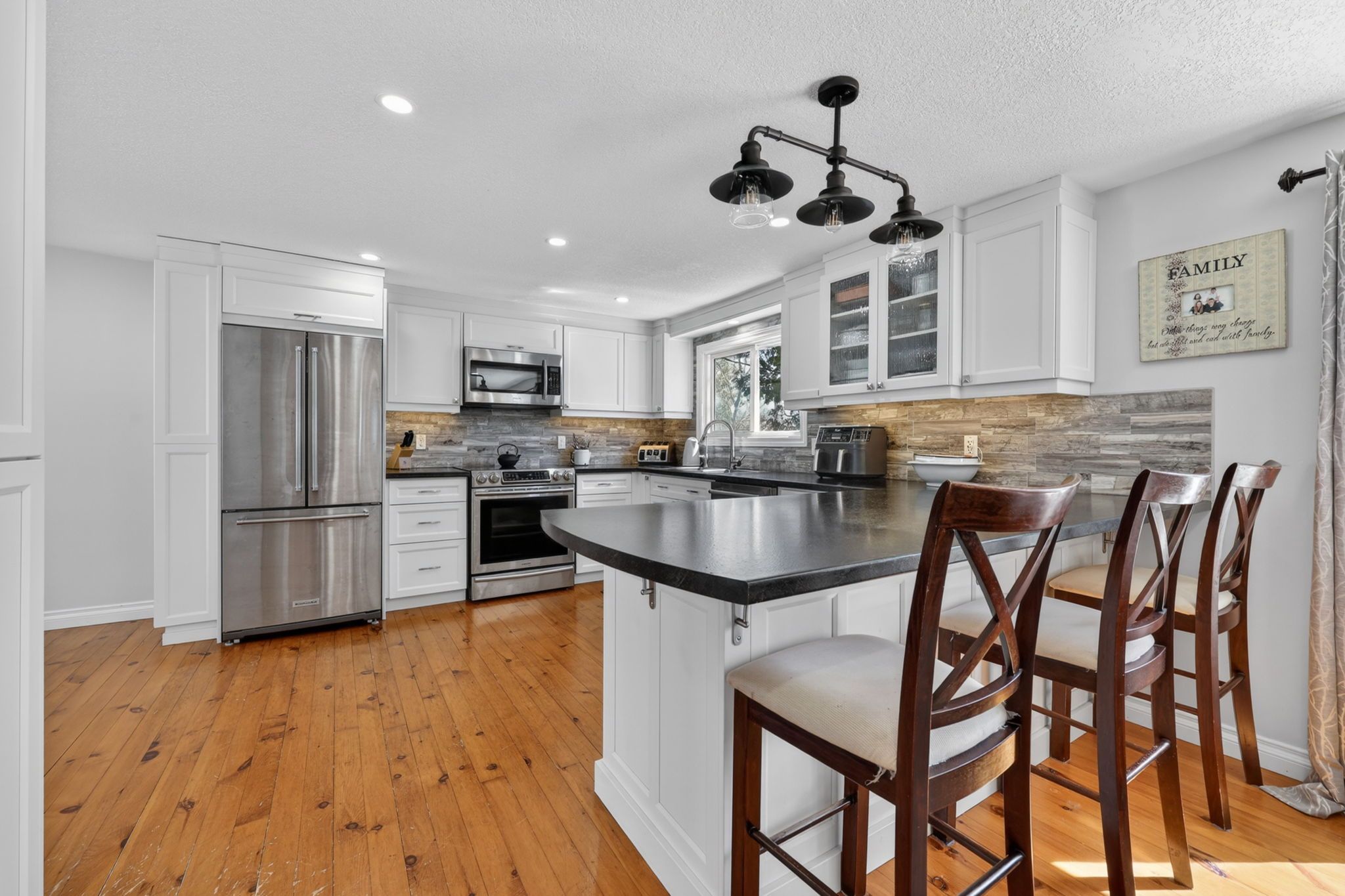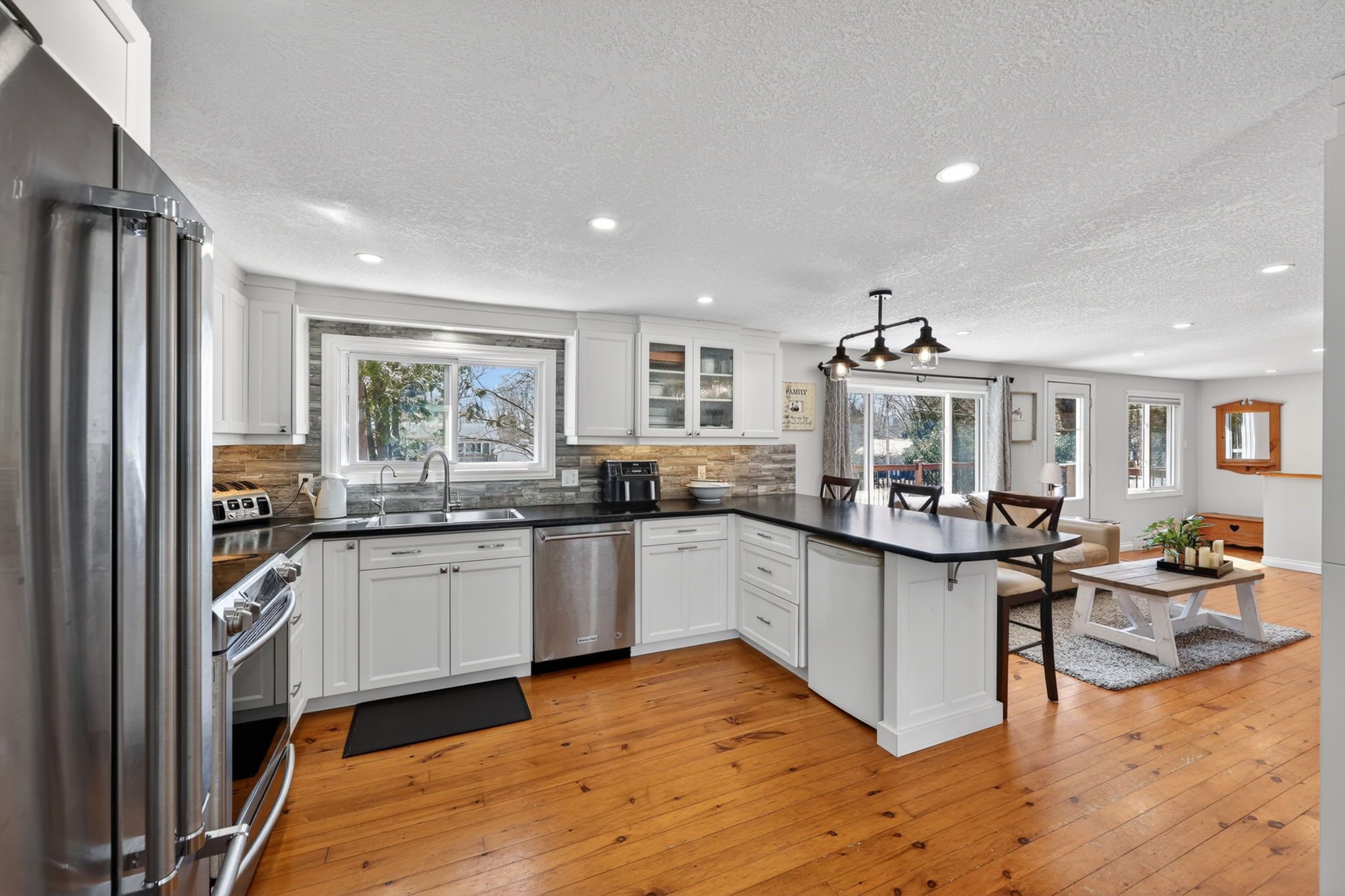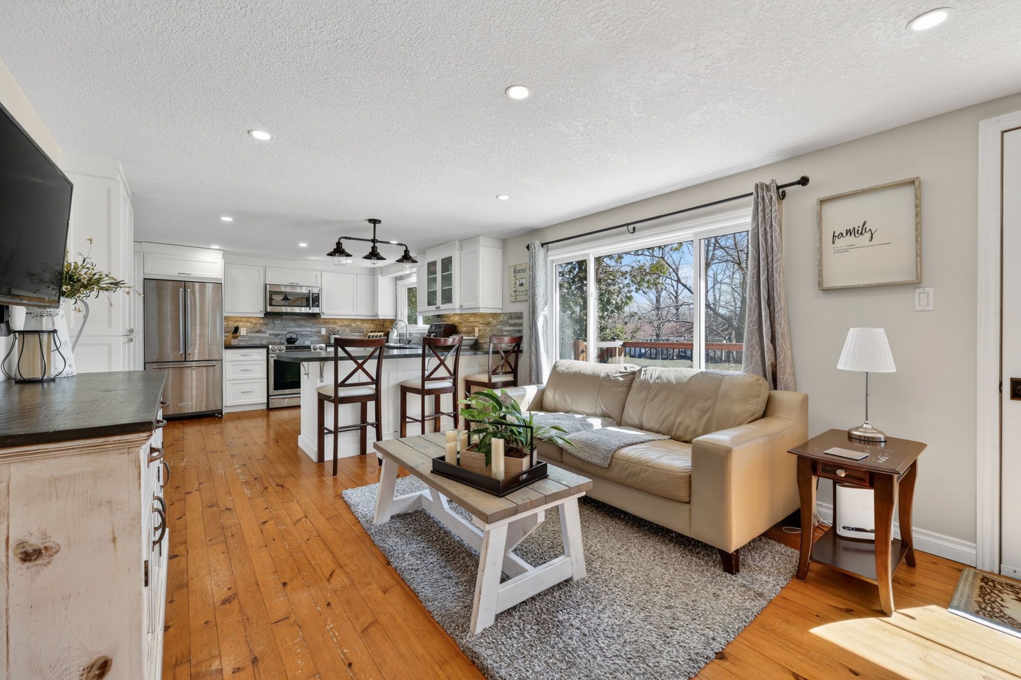 DETACHED SHOP... This charming updated home and immaculate 28' X 30' detached shop is located in desirable family friendly waterfront community. The main floor of the home boasts 2 bedrooms, newly updated 4 piece bath with in floor heating (Keith Lortie Kitchens), updated kitchen (Keith Lortie Kitchens) featuring island peninsula, pot lighting, all newer stainless steel appliances, an abundance of natural light and walk out to private deck, hot tub and partially fenced yard. In addition, is a cozy living room with walk out to front deck with new railing and stairs. The lower level is ground level walk out and features a 3rd bedroom, 2nd bath, spacious family room with wood burning fireplace and mud room/laundry entrance all allowing for in law potential. The amazing bonus is the immaculate detached shop with concrete flooring, radiant heat, water, A/C, independent electrical panel, and 10' wide X 9.8 ft high garage door. Extra features include: kinetico water system, new privacy wood fencing, up to 10 car parking, and all within minutes walk to private waterfront parkette. ++++