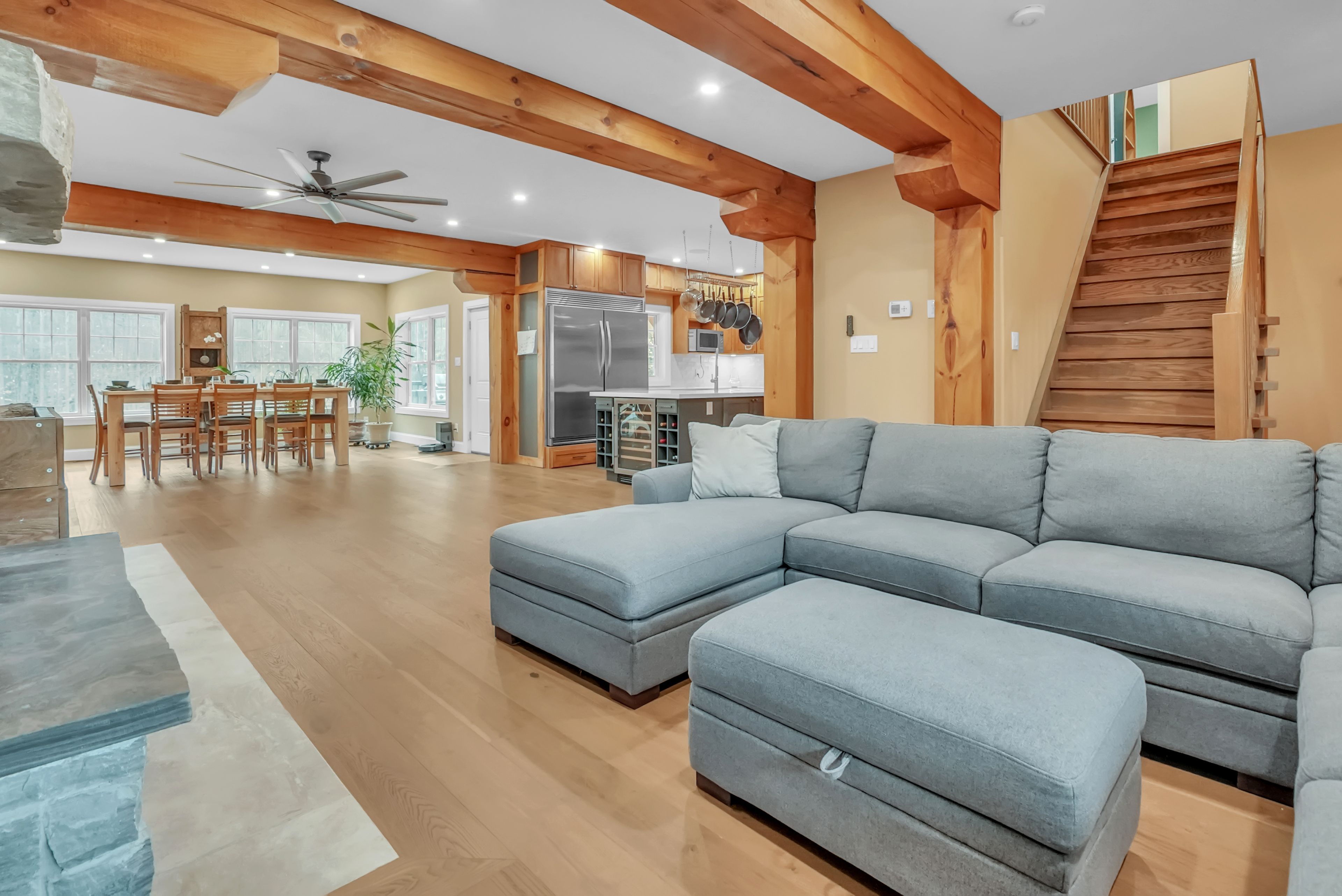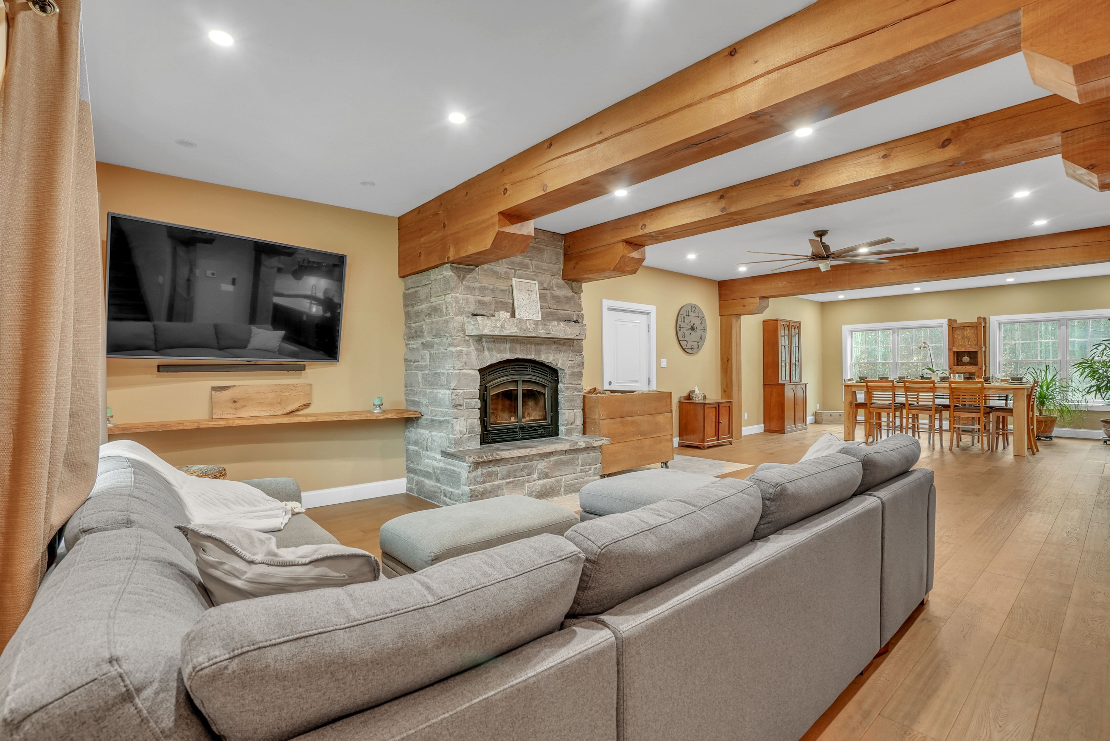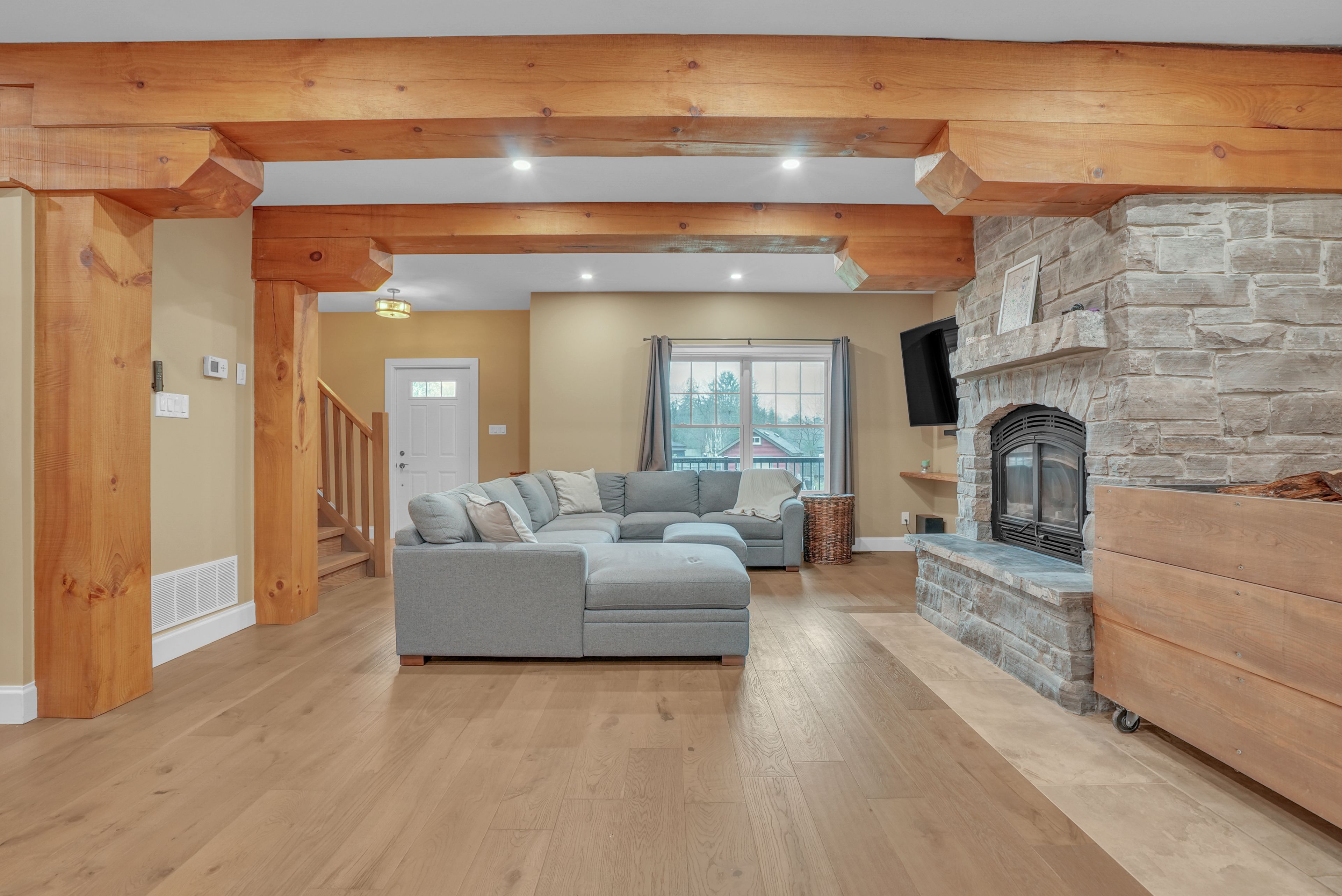 Looking to make a move in the market with a footprint that promotes versatile living without being a cookie cutter option? Look no further! Situated on approximately 4.2 acres, with a 3000+ square foot executive home, attached oversized 2 car garage, and a separate 20'x34' heated workshop with hydro, this property more than delivers! It is a total package for optimal balance. The custom built 4 bedroom home exudes comfort and luxury throughout with its high end thoughtful finishes and attributes: majestic stone fireplace, hardwood flooring, stunning substantial wood beams (harvested from the land), eco-friendly geothermal, expansive window views, warm tones, and unbelievable storage. Positioned well on the property, the house enjoys a park-like setting in front and hardwood bush out back. The added bonus of the workshop provides phenomenal value in its range because, all considered, whether you are a cook, entertainer, hobbyist, car enthusiast, home business/entrepreneur, game player, watcher of wild life, or relaxer, this is a place to call home and more. Better yet, the acreage's location is within minutes of Barrie's best amenities: restaurants, waterfront, hospitals, schools, trails, shops, and festivals. By car, it is located roughly 9 minutes from hwy 400, roughly 12 minutes from Barrie's primary (Allandale) GO Station. Barrie offers a wonderful community in commuting distance to the GTA. This package is an incredible offering of possibility and opportunity in one where you can live, enjoy, work, and play; a true lifestyle property!