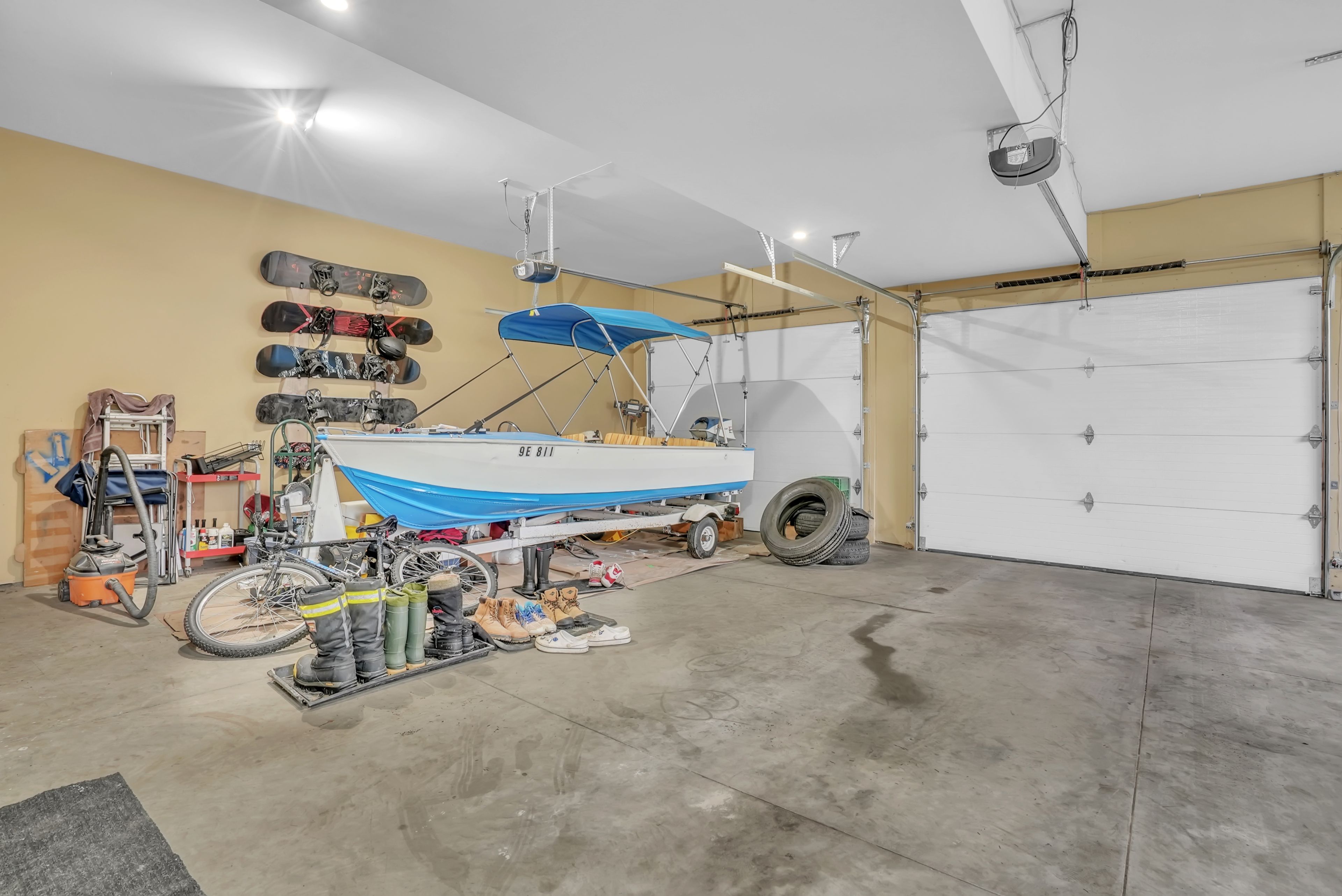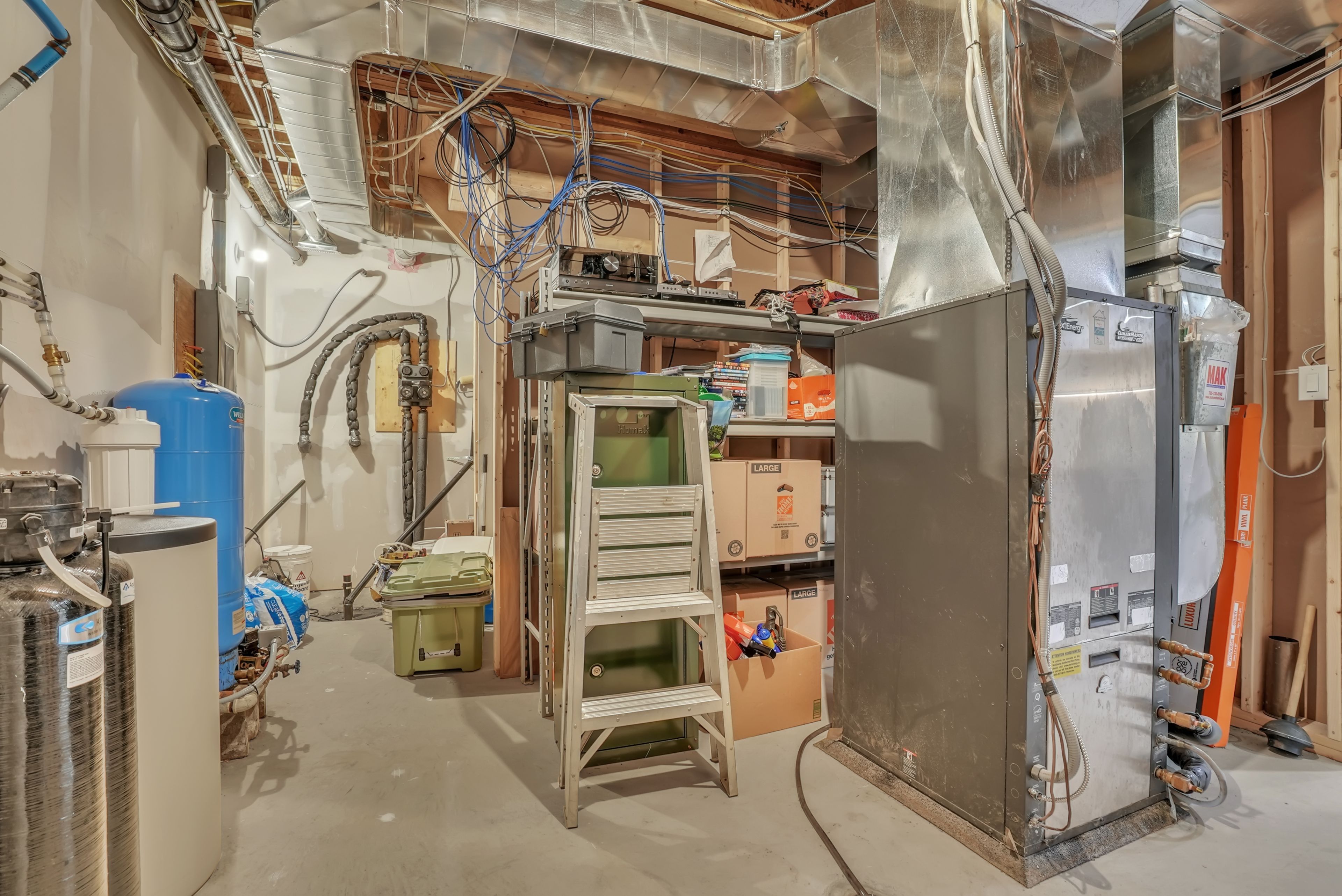 - Interior Features: Air Exchanger, Auto Garage Door Remote, Bar Fridge, Sump Pump, Water Heater Owned, Water Softener