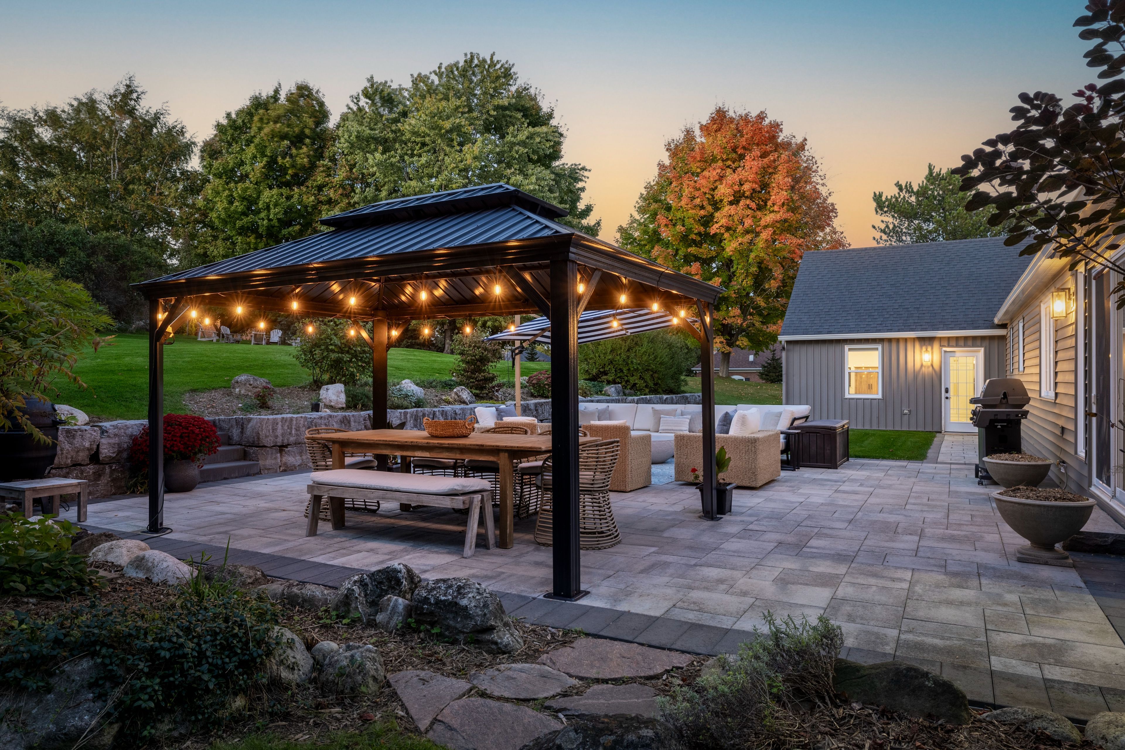 Welcome to 331 Wheelihan Way, set in an exclusive enclave of estate homes in the highly desired Hamlet of Campbellville in Milton. This Cap Cod style home with lovely front courtyard has been recently renovated and features an incredible designer kitchen, white oak hardwood flooring, separate family room with fireplace, formal living room with fireplace and custom built-in shelving, and lovely sun filled great room with walk-out to the backyard. Straight out of a magazine, the gorgeous chef's kitchen features massive island, Quartz Countertops, built-in stainless steel appliances, custom window coverings, and inviting Bench Overlooking the Courtyard. Open concept to the large dining space making it the perfect layout for entertaining. Main floor office/den along with a large guest bedroom, separate mudroom and main floor laundry with powder room, complete the main level. The upper level features 3 more large bedrooms with high-end broadloom. The primary has a newer 3 piece bath and walk in closet with custom built-in shelving. The additional bedrooms share another beautiful 4 piece bath. The gorgeous tree-lined backyard has tons of lush perennial gardens, incredible front curb appeal with golf course green grass maintained with the irrigation system, lovely front courtyard with seating area, outdoor cedar sauna, and an incredible interlocked patio with gazebo for those warm summer evenings. Set in a quiet, family friendly estate subdivision in the charming community of Campbellville with quaint shops, restaurants, parks, and incredible schools. Minutes to the 401 for the commuters.