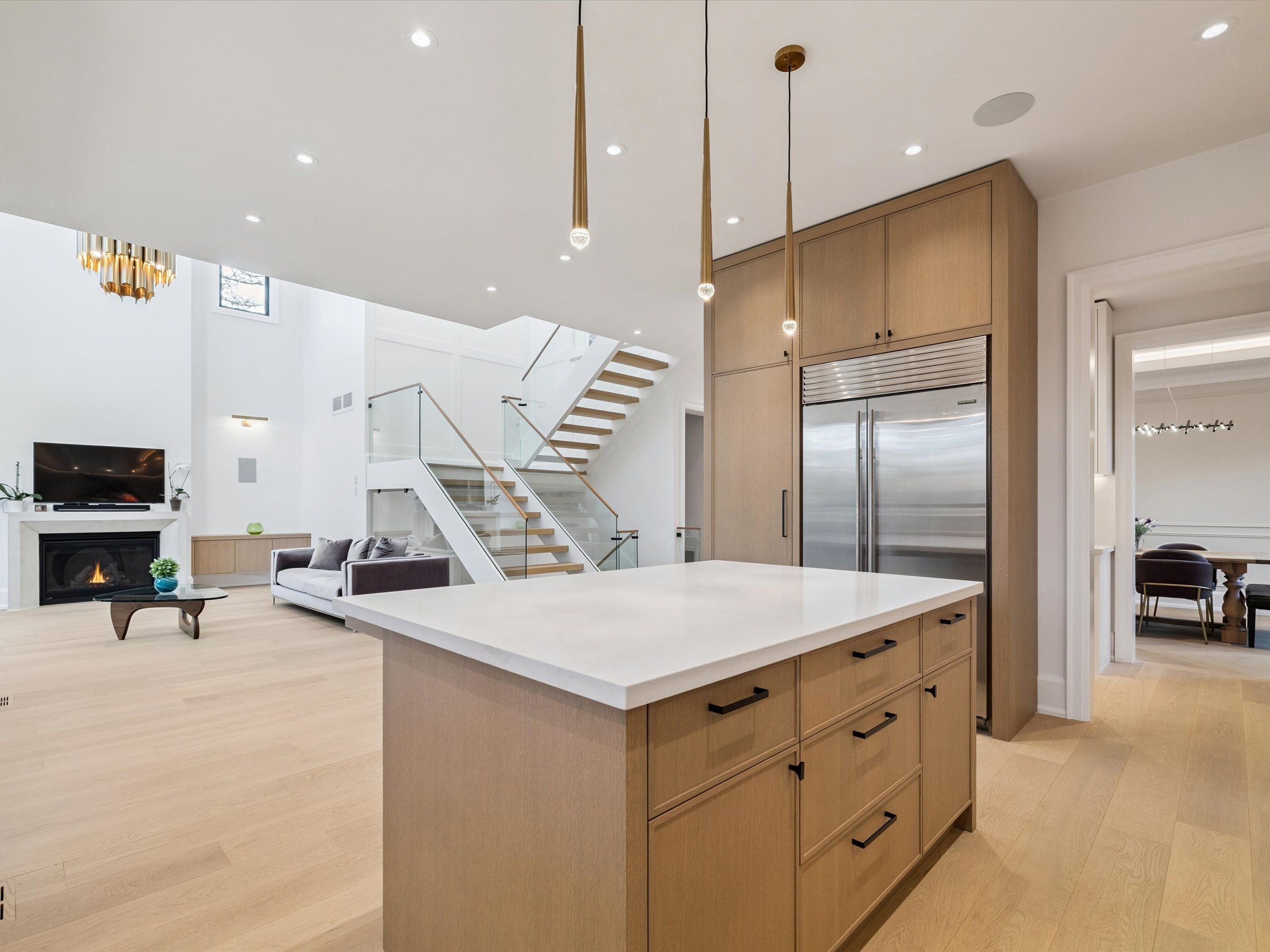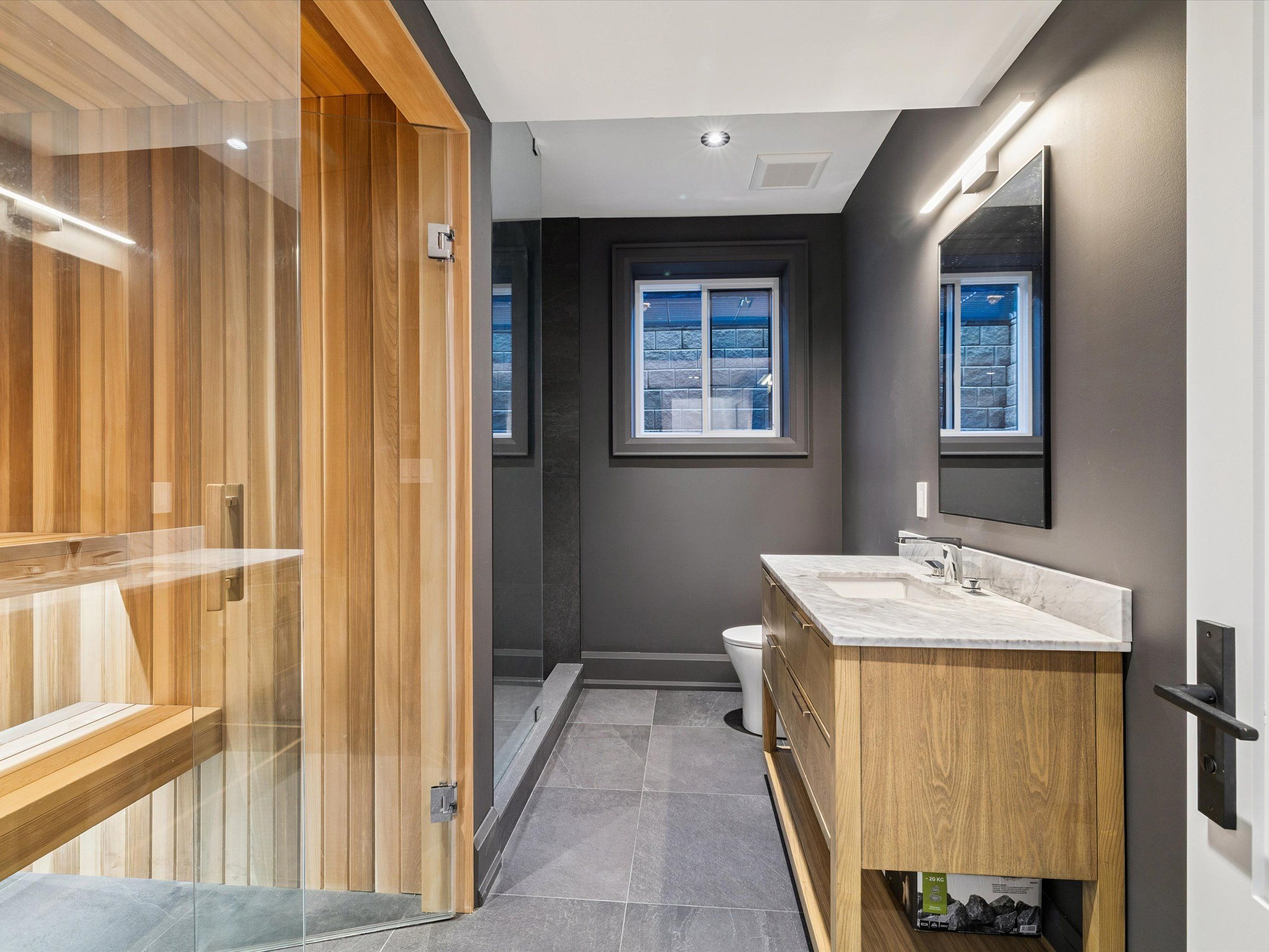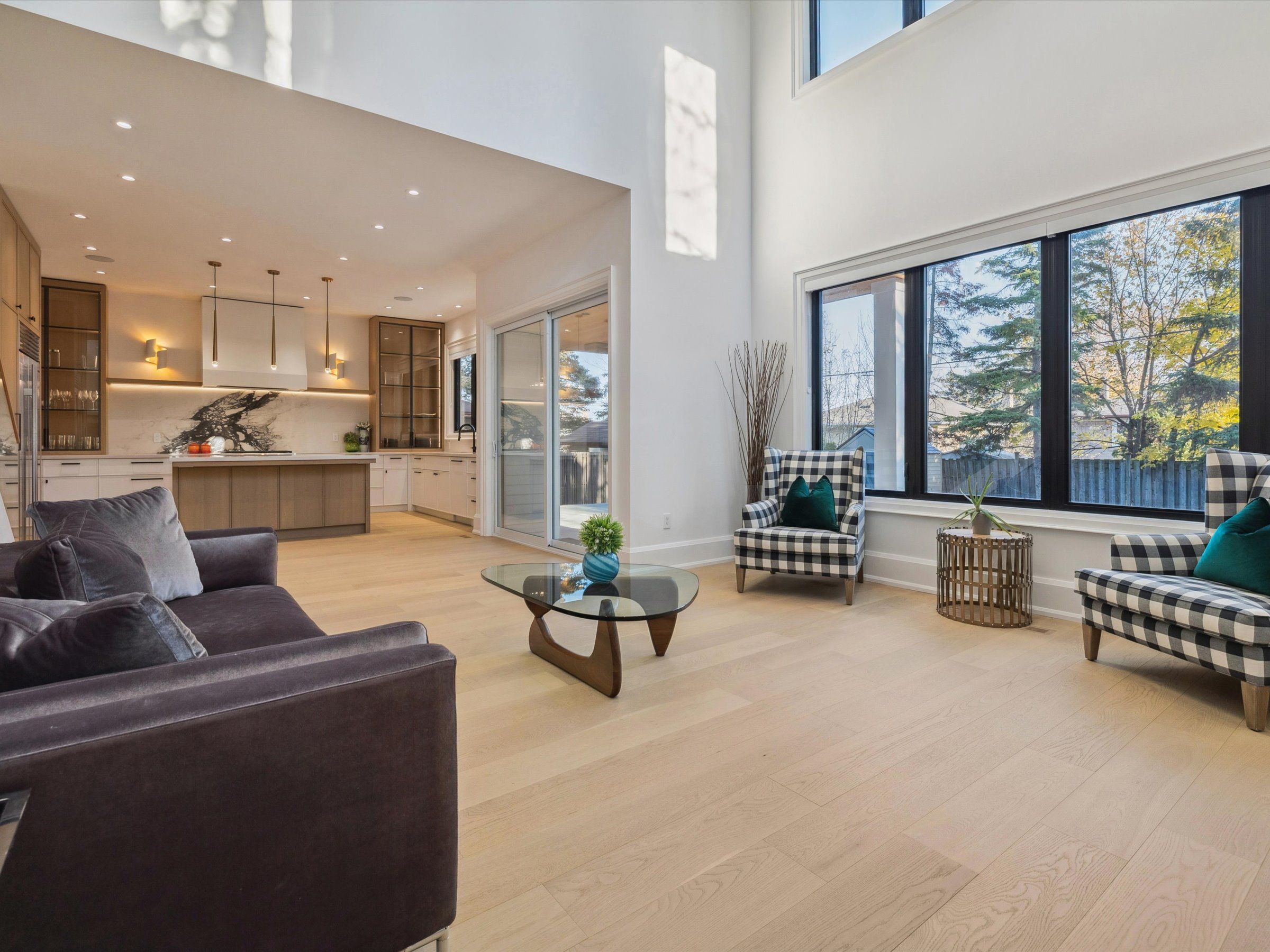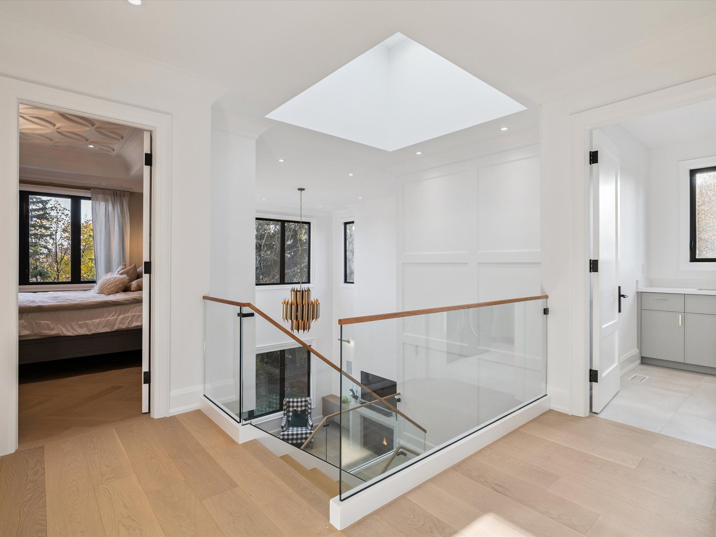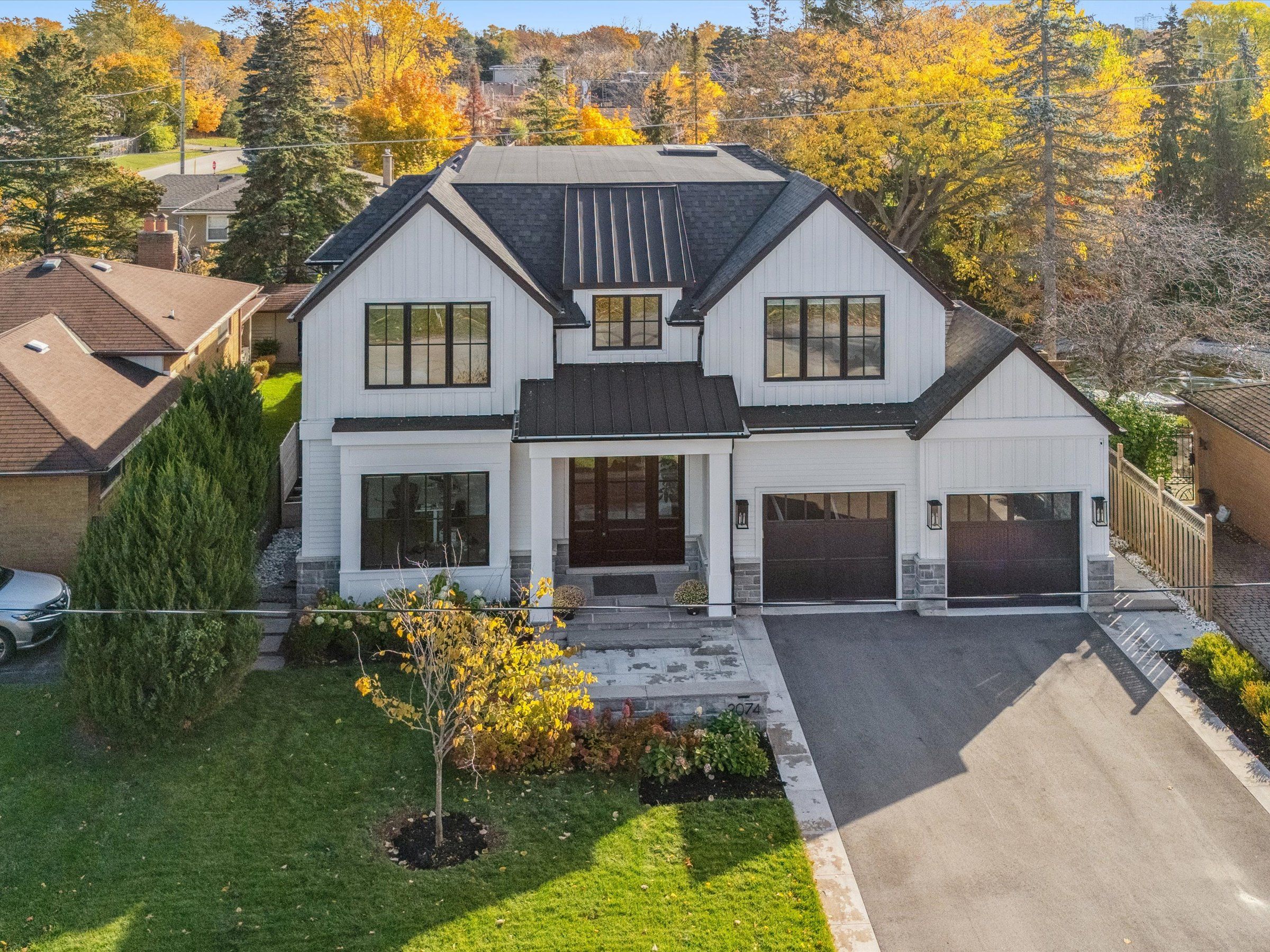 Experience the perfect blend of modern sophistication and timeless craftsmanship in this new Keeren Design Modern Farmhouse, situated on an oversized 60' x 141' mature lot fronting onto a quiet park in desirable Southwest Oakville. Built to the highest standards with meticulous attention to detail, this home features a double-height open to above great room and the oversize windows and a central skylight fills the home with natural light, 7" wide select hardwood flooring, 9" baseboards, oversized 5" casings, and solid wood trendy trim work throughout. Expansive windows flood the interior with natural light, complemented by pot lights, built-in speakers, high-end Riobel fixtures, Restoration Hardwares. The stunning Misani Custom Design kitchen showcases full quartz slab countertops and backsplash, Wolf gas range, Sub-Zero refrigerator, Miele dishwasher and microwave, and prep pantry kitchen-ideal for family living and entertaining. A sleek micro-concrete modern fireplace enhances the main floor's contemporary aesthetic. Upstairs, the primary suite features 10ft tray ceilings, artistic ceiling details, a spa-like ensuite with dual steam shower, freestanding tub, and heated smart toilet. Each bedroom offers private access to ensuites with curb-less frameless-glass Italian porcelain showers. The finished lower level includes wide-plank hardwood flooring, a recreation room, bedroom with office nook, and a custom Saunacore cedar sauna with frameless glass. Exterior features include Fraser cedar siding, custom cedar garage doors, covered porch with gas line, and a multi-zone irrigation system. The oversized garage accommodates a 20' vehicle or boat with ultra-quiet jack-lift openers. An architectural masterpiece combining elegance, functionality, and location-just minutes from Appleby College and other top-rated schools, Coronation Park, the lake and Go stations and highways.