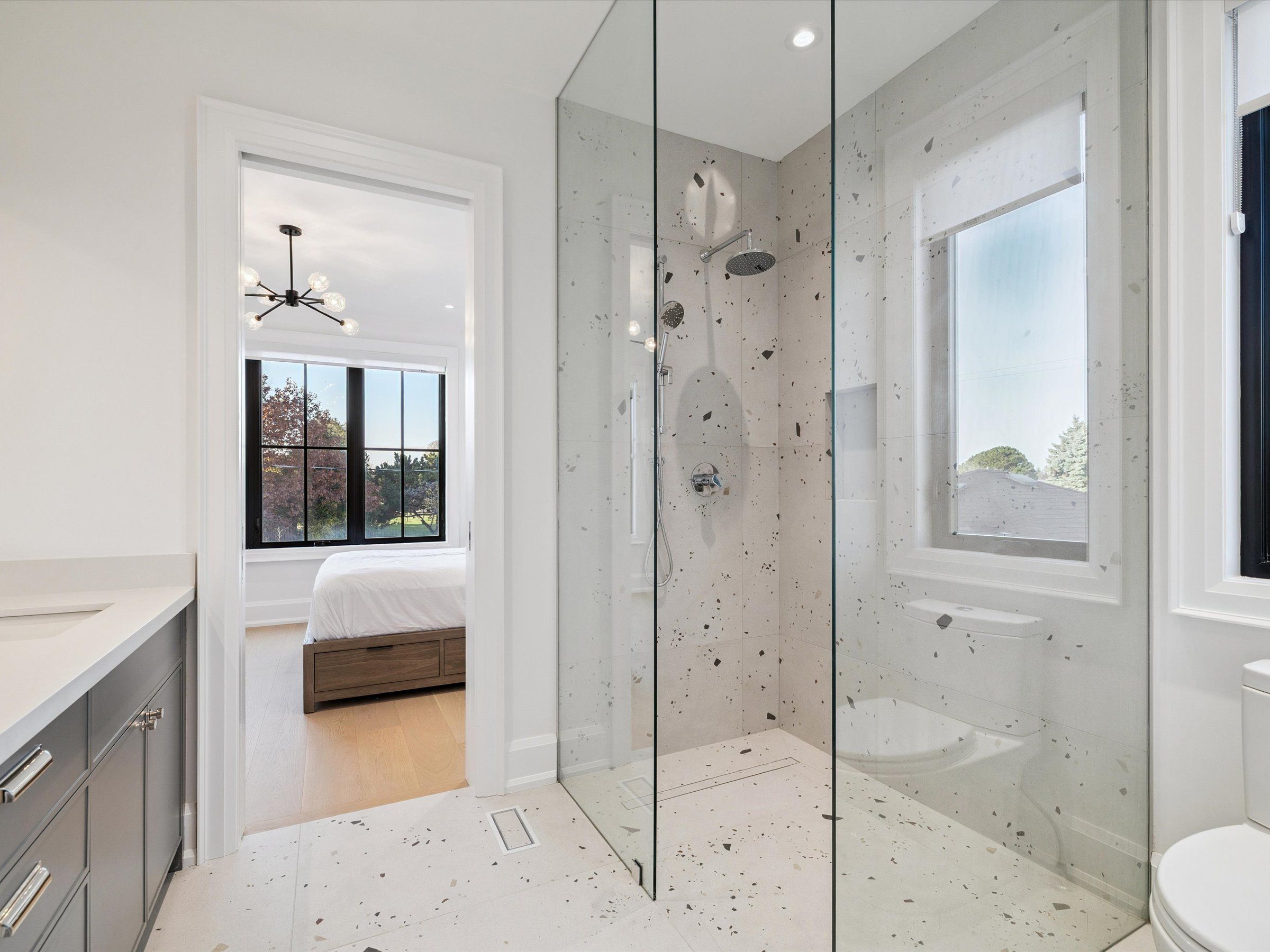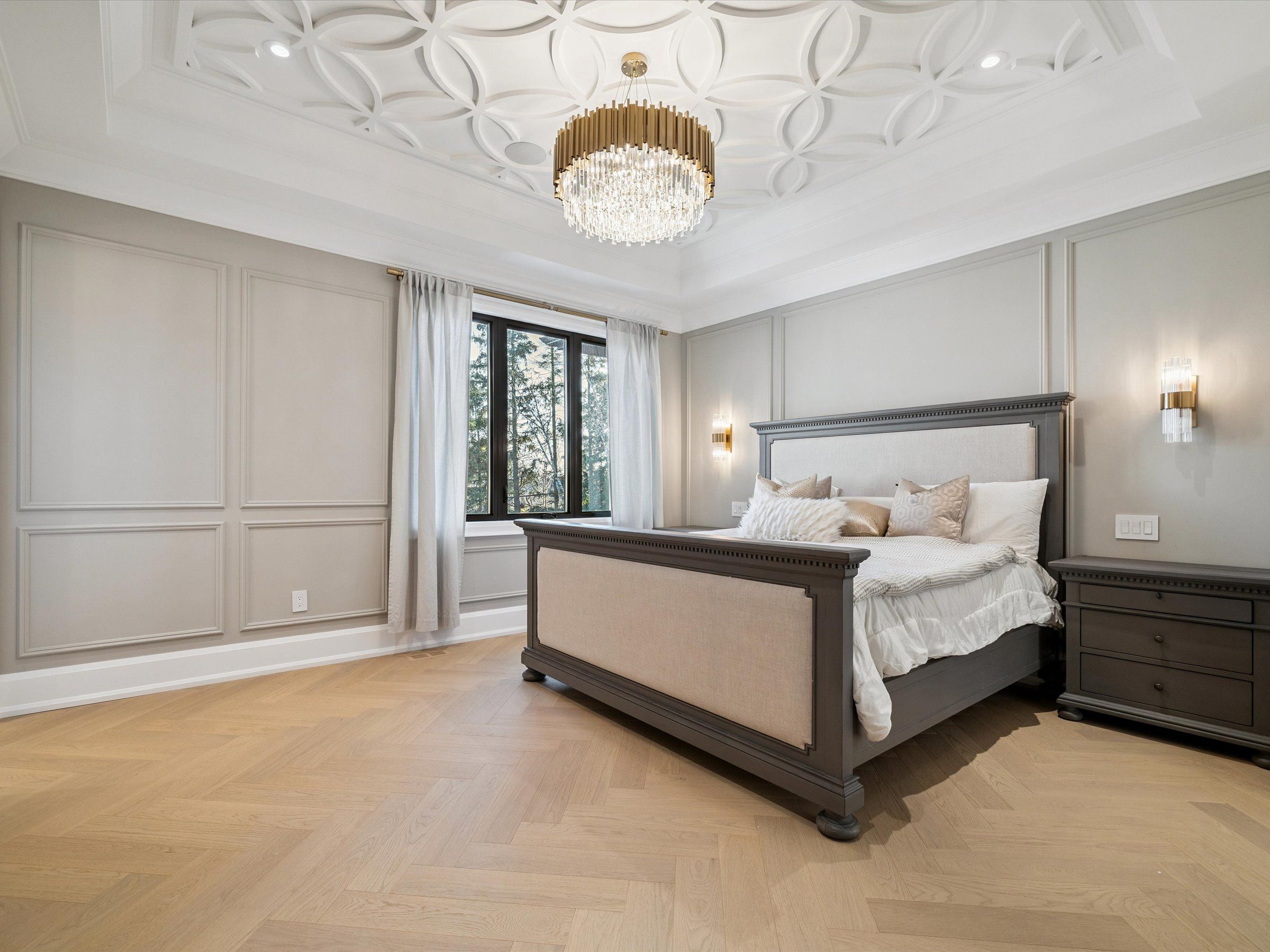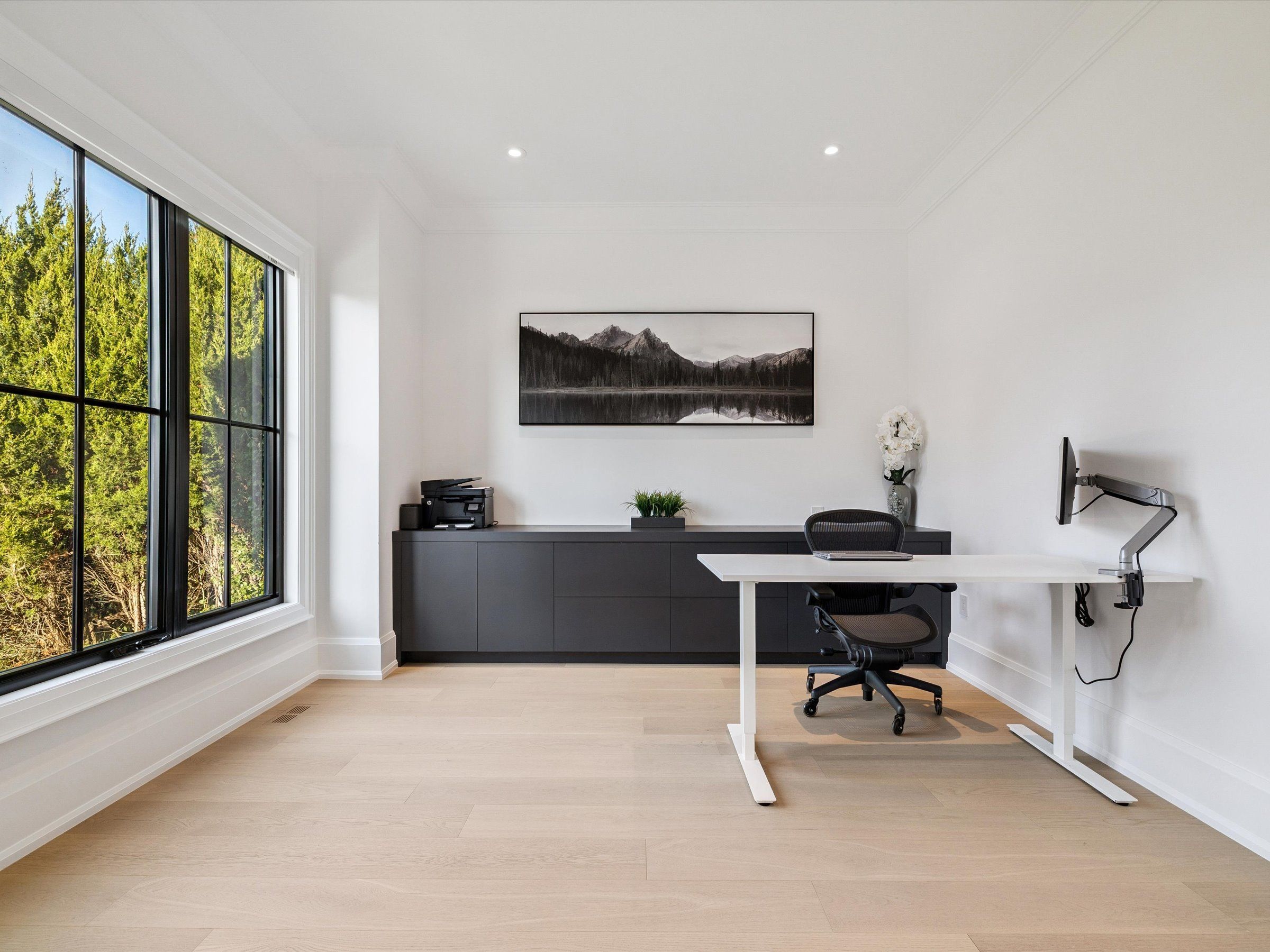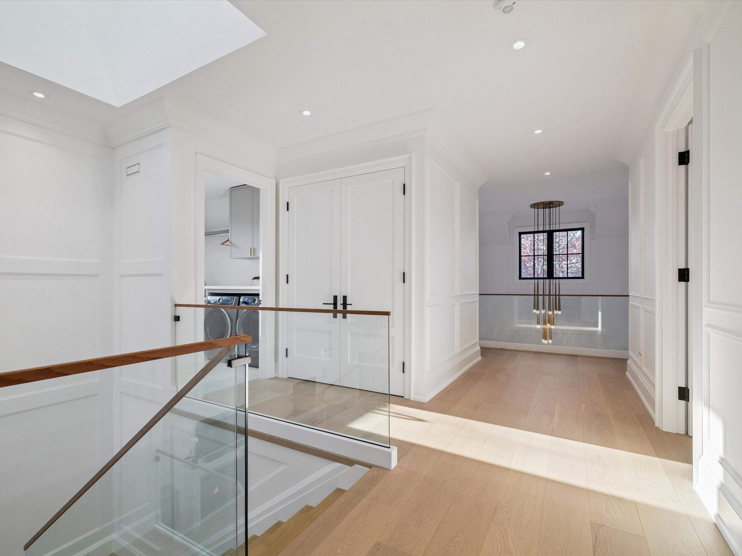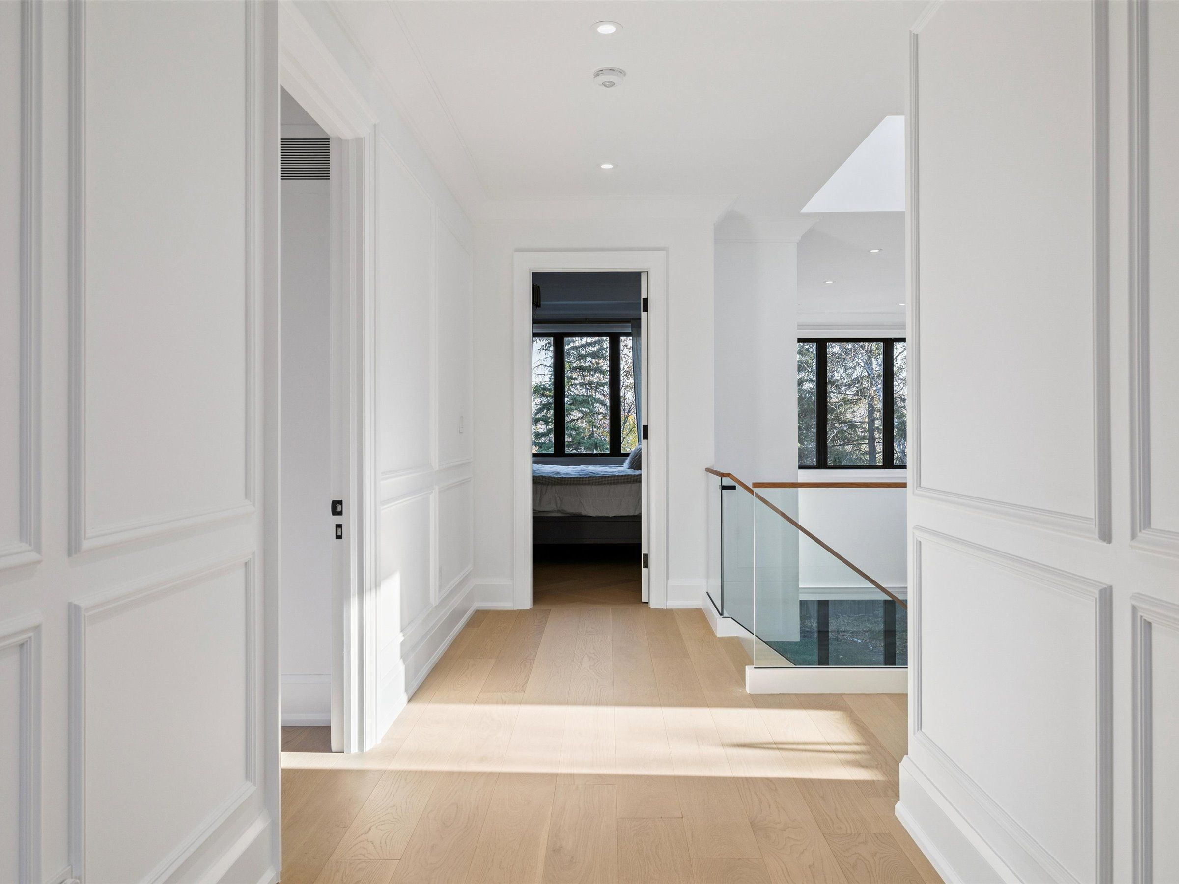 Experience the perfect blend of modern sophistication and timeless craftsmanship in this new Keeren Design Modern Farmhouse, situated on an oversized 60' x 141' mature lot fronting onto a quiet park in desirable Southwest Oakville. Built to the highest standards with meticulous attention to detail, this home features a double-height open to above great room and the oversize windows and a central skylight fills the home with natural light, 7" wide select hardwood flooring, 9" baseboards, oversized 5" casings, and solid wood trendy trim work throughout. Expansive windows flood the interior with natural light, complemented by pot lights, built-in speakers, high-end Riobel fixtures, Restoration Hardwares. The stunning Misani Custom Design kitchen showcases full quartz slab countertops and backsplash, Wolf gas range, Sub-Zero refrigerator, Miele dishwasher and microwave, and prep pantry kitchen-ideal for family living and entertaining. A sleek micro-concrete modern fireplace enhances the main floor's contemporary aesthetic. Upstairs, the primary suite features 10ft tray ceilings, artistic ceiling details, a spa-like ensuite with dual steam shower, freestanding tub, and heated smart toilet. Each bedroom offers private access to ensuites with curb-less frameless-glass Italian porcelain showers. The finished lower level includes wide-plank hardwood flooring, a recreation room, bedroom with office nook, and a custom Saunacore cedar sauna with frameless glass. Exterior features include Fraser cedar siding, custom cedar garage doors, covered porch with gas line, and a multi-zone irrigation system. The oversized garage accommodates a 20' vehicle or boat with ultra-quiet jack-lift openers. An architectural masterpiece combining elegance, functionality, and location-just minutes from Appleby College and other top-rated schools, Coronation Park, the lake and Go stations and highways.