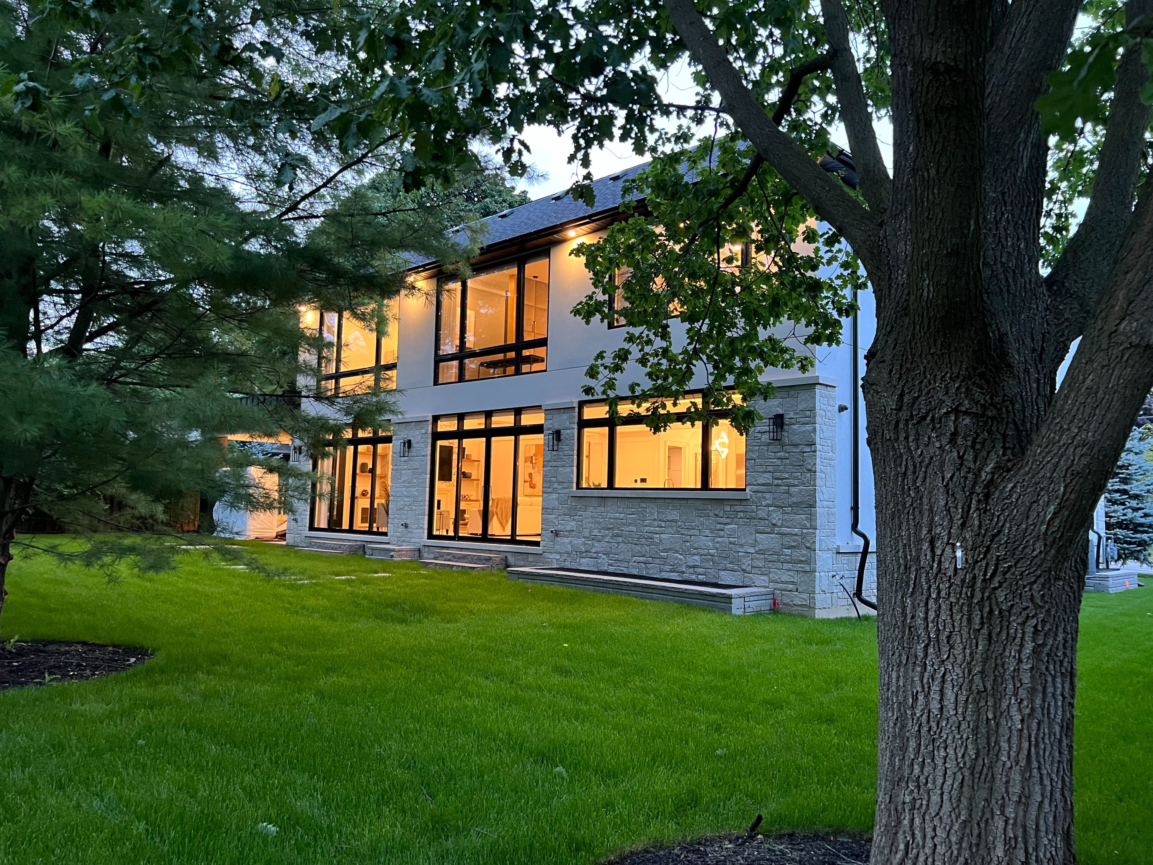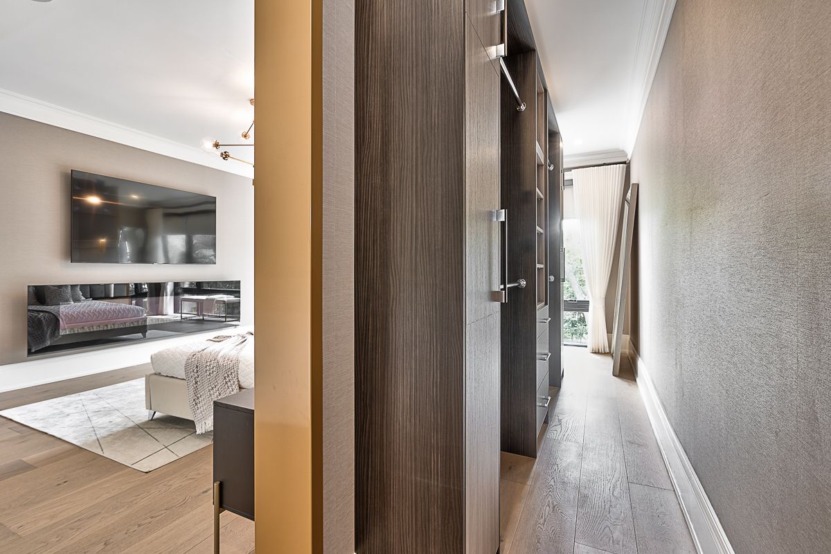 CUSTOM EXECUTIVE MASTERPIECE IN PRESTIGIOUS SOUTH-EAST OAKVILLE! Presenting 204 Maple Grove Drive, an almost new luxury residence by OBG Design Group with architectural design by Lima Architects Inc., set on an exceptional 115' x 138' mature, treed lot just north of Lakeshore Road. Offering over 6,000 square feet of finished living space, this home was impeccably crafted for refined everyday living and grand scale entertaining. A circular driveway with parking for up to 12 vehicles creates a commanding first impression, complemented by a rare three-car garage featuring heated floors and sleek glass doors. Inside, 10' ceilings, expansive windows, and abundant natural light highlight the home's elevated finishes, including coffered ceilings, electric window blinds, and dramatic staircase accent lighting. The transitional modern layout offers 4+1 bedrooms, 7 spa-inspired bathrooms with heated floors, and five fireplaces. The spectacular chef's kitchen anchors the main level, showcasing quartz countertops, an oversized centre island, and commercial-grade Wi-Fi enabled Thermador appliances. The adjoining living room stuns with a 20' ceiling, gas fireplace, and seamless walkout to the backyard. The lower level is a true retreat, complete with radiant heated floors, a theatre room with 180" projection screen, full bar, games area, gym, nanny suite, and a glass-enclosed wine cellar. Outdoors, enjoy a 400 square foot covered living area with gas fireplace, ideal for year-round enjoyment. Additional highlights include a whole-home audio system with 8 speakers, central security with 8 cameras, upgraded central vacuum, 7-zone inground sprinkler system, rough-in for Tesla charger, and rough-in for security gates. Ideally located near the lake, top-rated schools, major highways, and every essentials, this exceptional residence delivers a rare combination of luxury, functionality, and timeless design - the ultimate South-East Oakville lifestyle. (some images have virtual staging)