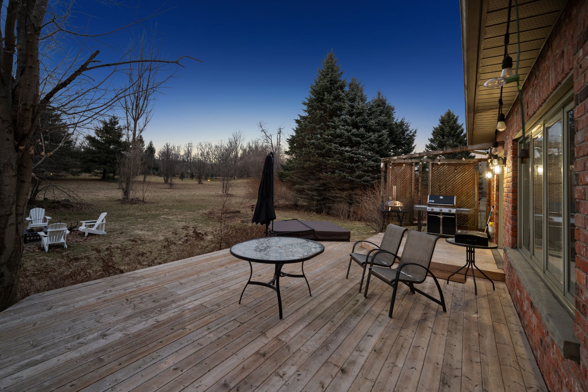 - Exterior Features: Deck, Hot Tub, Landscaped, Privacy, Porch