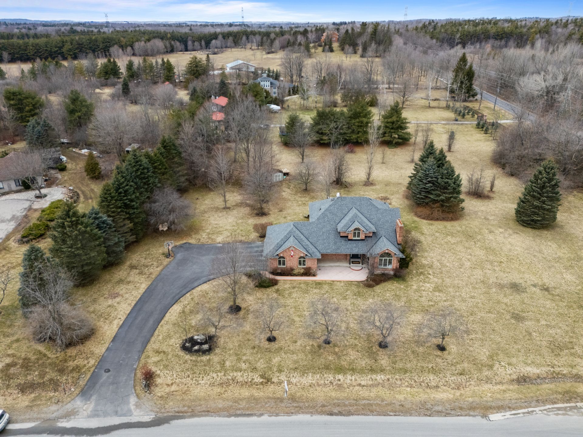 Welcome To An Extraordinary Offering In The Prestigious Countryside Enclave Of Campbellville-Where Refined Estate Living Meets Effortless Connectivity, Just Moments From Major Highways For A Seamless Commute. Set On An Impressive 2.18-Acre Corner Lot Within An Exclusive Executive Cul-De-Sac, This Impeccably Renovated And Energy Efficient Residence Showcases A Rare Blend Of Luxury, Efficiency, And Design. A Grand Arrival Awaits With An Oversized Foyer Featuring Dual Closets And A Striking Scarlett O'Hara Staircase. The Open-Concept Main Level Is Designed For Elevated Entertaining And Everyday Comfort, Featuring A Breathtaking Great Room With Vaulted Ceilings, Skylights, And A Gas Fireplace Flowing Seamlessly Into A Sophisticated Dining Area And A Chef-Inspired Kitchen Complete With Premium Appliances, Custom Cabinetry, Quartz Countertops, And A Classic Farmhouse Sink. The Main Floor Primary Suite Offers A Private Retreat With A Spa-Inspired 5-Piece Ensuite Featuring A Glass Shower And Deep Soaker Tub. Upstairs, A Juliet Balcony Overlooks The Great Room, Alongside Three Generously Sized Bedrooms And A Renovated 4-Piece Bath. The Fully Finished Lower Level With Separate Entrance Offers Flexible Living As An In-Law Suite, Office, Or Entertainment Space. Expansive Grounds Provide Privacy And Potential For A Second Driveway, While A Three-Car Garage With Dual EV Chargers, Ample Parking, And Storage Completes This Exceptional Property.