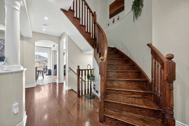 Refined Luxury in Southfield Village Caledon (Premium Lot) 3,100 Sq.Ft. detached masterpiece on a rare premium lot with unobstructed front views and a green walkway in the backyard.. The main floor welcomes you with soaring ceilings, a private den perfect for a home office, and rich hardwood flooring that flows seamlessly. Chef-inspired kitchen, boasting premium built-in appliances. Integrated smart switches and a built-in audio experience with ceiling speakers in the dining room. For enhanced accessibility, a custom chair lift (valued at $20,000). This can however be removed prior to closing if required.Four Expansive Bedrooms, custom-organized closets in three bedrooms. Five washrooms A massive recreation room in the basement, perfect footprint for a home theatre and gym, featuring a full washroom The basement also features a spacious cold storage. The backyard serve as a private escape, featuring a gazebo and a swing, overlooking a green pathway. The garage is a standout feature, fully EV-ready with connections for two electric vehicles, built-in cabinetry for a clean, organized workspace. UPGRADED 200-AMP Service. This home is perfectly positioned for both convenience and family life. Quick access to Highway 410 for an easy commute, steps away from the best schools in the neighbourhood. For leisure and errands, you are close to a modern, highly functional Recreation Center and the Village Market, which is perfect for your everyday needs. Stay connected and secure with a included comprehensive Ring security system, including a Ring doorbell and dedicated Ring cameras covering both the garage and the backyard. Step out onto the covered balcony to soak in the breathtaking, open-space views-a perfect retreat in one of Caledon's most sought-after communities. This isn't just a home; it's a life style statement.