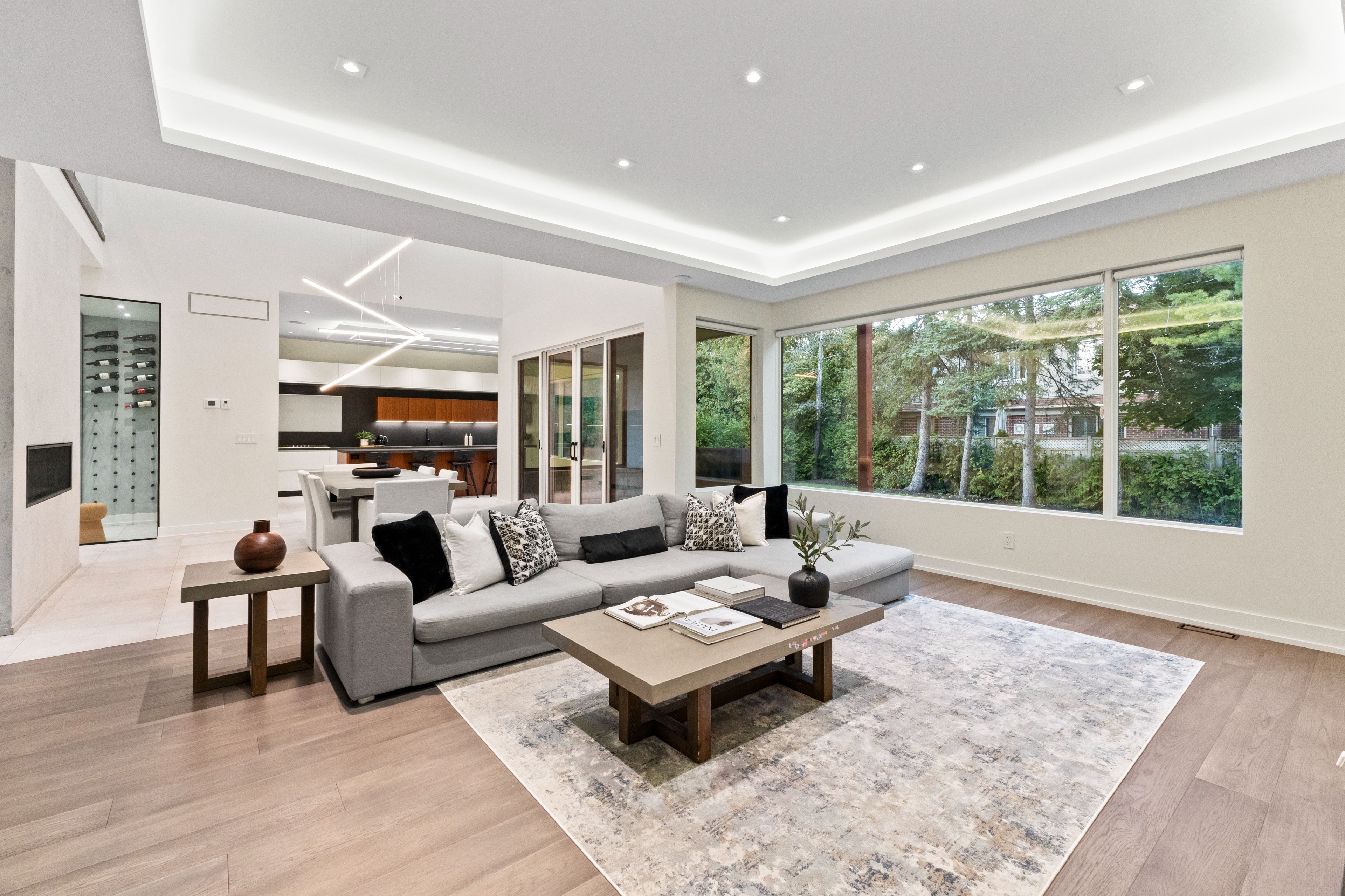 Welcome to 2075 Shawanaga Trail, tucked within the prestigious Sheridan enclave. This elegant residence offers over 6,000 SF of finished living space, thoughtfully designed with 5 bedrooms and 6 bathrooms. A dramatic double-height foyer sets the tone, leading into light-filled interiors where oversized windows showcase the homes architectural elegance. Tray ceilings with recessed and cove lighting create a soft ambient glow, while a two-way gas fireplace anchors the open living and dining areas. A glass-enclosed wine display adds a sculptural statement, perfect for the discerning collector. The chef's kitchen features quartz countertops, integrated appliances, custom cabinetry and walk-in pantry. It flows seamlessly into the main gathering spaces with views of the private backyard. A covered patio invites year-round entertaining, while a main floor office offers quiet workspace. Above, the primary suite is a private retreat with dual walk-in closets and a spa-like ensuite with freestanding tub and glass shower. Three additional bedrooms feature walk-in closets and private or semi-ensuite baths. A second-floor laundry room adds convenience. The finished lower level boasts 9-foot ceilings, a full wet bar, expansive recreation room, guest suite with ensuite, and a flexible room ideal for media or fitness. Outdoors, the professionally landscaped backyard is framed by mature trees, offering privacy, tranquility, and space to customize. Additional highlights include engineered hardwood, built-in Sonos audio, newer roof and windows (2022), and ample parking. Located near Mississauga and Credit Valley Golf Clubs, University of Toronto Mississauga, and highly acclaimed schools. Just minutes to the QEW, 403, Port Credit Village, and scenic waterfront trails.