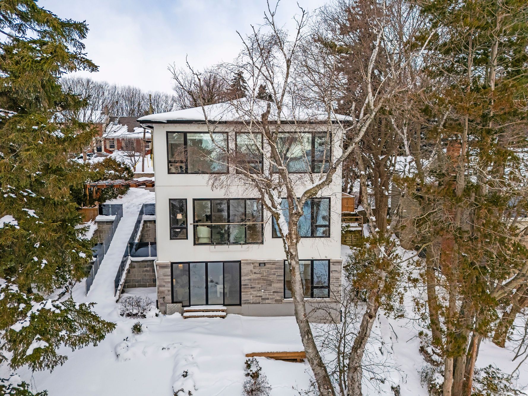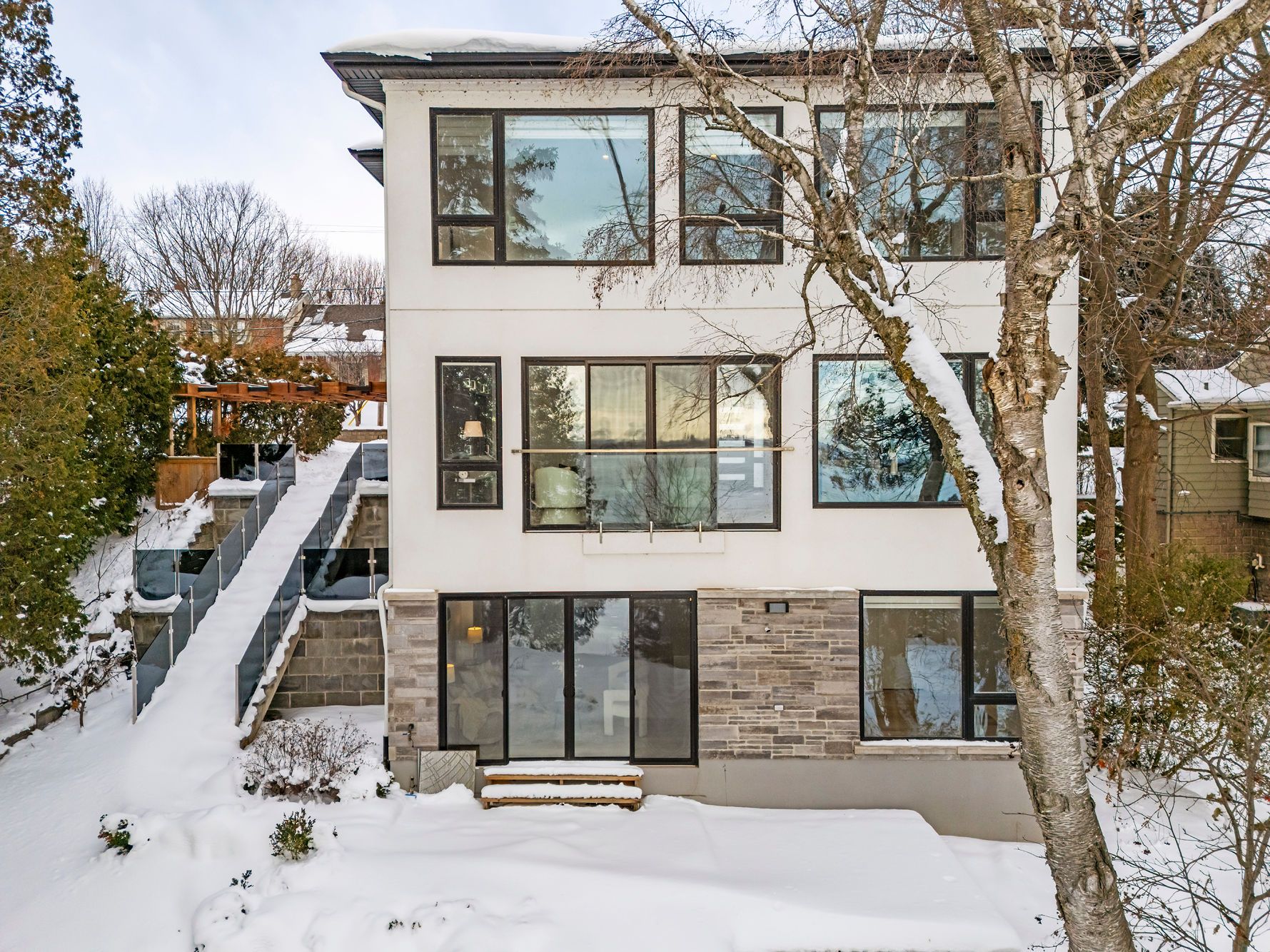 An exceptional waterfront residence, fully renovated with Addition from top to bottom in2020, offering breathtaking views of Lake Ontario and over 70 ft of direct waterfront. This stunning home features 3+1 bedrooms, 4.5 bathrooms, and approximately 3,000 sq. ft. of beautifully finished living space, plus a detached guest house of approx. 400 sq. ft. The open-concept main level is designed to maximize natural light and panoramic lake views, ideal for entertaining. The second level offers three spacious bedrooms, each with its own private ensuite. The walk-out basement includes a generous family room, an additional bedroom , and direct access to the lake-just steps to the shoreline. Nestled in a tranquil, tree-lined neighbourhood near the Burlington Golf & Country Club, and minutes to downtown Burlington, GO Train, shopping, schools, and waterfront trails. A rare opportunity to own a truly remarkable luxury waterfront home.