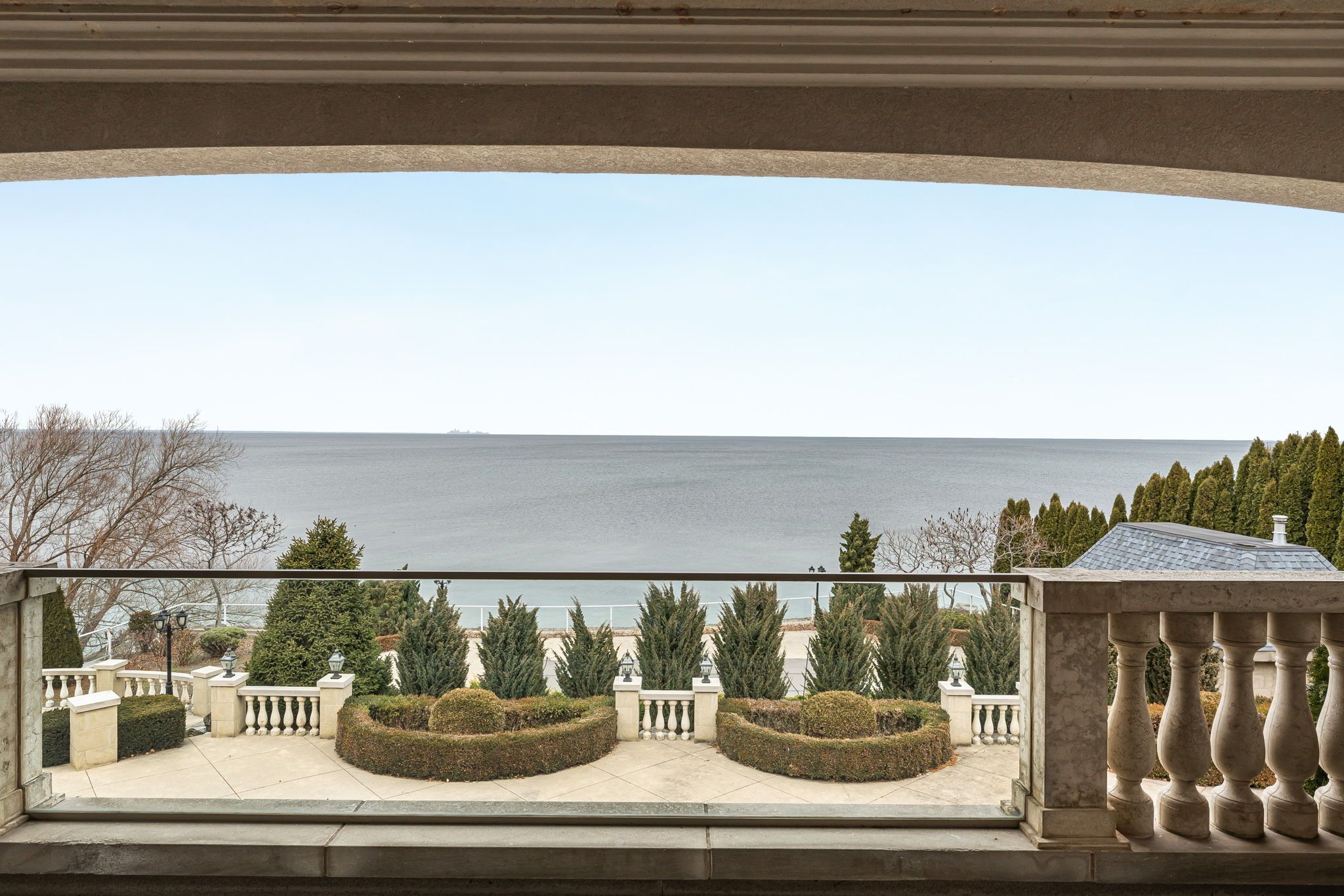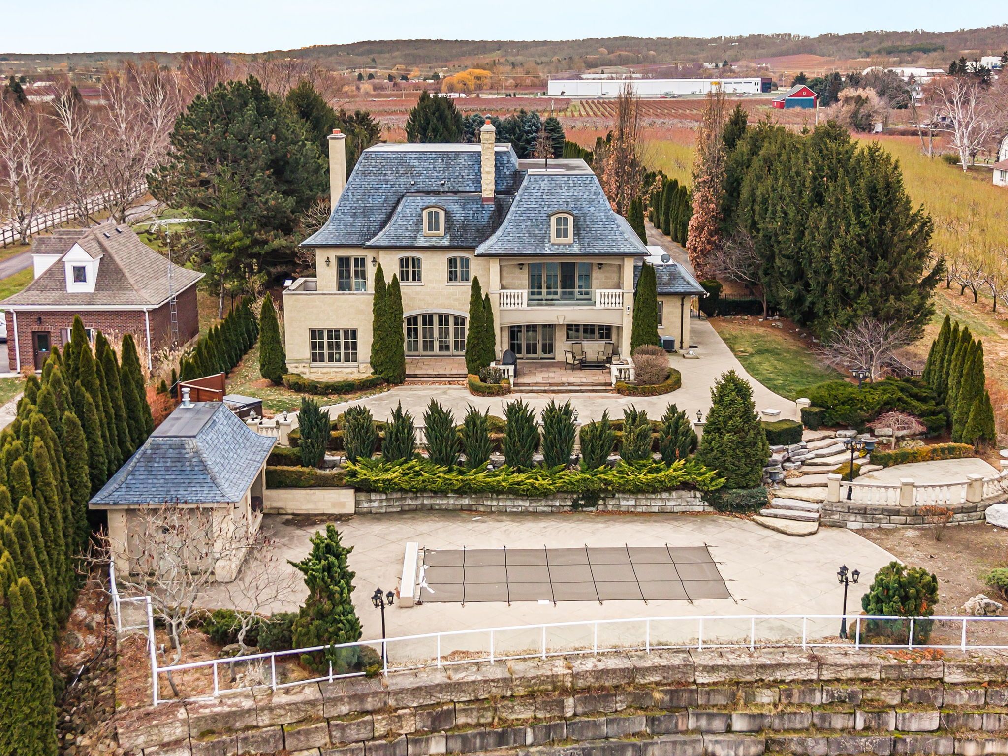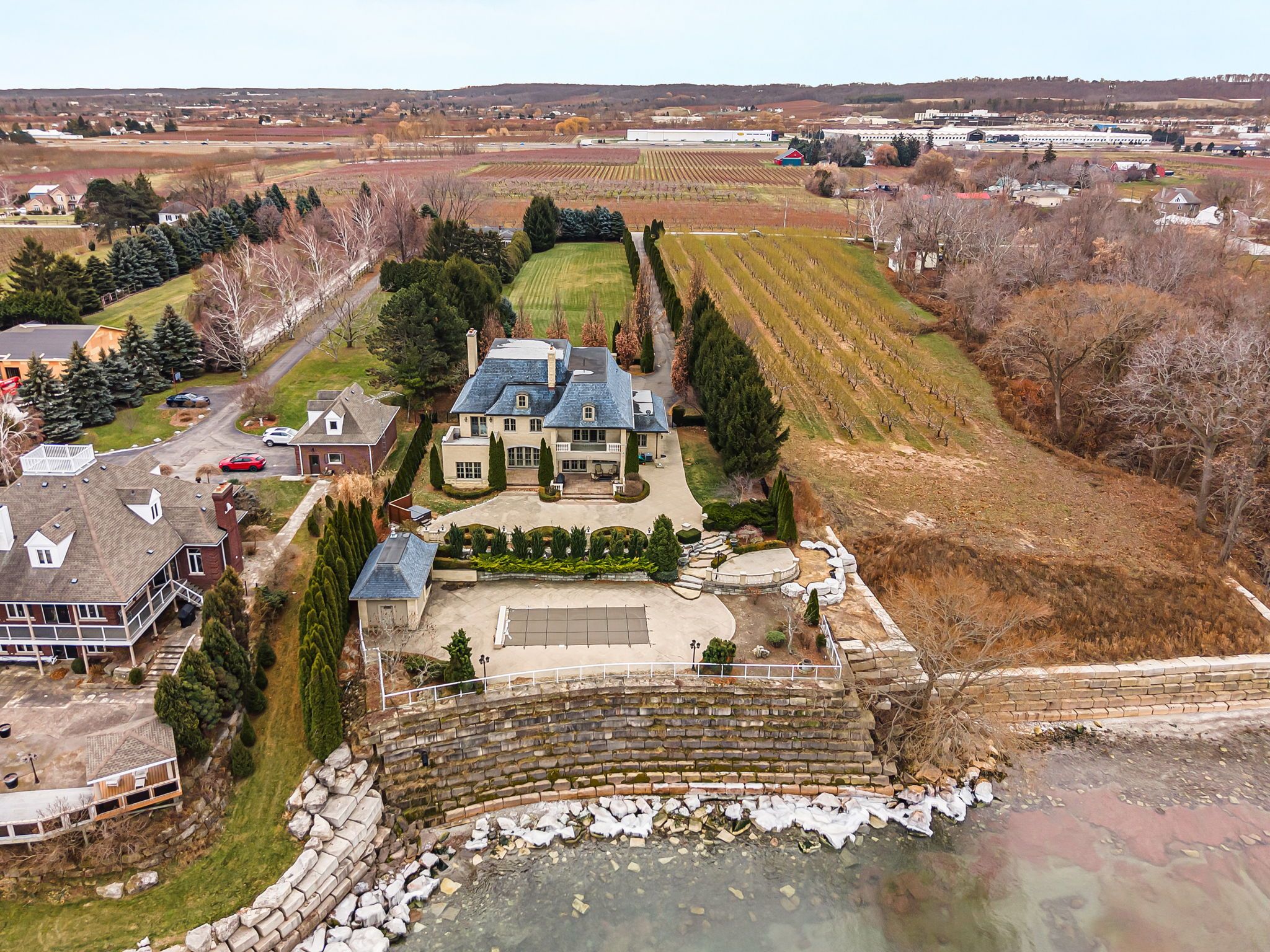 Waterfront. Private. Refined. Set along the shoreline of Lake Ontario, 5545 Blezard Drive offers a private waterfront setting in the heart ofLincoln. The property spans an impressive 115' x 682' lot, creating a sense of space and seclusion while capturing uninterrupted lake and skylineviews. The residence is designed for everyday living and hosting, with a well-balanced layout that includes formal living and dining rooms, acomfortable family room, and a private library. The kitchen is equipped with premium appliances and opens to a bright breakfast area, where adouble-sided fireplace connects the interior to the outdoors. From here, step onto the patio and take in the calm of the water beyond. Upstairs,the home offers five plus one bedrooms, each with its own ensuite and walk-in closet, well suited for families and guests alike. Outdoors, thewaterfront lifestyle takes center stage. A saltwater pool and cabana sit steps from the lake, with glass railings to preserve the view. A recentlyinstalled break wall adds shoreline protection and peace of mind. Completing the property are a circular driveway and an attached two-cargarage. This is a refined lakeside home where privacy, space, and setting come together in a way that is increasingly rare