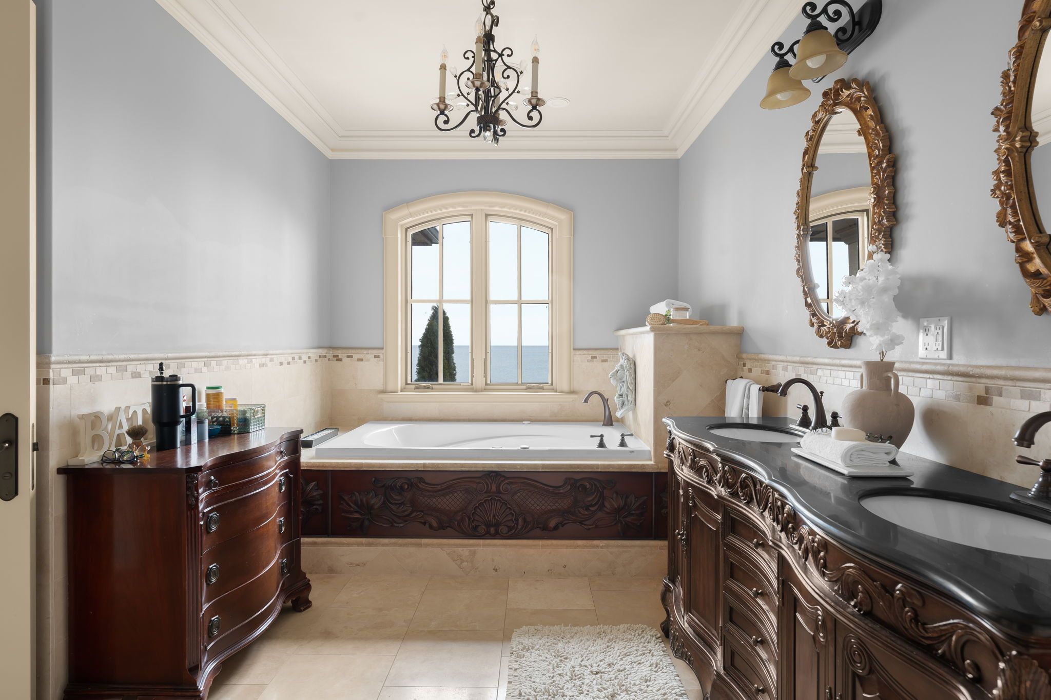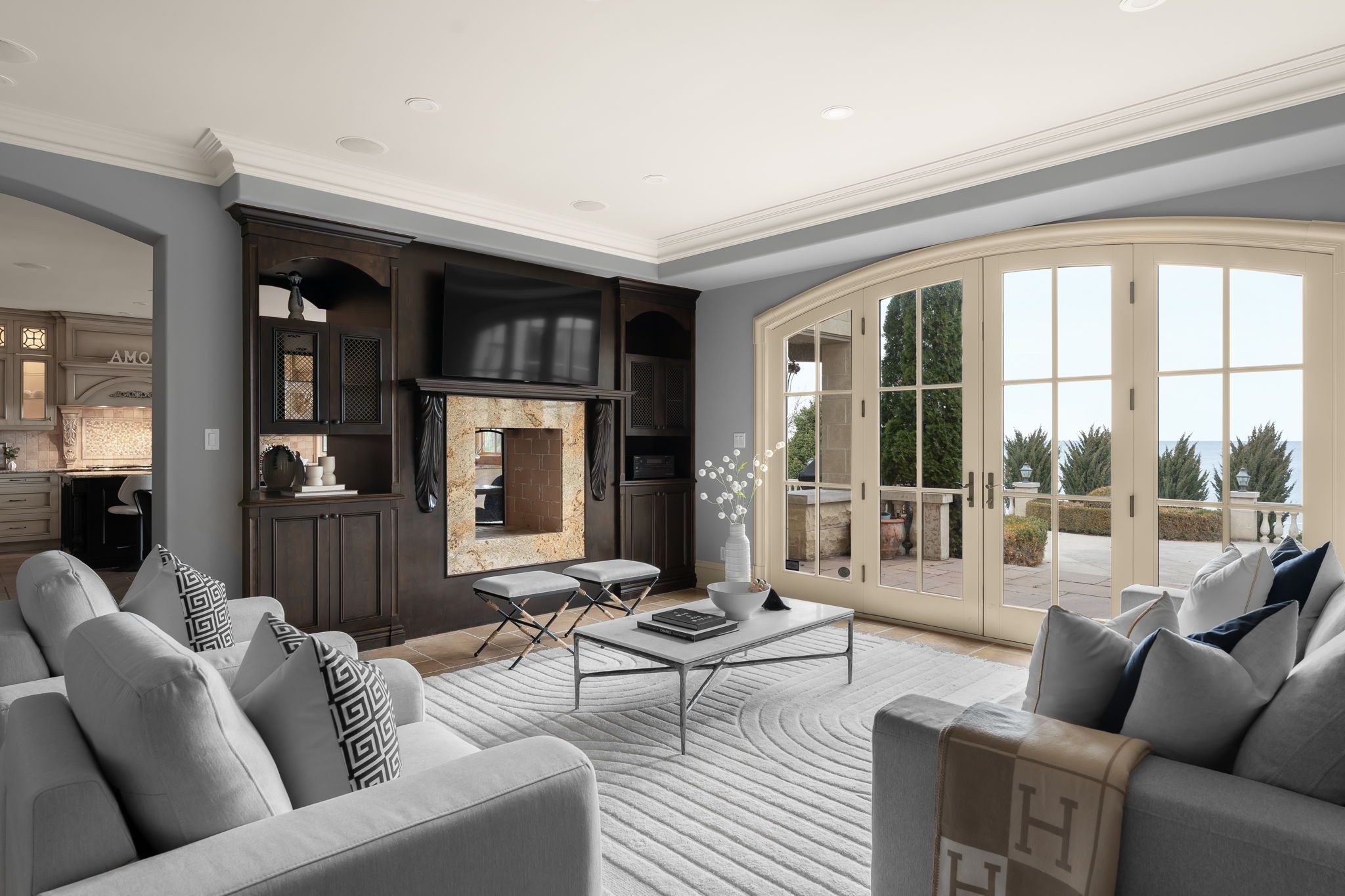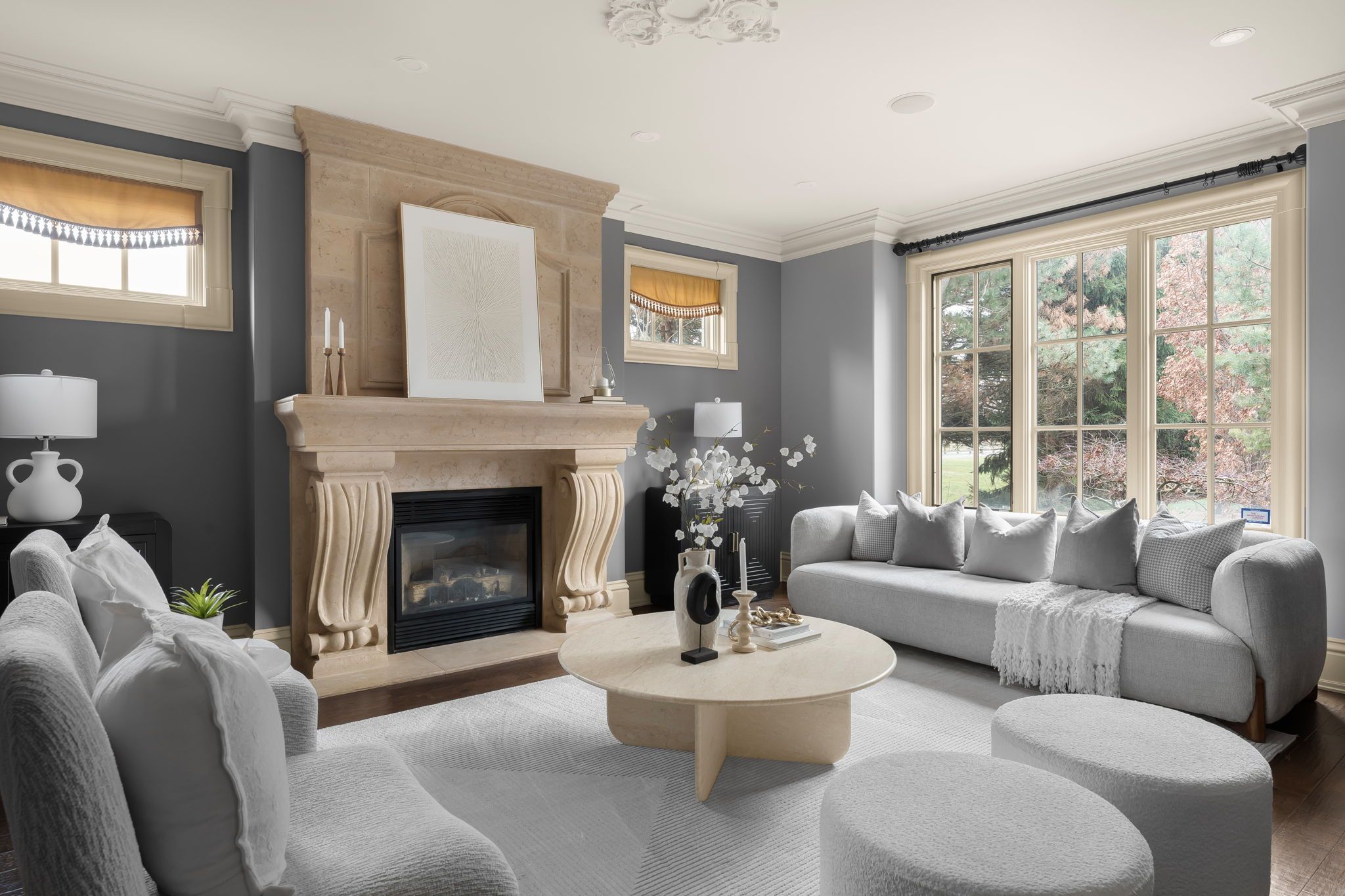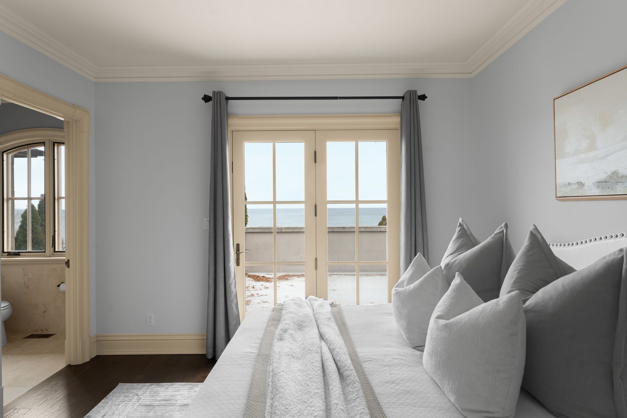 Waterfront. Private. Refined. Set along the shoreline of Lake Ontario, 5545 Blezard Drive offers a private waterfront setting in the heart ofLincoln. The property spans an impressive 115' x 682' lot, creating a sense of space and seclusion while capturing uninterrupted lake and skylineviews. The residence is designed for everyday living and hosting, with a well-balanced layout that includes formal living and dining rooms, acomfortable family room, and a private library. The kitchen is equipped with premium appliances and opens to a bright breakfast area, where adouble-sided fireplace connects the interior to the outdoors. From here, step onto the patio and take in the calm of the water beyond. Upstairs,the home offers five plus one bedrooms, each with its own ensuite and walk-in closet, well suited for families and guests alike. Outdoors, thewaterfront lifestyle takes center stage. A saltwater pool and cabana sit steps from the lake, with glass railings to preserve the view. A recentlyinstalled break wall adds shoreline protection and peace of mind. Completing the property are a circular driveway and an attached two-cargarage. This is a refined lakeside home where privacy, space, and setting come together in a way that is increasingly rare