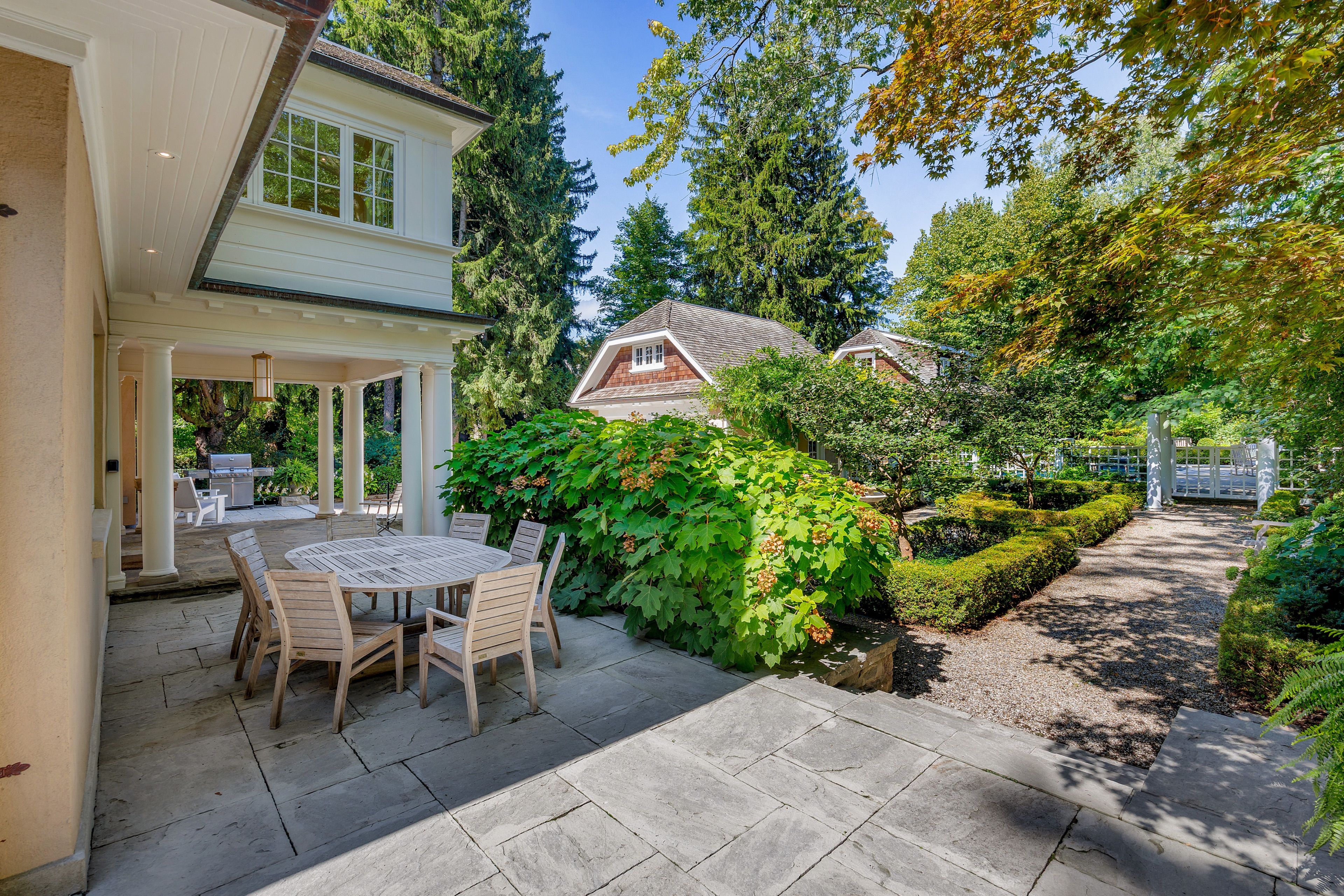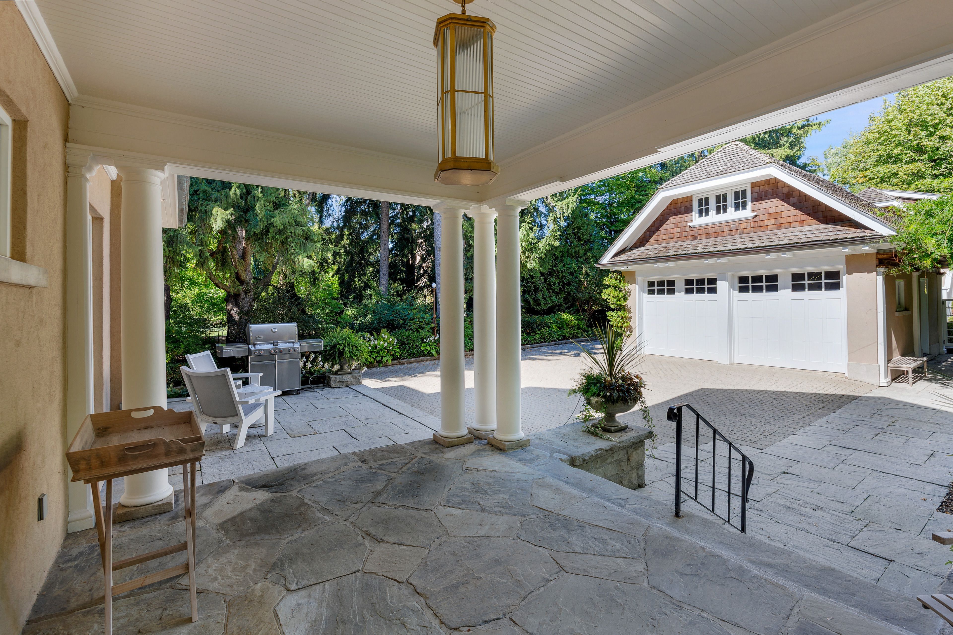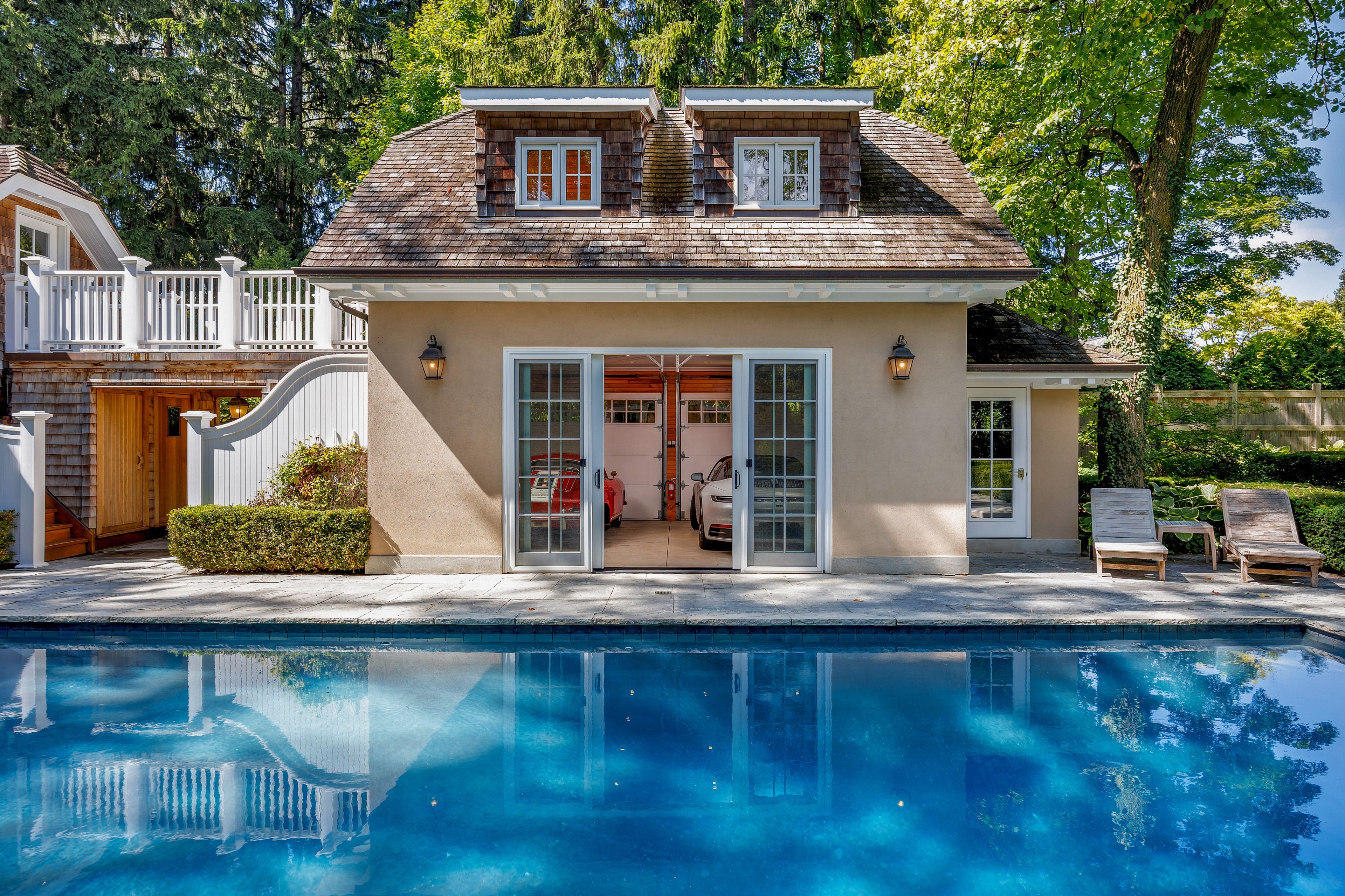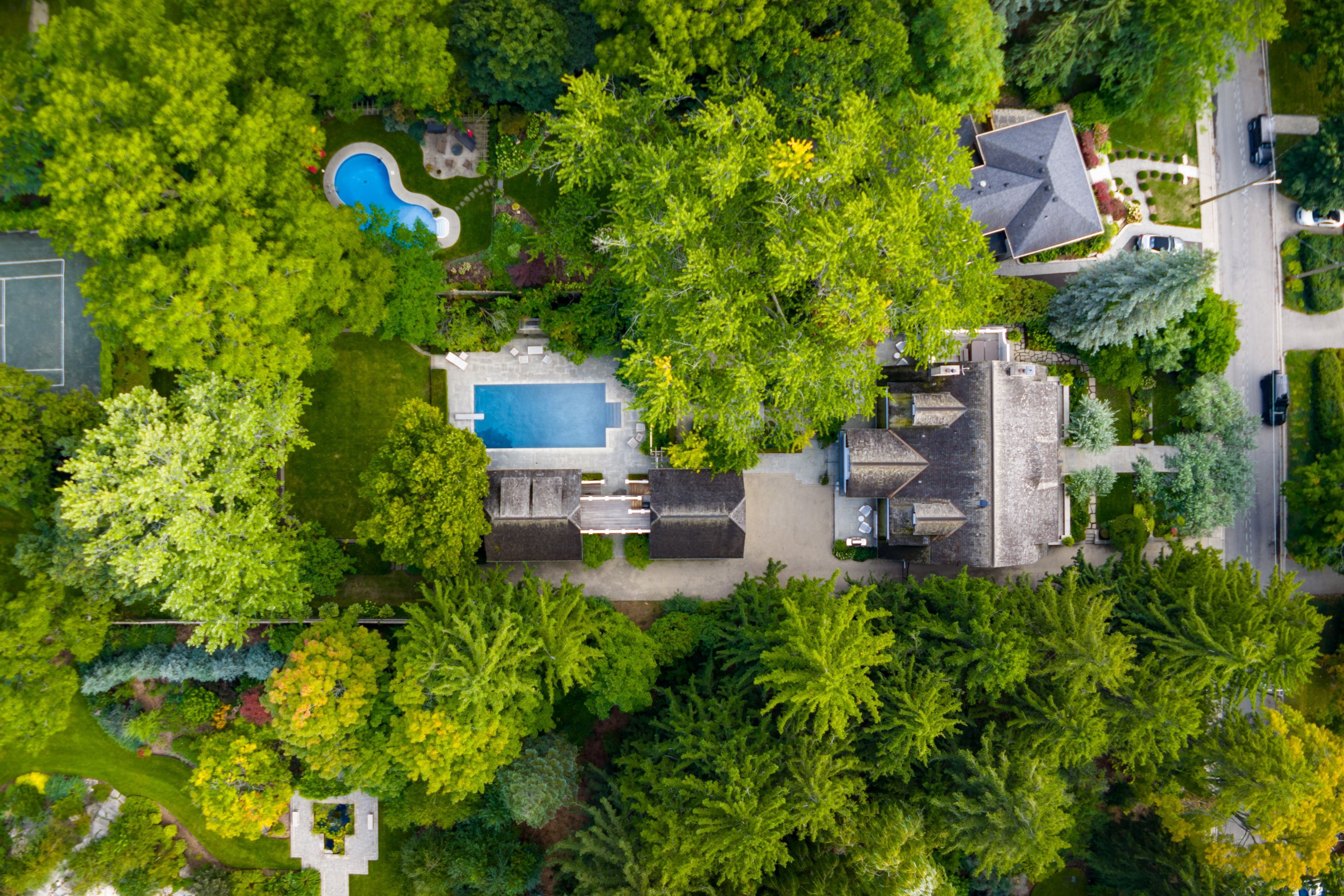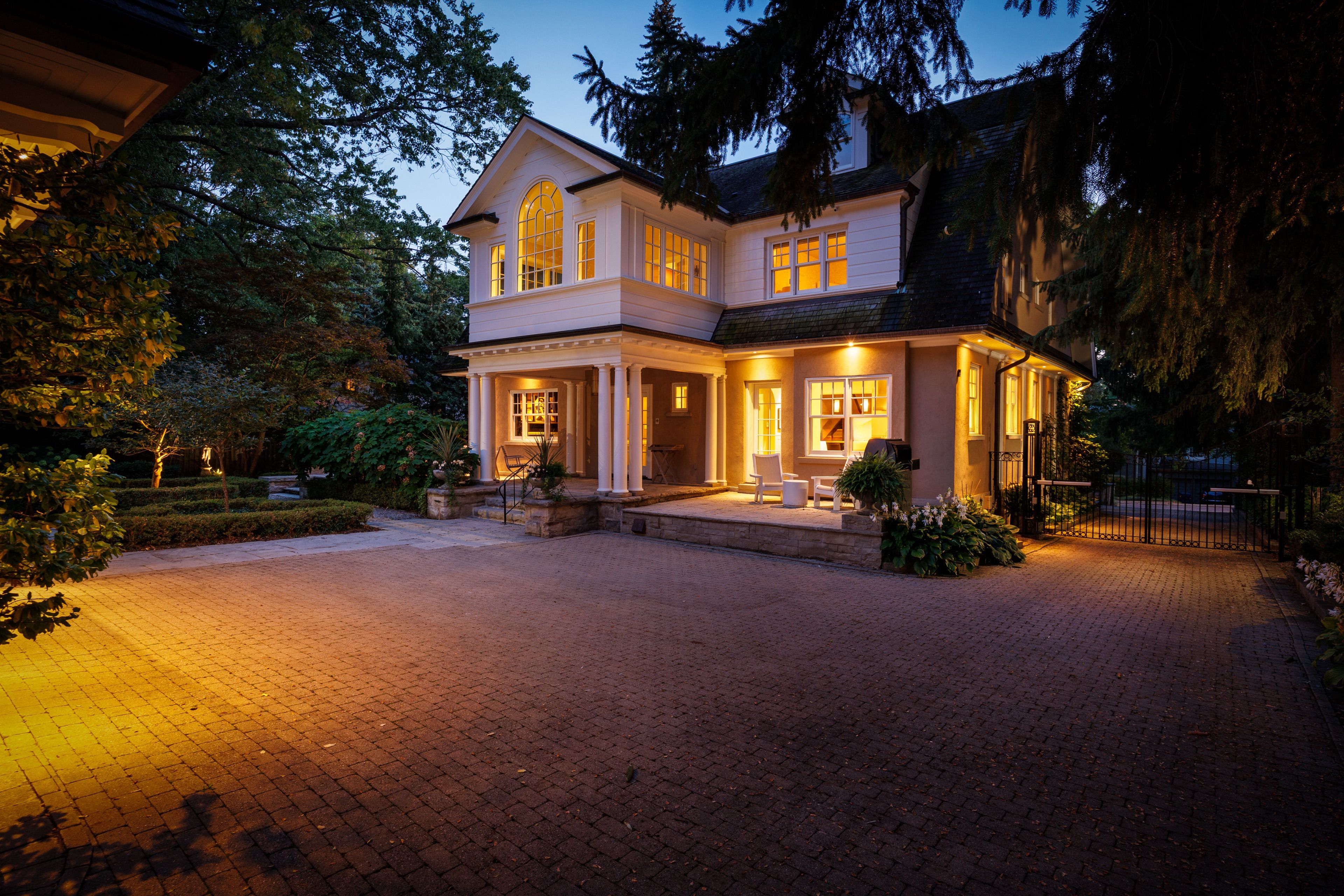 A landmark estate in St. George's Park. Privately set on one of Guelph's most prestigious streets, 75 Queen Street is a legacy residence of rare scale and architectural significance. This fully reimagined Dutch Colonial estate sits elevated on an 89 x 264-foot lot, surrounded by professionally designed grounds that have been meticulously cultivated and maintained for over 25 years. The exterior offers resort-quality living, with a saltwater pool, wood-burning fireplace, outdoor shower, and dedicated pool bathroom, framed by mature trees and layered stonework. The sense of privacy and serenity is immediate. Inside, the home spans over 5,700 square feet of finished space and follows a classic centre-hall plan with gracious flow and custom detail throughout. The main level includes a grand great room, formal dining room, glass-enclosed sunroom, chef's kitchen with granite surfaces and premium appliances, and a private office. Upstairs, the primary suite features two fireplaces, a walk-in closet, a five-piece ensuite, and a private balcony with hot tub. The third floor offers additional bedrooms, a large family room with wet bar, and elevated views of the gardens and city skyline. The fully finished lower level includes radiant heated floors, a home theatre, cigar lounge with ventilation, wine cellar, kitchenette, and full laundry. A detached garage and separate outbuilding provide parking for four vehicles, a sauna, a full bath, and two upper lofts that are ideal for guest accommodation, a studio, or a wellness retreat. In total, there is parking for 14 vehicles. All buildings are security-monitored and equipped with heat sensors, ensuring peace of mind and enhanced safety throughout the estate. Just steps to St. George's Park and within walking distance to downtown, the GO Station, and top schools, this property presents a rare opportunity to own one of Guelph's most iconic estates. Timeless, private, and built without compromise.