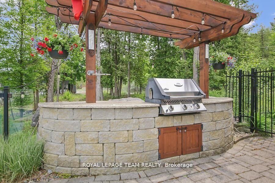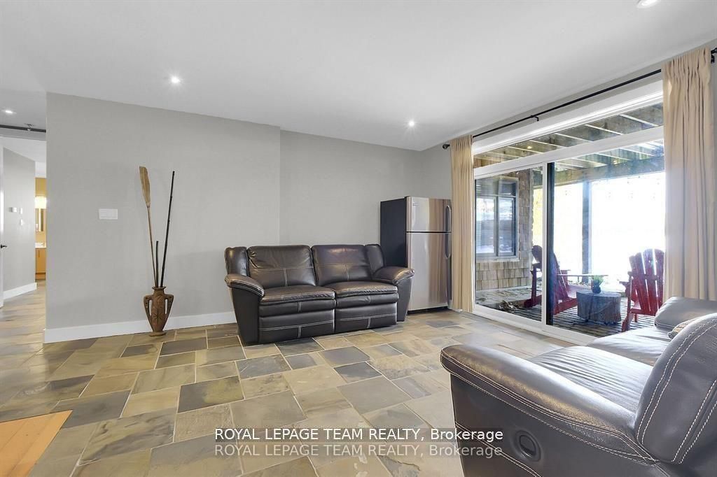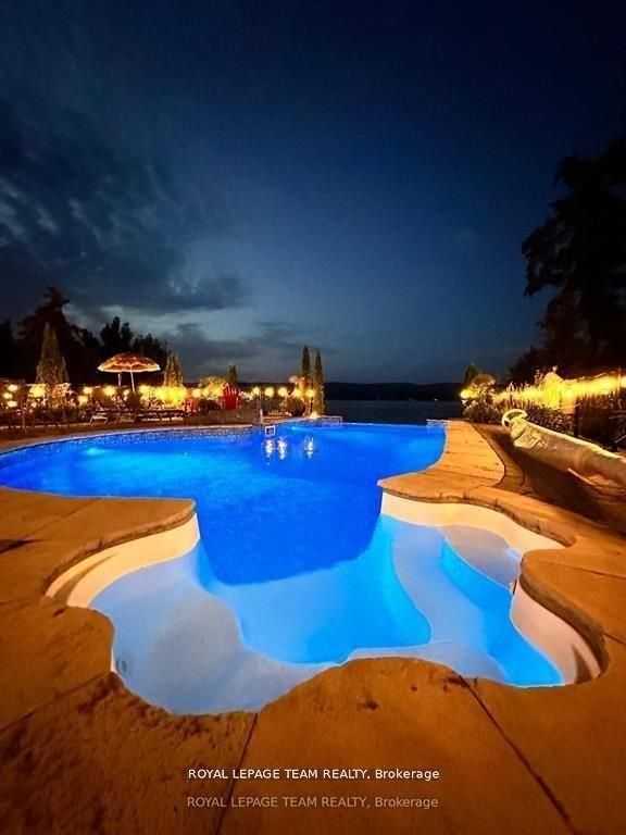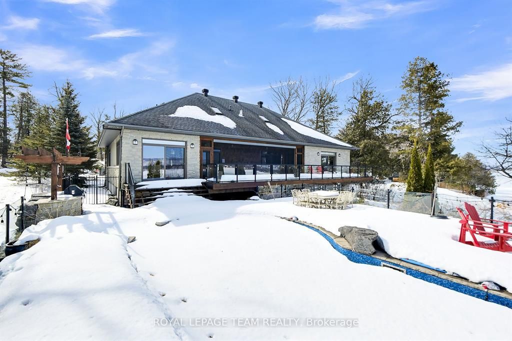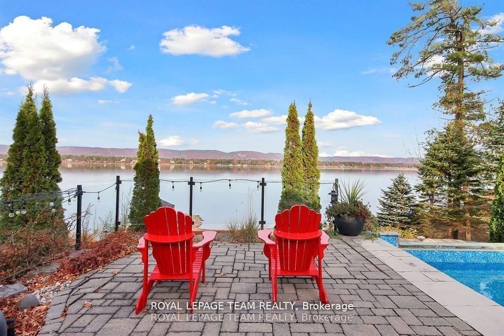 This gorgeous 5 bedroom, 3 bathroom waterfront home is truly one of a kind. Enter into the foyer and immediately be taken away by the breath taking views of the hills across the stunning waterfront. The foyer opens up to the spectacular living room featuring a fireplace, 2 skylights and 2 large sliding doors leading out to the screened in deck. This grand living room is open to the eat-in kitchen featuring stainless steel appliance, built in wine racks, ample cupboard space and an addition sliding door leading out to the massive deck. On the main level you will also find the incredibly spacious primary bedroom featuring a walk-in closet, 4 piece ensuite, fireplace and additional sliding doors leading out to the deck. This is the perfect couples retreat in your very own home. On the lower level you will find a centrally built wet bar and home theatre, perfect for entertaining, along with addition sitting space, 4 bright bedrooms and a 6 piece bathroom. The 1800 sqft heated garage with high ceilings offers ample storage space and opportunity for car lifts. The most notable part of this one of a kind home is by far the outdoor space. Not only is the screened in deck, massive uncovered deck, and large yard a wonderful space to enjoy all to yourselves or host guests, but the in-ground infinity pool and sandy shore line is every outdoor lovers dream. Enjoy a day of boating on the Ottawa River from your very own private dock. The spectacular waterfront offers prime views of sunrise and sunset all summer long and year round sunsets that are truly remarkable. No detail was missed inside or out in the design of this stunning property. NEW IN 2025 : NEW ULTRA VOILET SYSTEM, REVERSE OSMOSIS SYSTEM, FRIDGE, MICROWAVE, WASHER, DISHWASHER,HEAT PUMPS, POOL COMPUTER, POWDER ROOM TOILET, 3 WATER SOFTENERS - ALL NEW THIS YEAR.