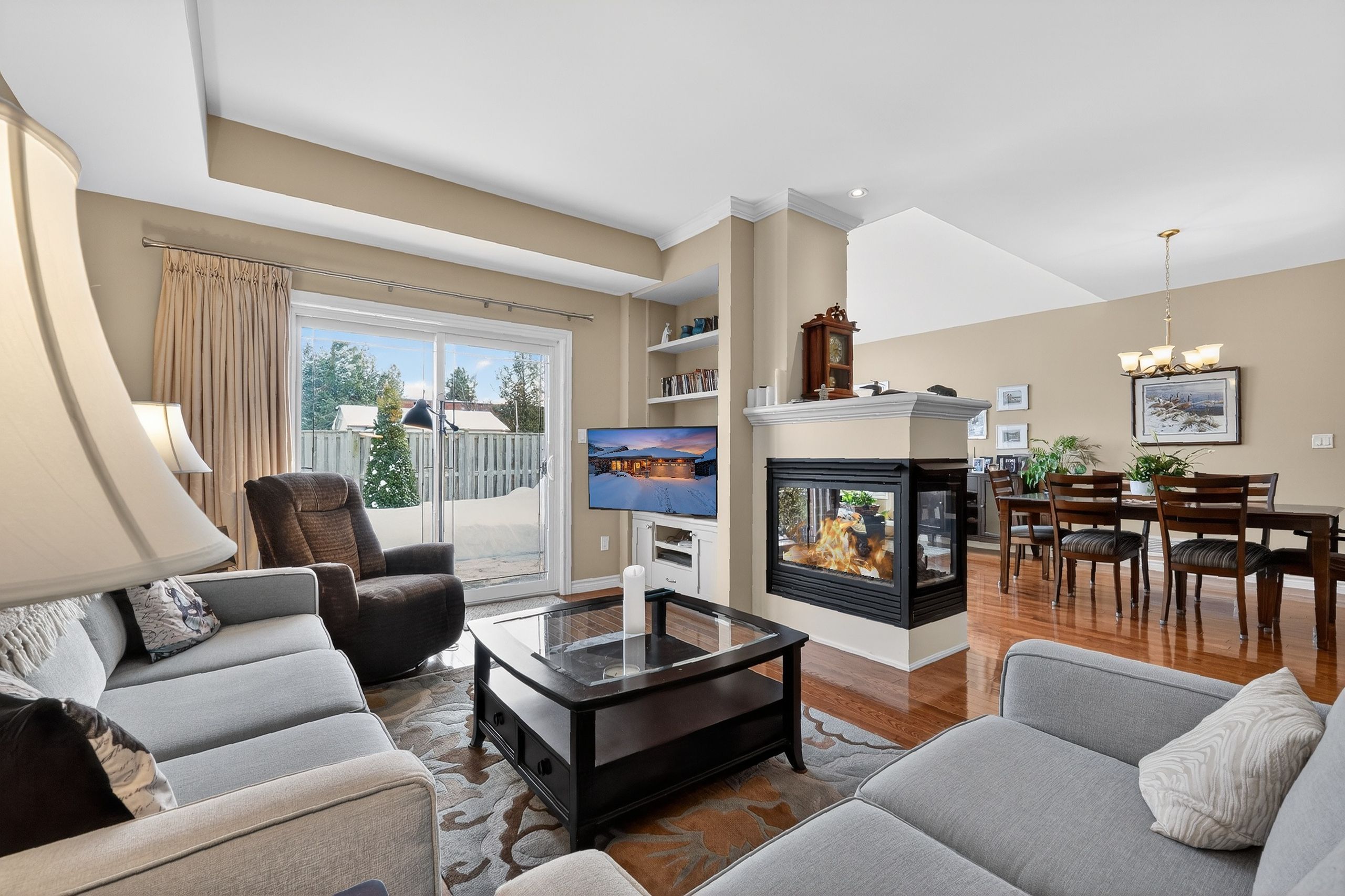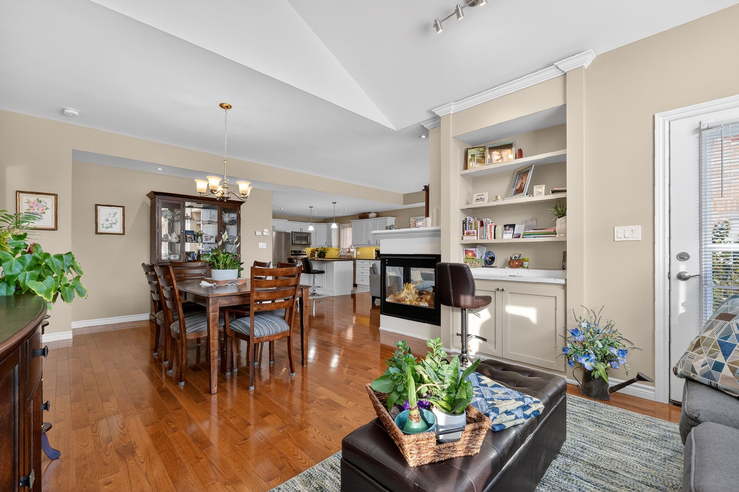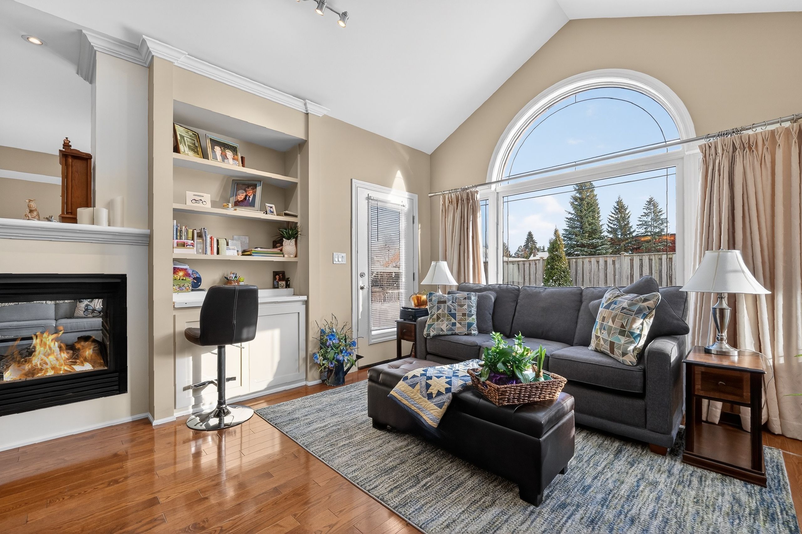 Step into a Masterclass of Visual Harmony! Nestled in an exclusive, architecturally controlled enclave, this 1,600+ sq. ft. bungalow is far more than a home, it is a distinctive statement of quality & captivating design. Imagine the "WOW" factor as you enter an open-concept sanctuary defined by the artistic flair of raised & tray-style ceilings & a spectacular 3-sided gas fireplace, cleverly positioned to cast a warm glow across both the great room & adjoining versatile living space. Natural light is a permanent guest here, invited in by the graceful curve of a sunny, south-facing round-top picture window. Designed for the home chef, the integrated kitchen is an organizational dream featuring a large center island, pantry & beautiful countertops. The principal suite is your private escape, complete with 5pc en-suite & a king-sized walk-in closet. With beautiful hardwood floors, custom built-ins, & a layout that breathes, every inch of this home feels intentional. Space for guests- with 2+2 bedrooms & 3 baths, there is room for everyone... a future dream rec room is already drywalled. Step through one of two bright entrances to your fully fenced backyard brick patio including privacy hedge & electric awning. Bonus: extra large basement windows, mf laundry & oversized 2 car garage. Centrally located, & just a short walk to the Recreation Complex. For those who appreciate uncompromising quality & a sparkling clean, turn-key home, this is your exclusive chance.
