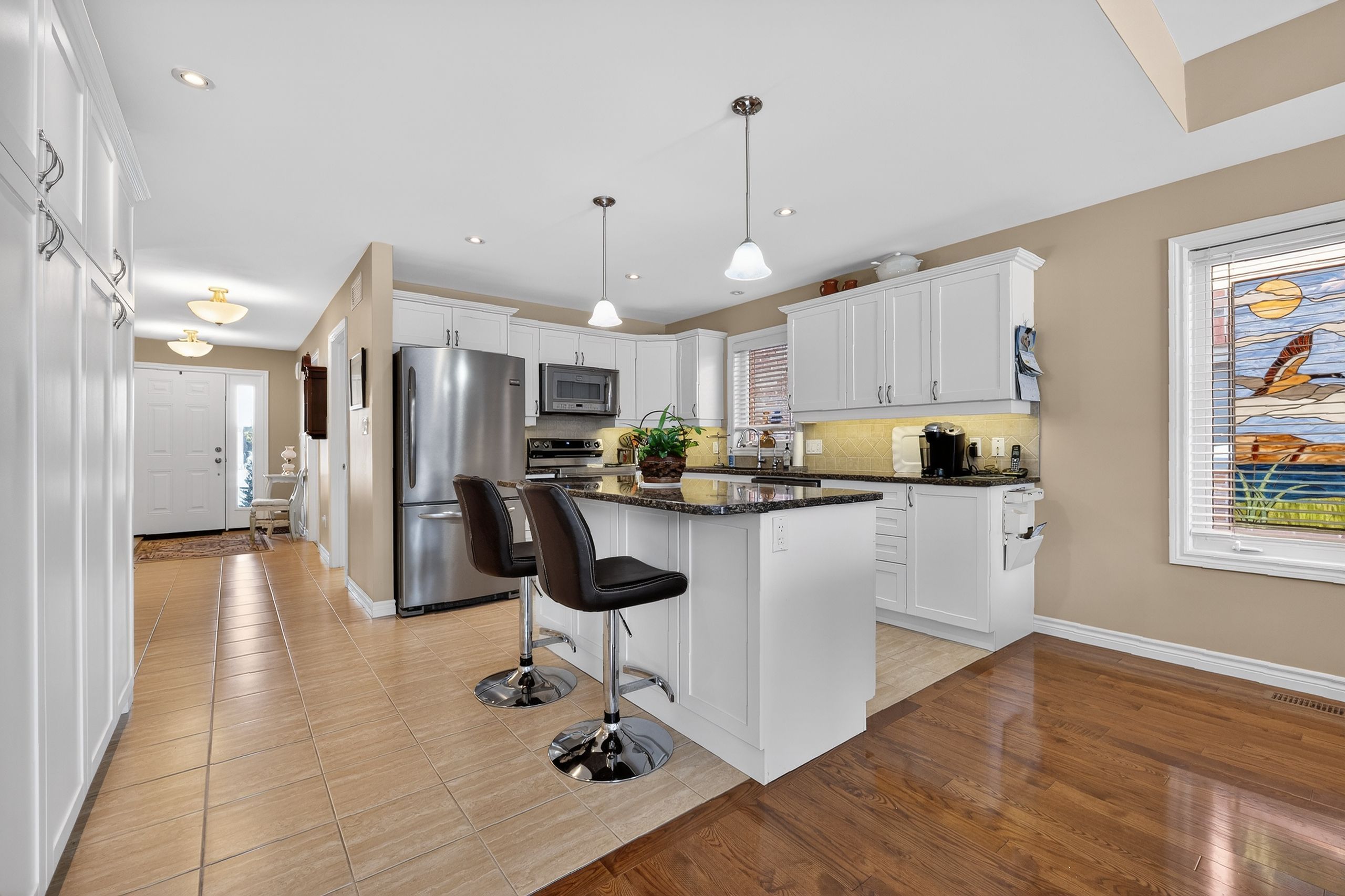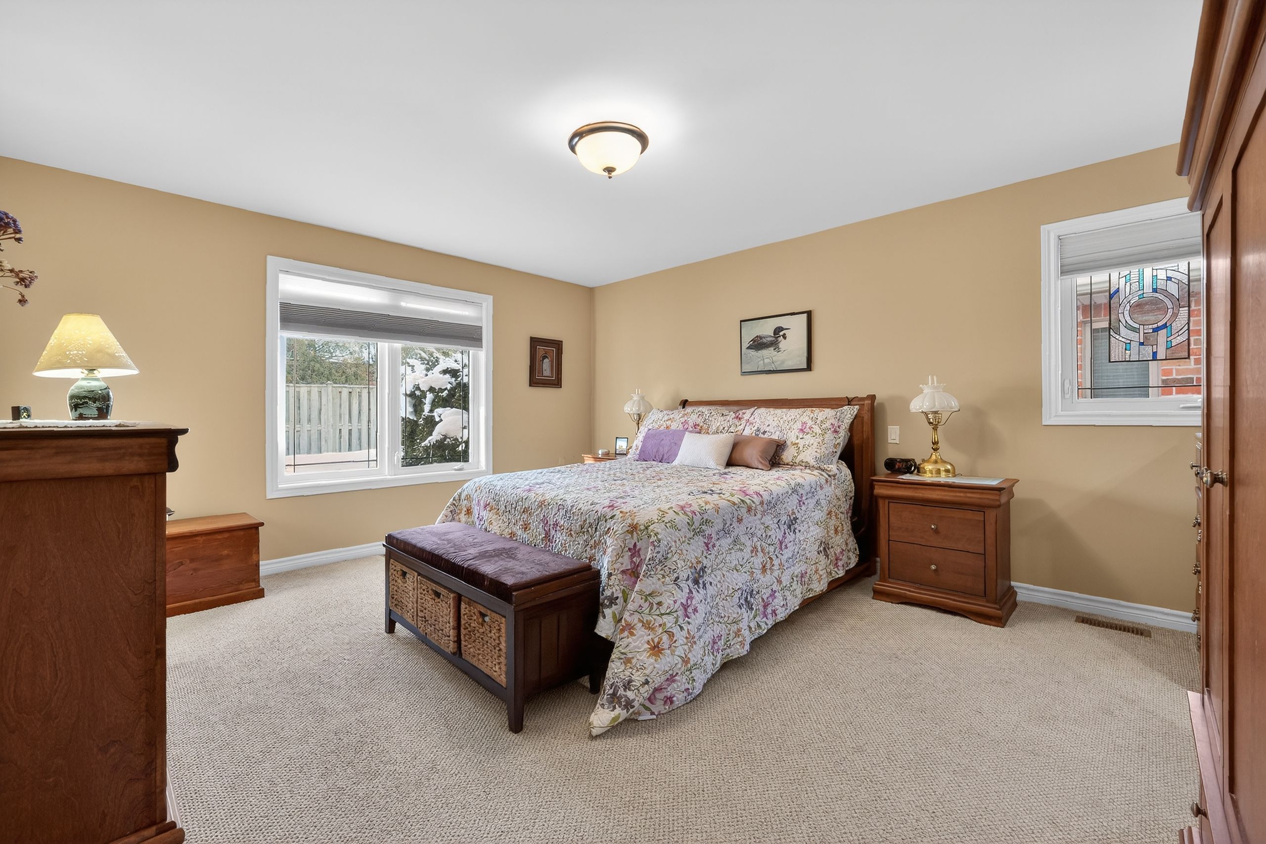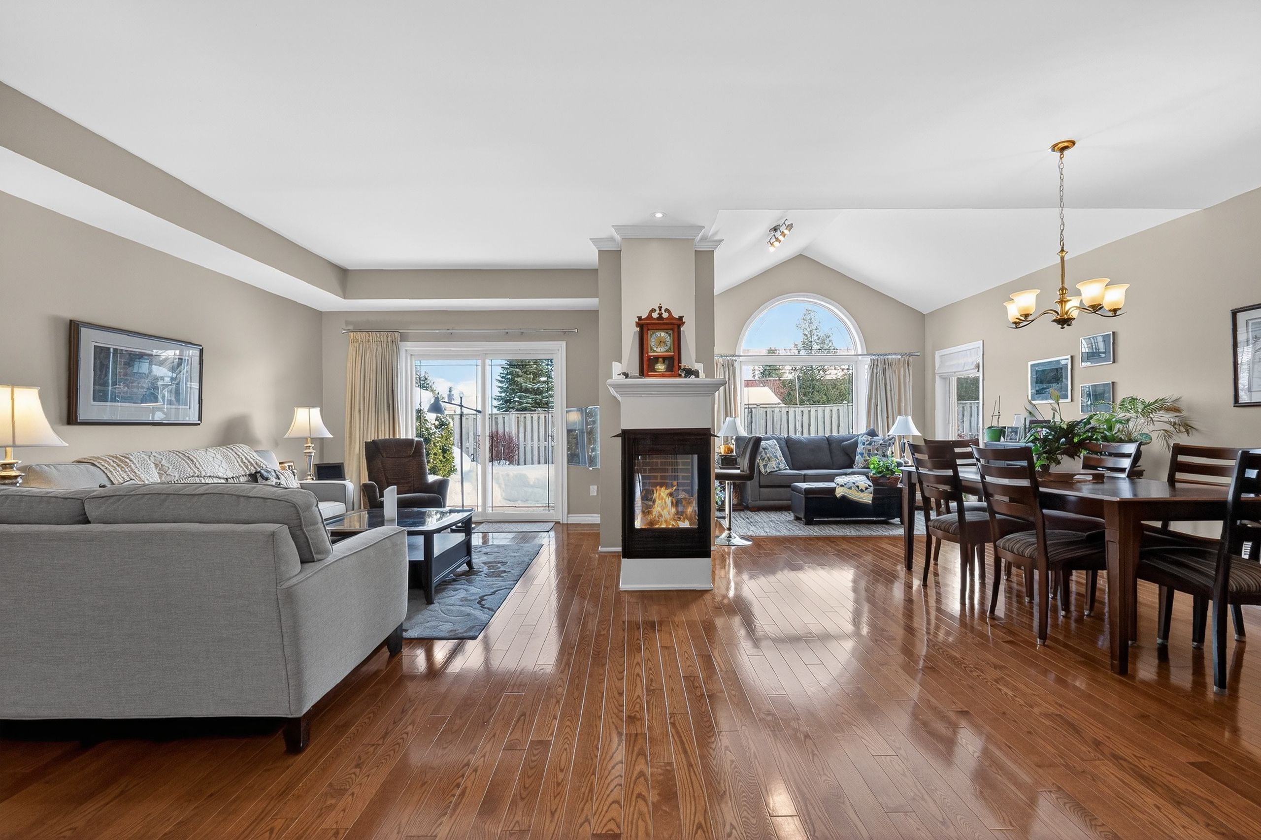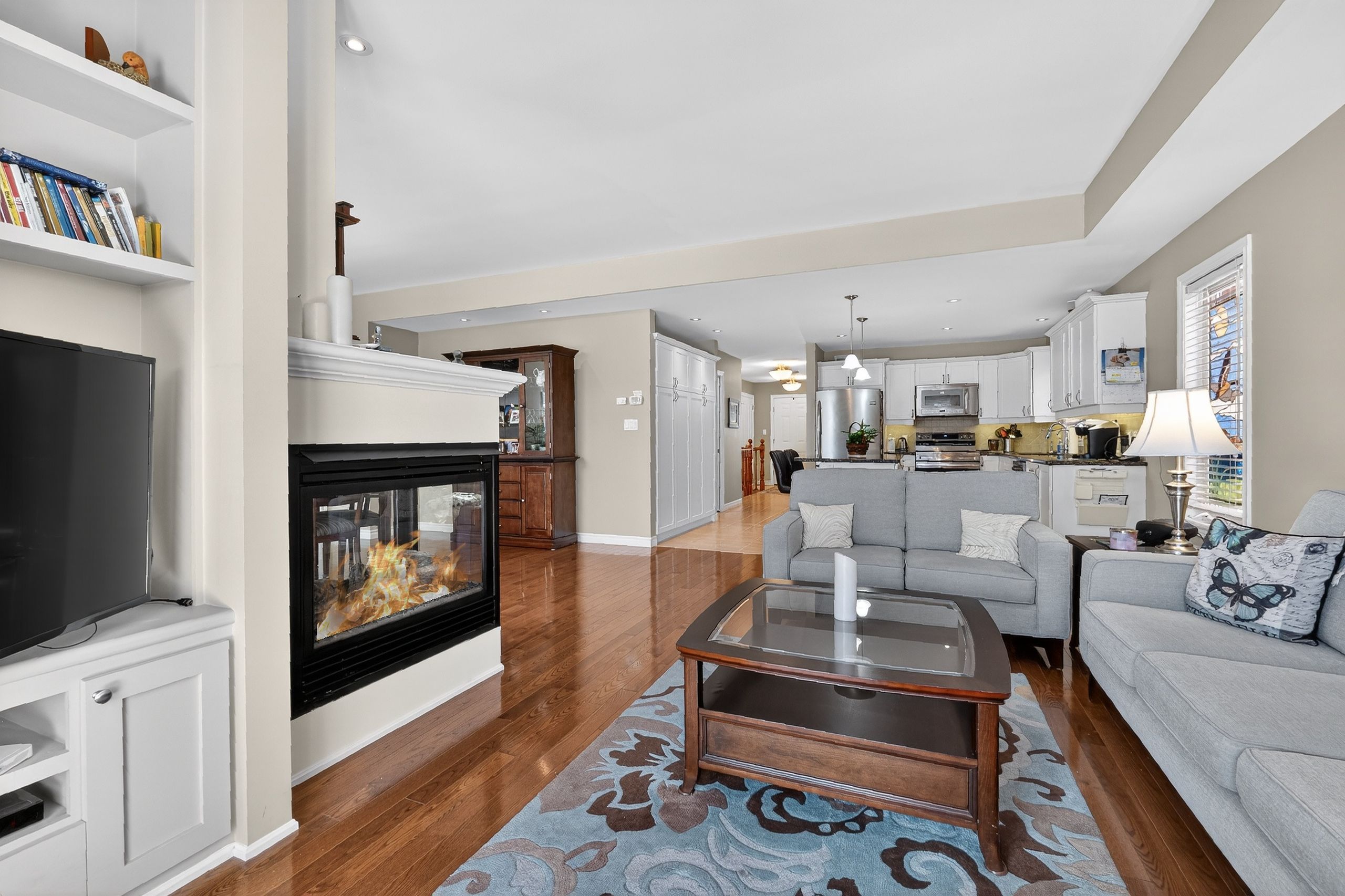 Step into a Masterclass of Visual Harmony! Nestled in an exclusive, architecturally controlled enclave, this 1,600+ sq. ft. bungalow is far more than a home, it is a distinctive statement of quality & captivating design. Imagine the "WOW" factor as you enter an open-concept sanctuary defined by the artistic flair of raised & tray-style ceilings & a spectacular 3-sided gas fireplace, cleverly positioned to cast a warm glow across both the great room & adjoining versatile living space. Natural light is a permanent guest here, invited in by the graceful curve of a sunny, south-facing round-top picture window. Designed for the home chef, the integrated kitchen is an organizational dream featuring a large center island, pantry & beautiful countertops. The principal suite is your private escape, complete with 5pc en-suite & a king-sized walk-in closet. With beautiful hardwood floors, custom built-ins, & a layout that breathes, every inch of this home feels intentional. Space for guests- with 2+2 bedrooms & 3 baths, there is room for everyone... a future dream rec room is already drywalled. Step through one of two bright entrances to your fully fenced backyard brick patio including privacy hedge & electric awning. Bonus: extra large basement windows, mf laundry & oversized 2 car garage. Centrally located, & just a short walk to the Recreation Complex. For those who appreciate uncompromising quality & a sparkling clean, turn-key home, this is your exclusive chance.