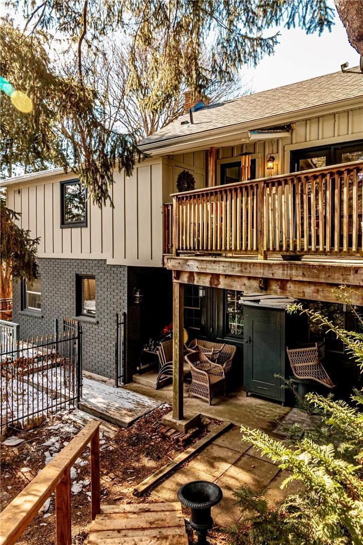 Dundas Dream. This circa 1880 character cottage, located in the heart of the Cross-Melville heritage district, is walkable to everything. Storybook curb appeal with beautiful perennial landscaping is unassuming from street level with a two full stories in the rear. Private "forest" on a 72' double wide lot, featuring a sunken garden and inground, heated saltwater pool surrounded by lush ferns, hostas, peonies, rose buses, hydrangeas and Japanese grasses. This tardis of a home is much larger than it appears with over 2,600 sqft of finished living space. Professionally renovated to the studs in 2023 to reimage the layout and living space. New HVAC, wiring, footings, support beams - everything! Unique reverse bungalow layout with main level living and lower garden level bedrooms, all above grade. 4 beds and 4 baths (2 half). The primary has jack and jill 5-piece bath access and a large WIC. One bedroom has custom built-ins with a closet and desk. The remaining two bedrooms share a WIC in their own "wing." Additional storage via a large custom hallway built-in featuring double closets and a bench with hooks. There's even secret storage under the newly constructed, heritage style, staircase. This home is not to be missed. Loads of charm and character from rustic pine plank floors, salvaged brick floors from the old Grafton building, antique mantel with ornate cast iron insert, beamed ceilings, matching regency chandeliers imported from Chicago, and so much more. Brand new kitchen with quartz countertops, 14ft vaulted ceilings, walk-in pantry with bar sink, and garden doors to a private, forested deck. Main-level family room (easily used as a main level bedroom) has a gas line ready fireplace and access to a beautiful 5-piece bath with full glass shower and standalone tub. Separate area for future built-ins.