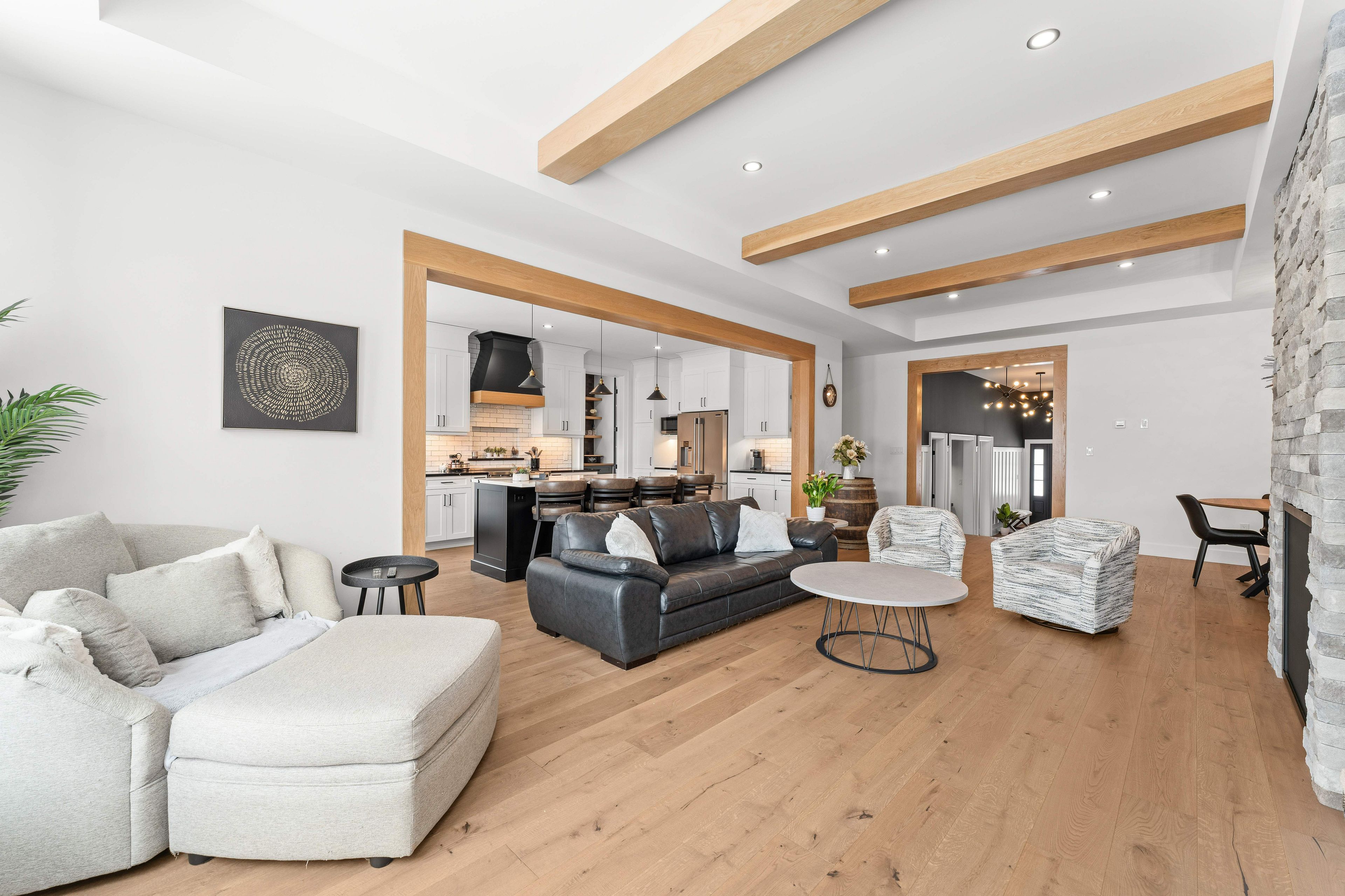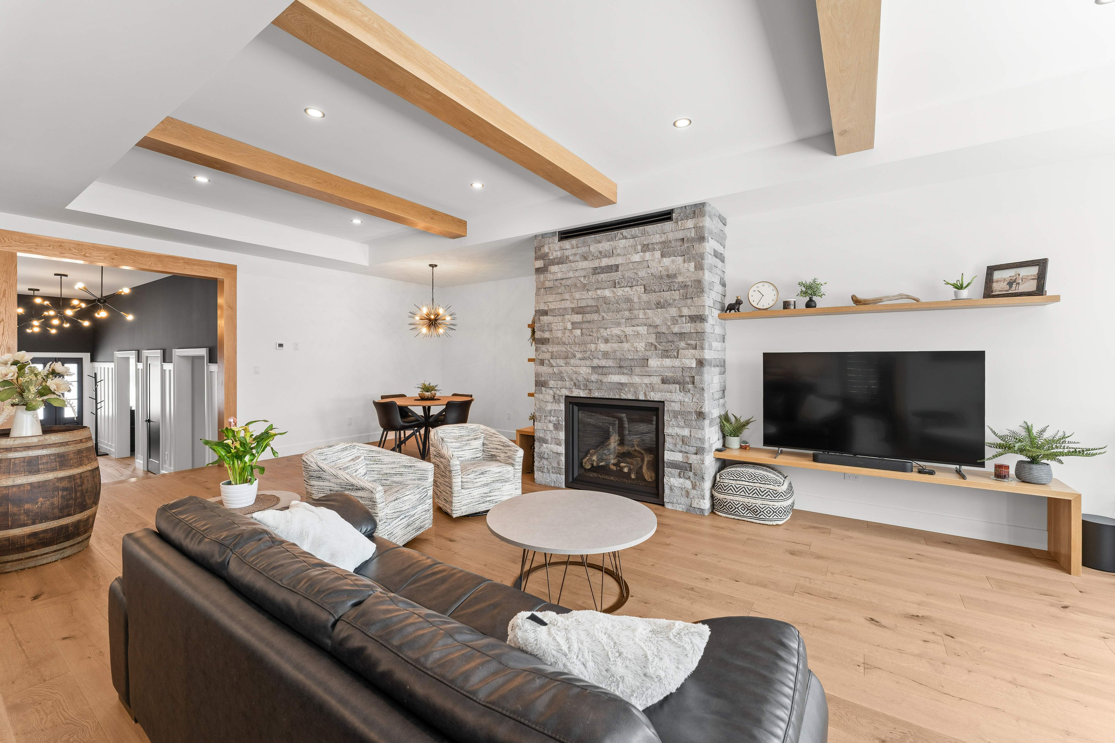 Welcome to 7 Crescent Drive - a stunning, custom-built elevated bungalow in highly sought-after Reddendale. Built in 2023, this home offers over 4,000 sq ft of luxurious living space on a generous 75 ft x 149 ft lot. From the moment you arrive, experience the perfect blend of modern elegance and peaceful outdoor serenity. Step inside to experience exceptional build quality, attention to detail and thoughtful design throughout. The bright, open-concept great room features a cozy gas fireplace and striking wood-beam accents - the true heart of the home. The chef's dream kitchen includes sleek quartz countertops, a massive centre island, custom cabinetry, walk-in pantry, and premium appliances - ideal for family life or stylish entertaining. The luxurious primary suite is a true retreat with a spa-like 5-piece ensuite featuring heated floors, enormous walk-in closet, and a dedicated dressing area. The main level also offers two additional generous bedrooms, a versatile den/office, main-floor laundry, mudroom, full bath, and powder room. Descend the beautiful hardwood staircase to a fully finished lower level with a dedicated home gym, fourth bedroom, full bathroom, ample storage/mechanical space, and a massive games/media room featuring a wet bar - perfect for movie nights, entertaining, or relaxing. Outside, enjoy a private fenced rear yard with a firepit, storage shed, and an outbuilding for expanded outdoor living. Best of all: steps from Lake Ontario, scenic parks, and top-rated schools in one of Kingston's most desirable waterfront communities. This isn't just a house - it's an unparalleled lifestyle.