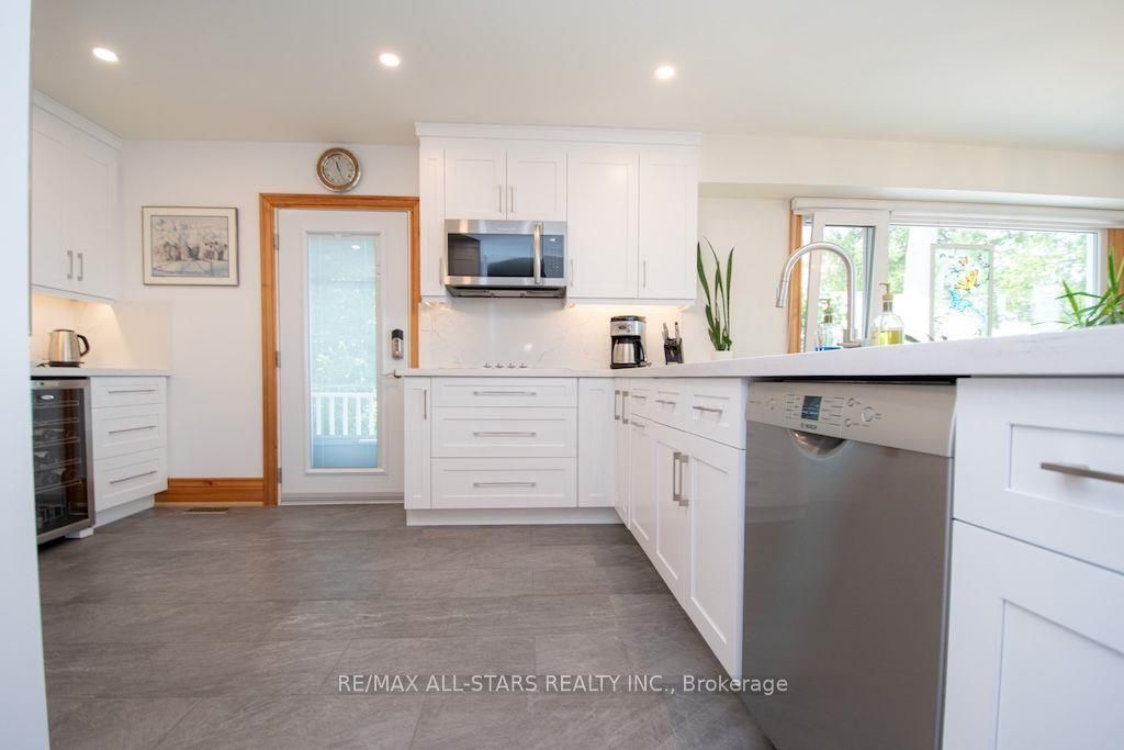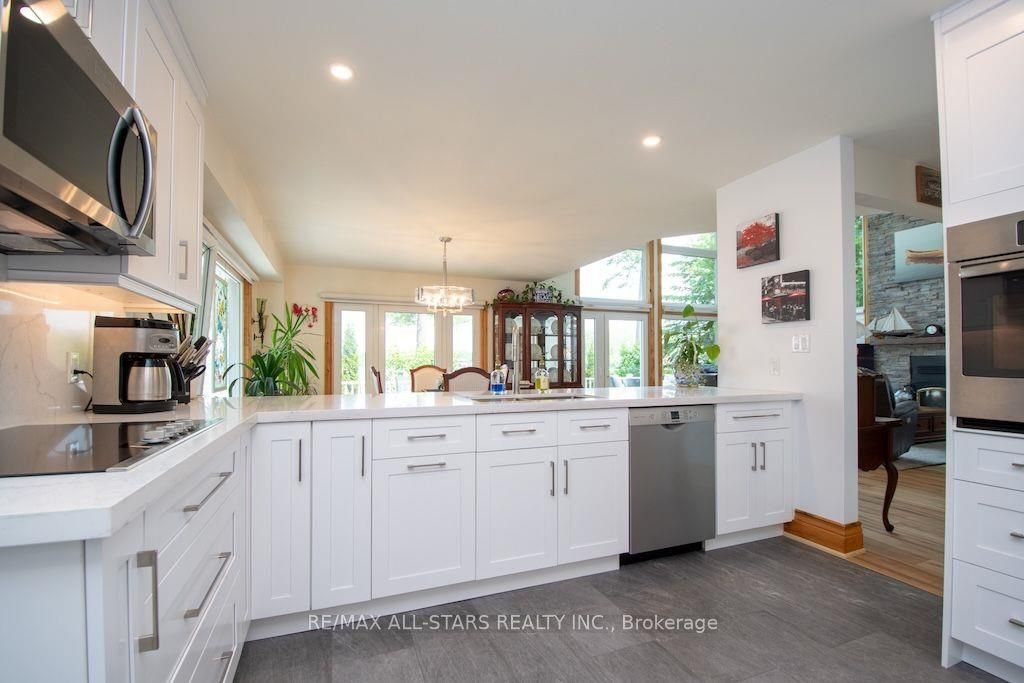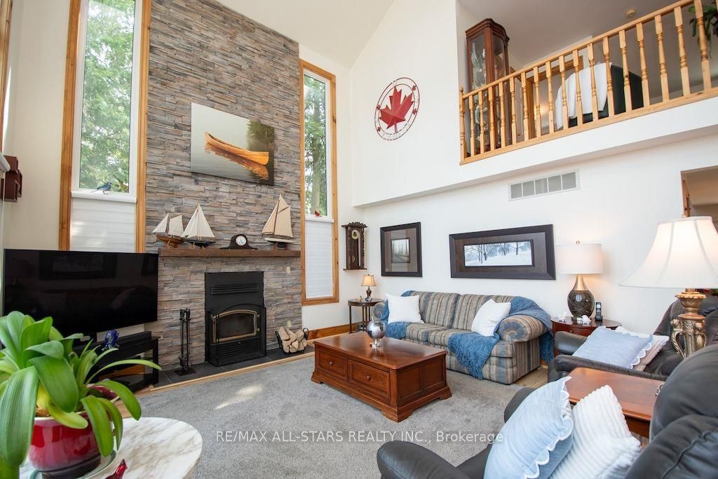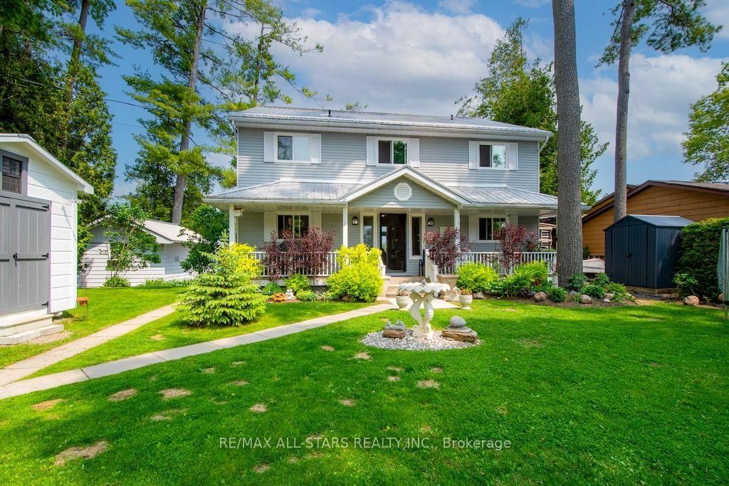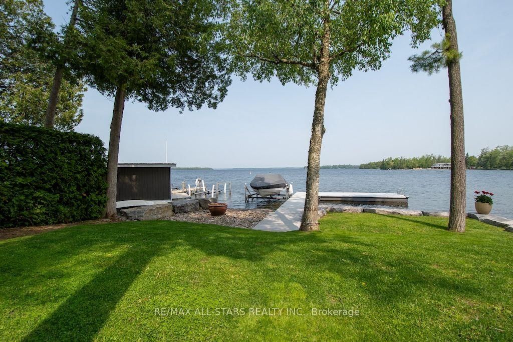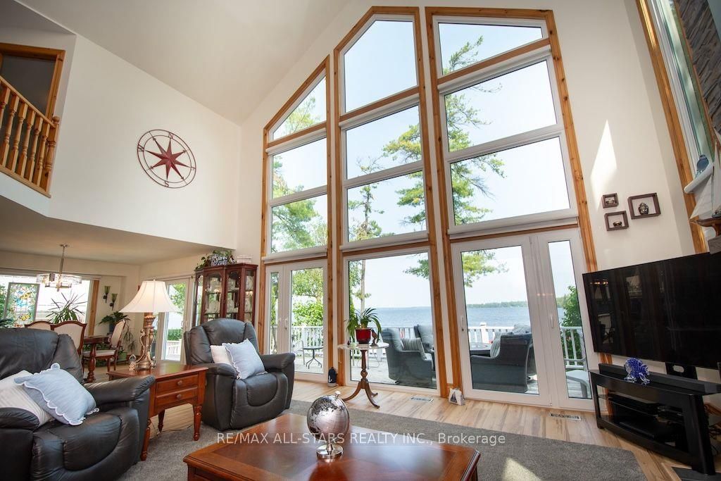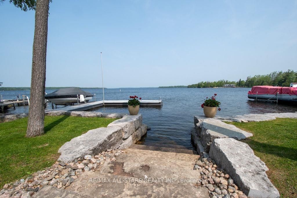 Experience the ultimate in lakefront living on the highly sought-after shores of Balsam Lake. This beautifully updated 5-bedroom, 2.5-bathroom home offers a seamless blend of style, comfort, and breathtaking natural beauty. With desirable western exposure, you'll be treated to spectacular sunsets and sweeping lake views from inside your own home. The dramatic 24-foot cathedral ceilings and impressive floor-to-ceiling windows flood the living space with natural light while perfectly framing the waterfront setting. The newly renovated kitchen is designed to impress, ideal for both everyday living and entertaining. Step outside to multiple expansive decks-perfect for hosting gatherings or unwinding as you take in the serene surroundings. The shoreline is thoughtfully finished with armour stone, a permanent maintenance-free dock, and a hard-bottom waterfront that's ideal for swimming and exceptional boating right from your private backyard. Upstairs, a stunning second-level living area showcases panoramic lake views, creating a true showpiece space. A charming bunkie adds versatility and comfort for guests or extended family, complete with a 2-piece bath, living area, and spacious bedroom. Additional highlights include a two-car garage, a storage shed, and beautifully landscaped grounds. This is a rare chance to own a premier waterfront property in one of the region's most desirable locations. Start living the lakefront lifestyle you've been dreaming of-your opportunity awaits!