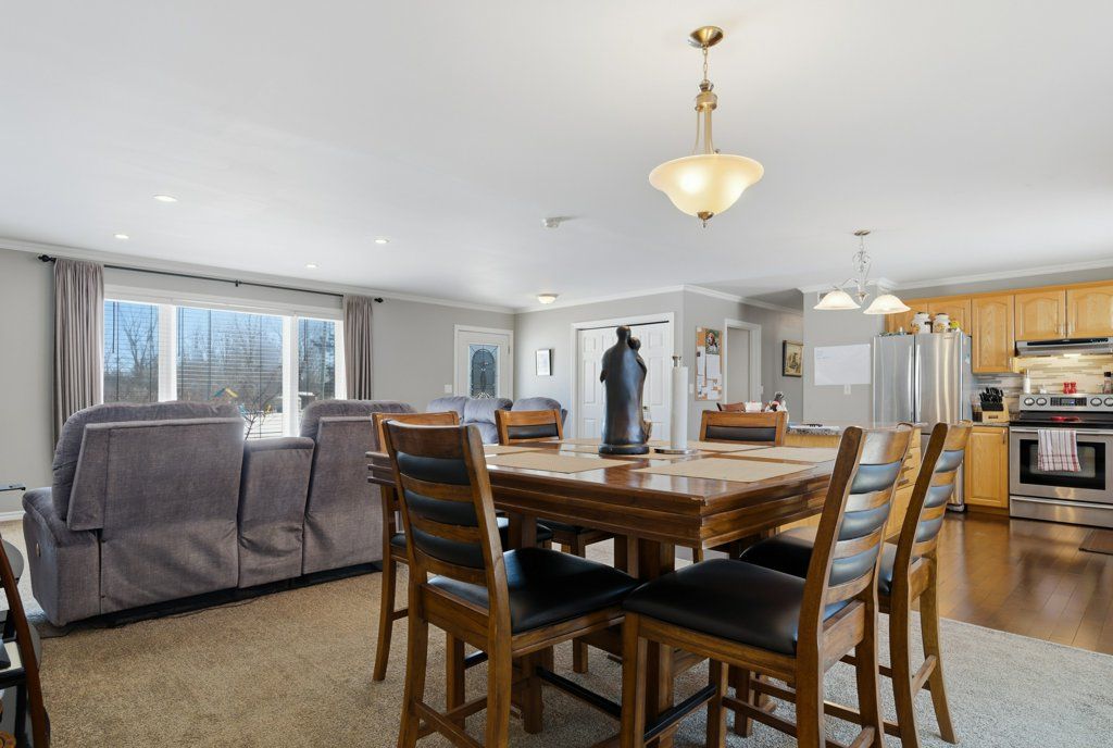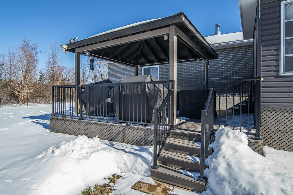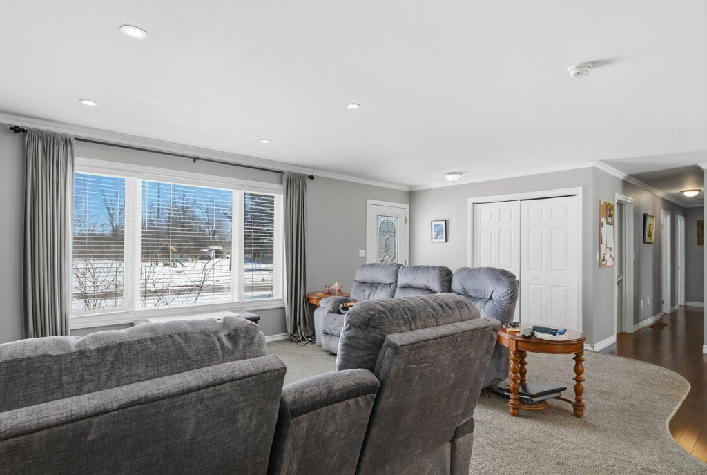 Tucked away at the end of a peaceful, quiet street, this spectacular all-brick 3+2 bedroom, 2.5 bathroom home offers exceptional space and privacy with the rare bonus of an oversized yard that feels like a country property-yet all within town limits. Thoughtfully designed for comfortable family living and entertaining, the home features an inviting open concept layout with hardwood floors throughout the main level, with matching hardwood continuing beneath the carpeted areas. The bright and welcoming main floor flows seamlessly from the living and dining spaces into the kitchen, creating an ideal setting for everyday living. The primary bedroom includes its own ensuite bathroom, while two additional bedrooms provide ample space for family or guests. Downstairs, the fully finished lower level with a convenient walk-up entrance offers incredible flexibility and would lend itself beautifully to an in-law suite, complete with two additional bedrooms and generous living space. Step outside and enjoy the expansive, fully fenced backyard-perfect for children, pets, or hosting summer gatherings. The composite deck provides a low-maintenance outdoor retreat, while the charming sunroom allows you to savour bug-free evenings by the warmth of the propane fireplace on cooler nights. A separate storage building offers practical space for tools and equipment, and the included riding lawnmower makes maintaining this impressive yard a breeze. Additional highlights include a double car attached garage with inside entry, new shingles installed in 2025, and a new water heater in 2025 for added peace of mind. Ideally located close to the local golf course and the waterfront trail, this outstanding home combines space, comfort, and convenience in a truly desirable setting.