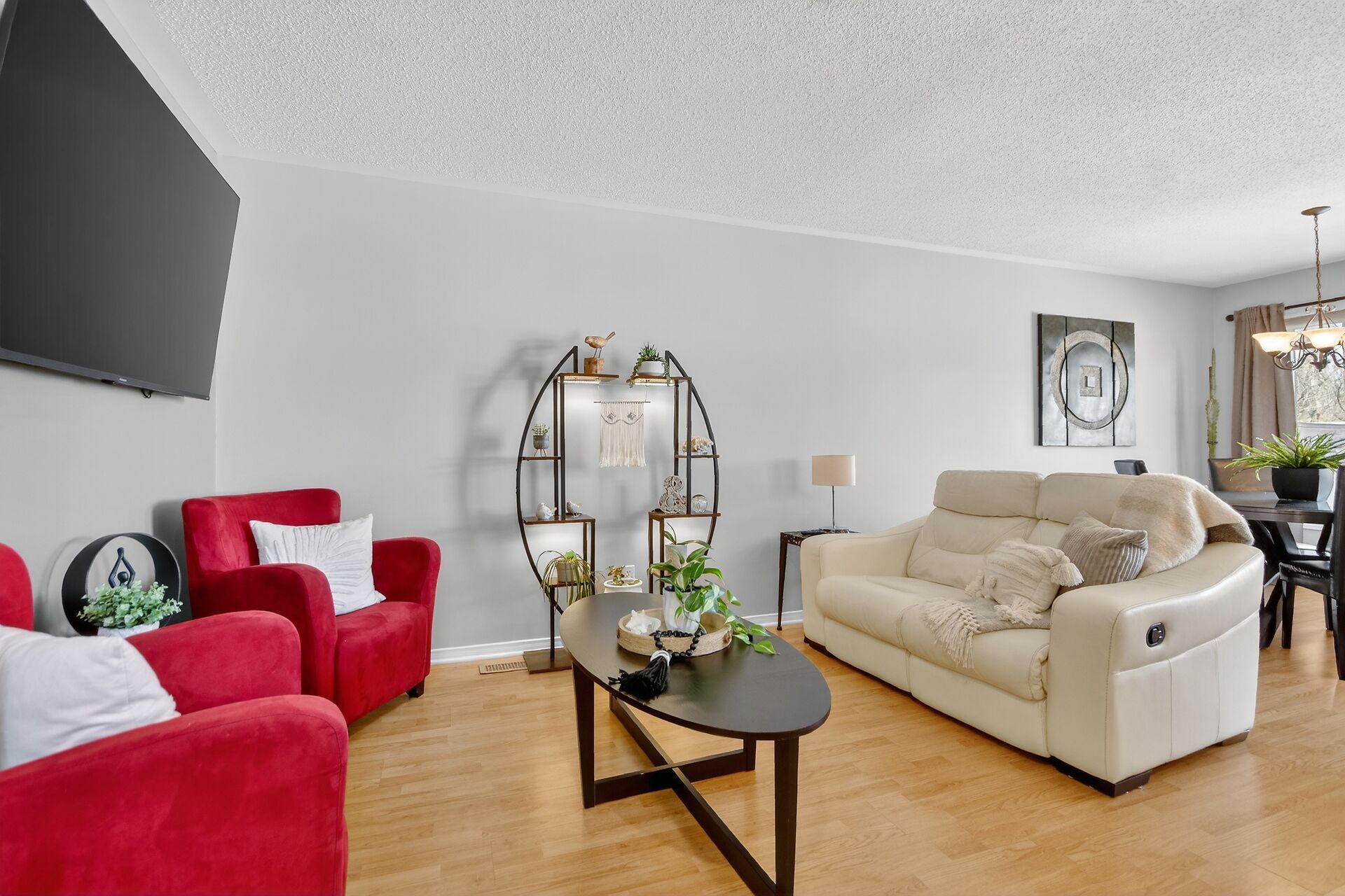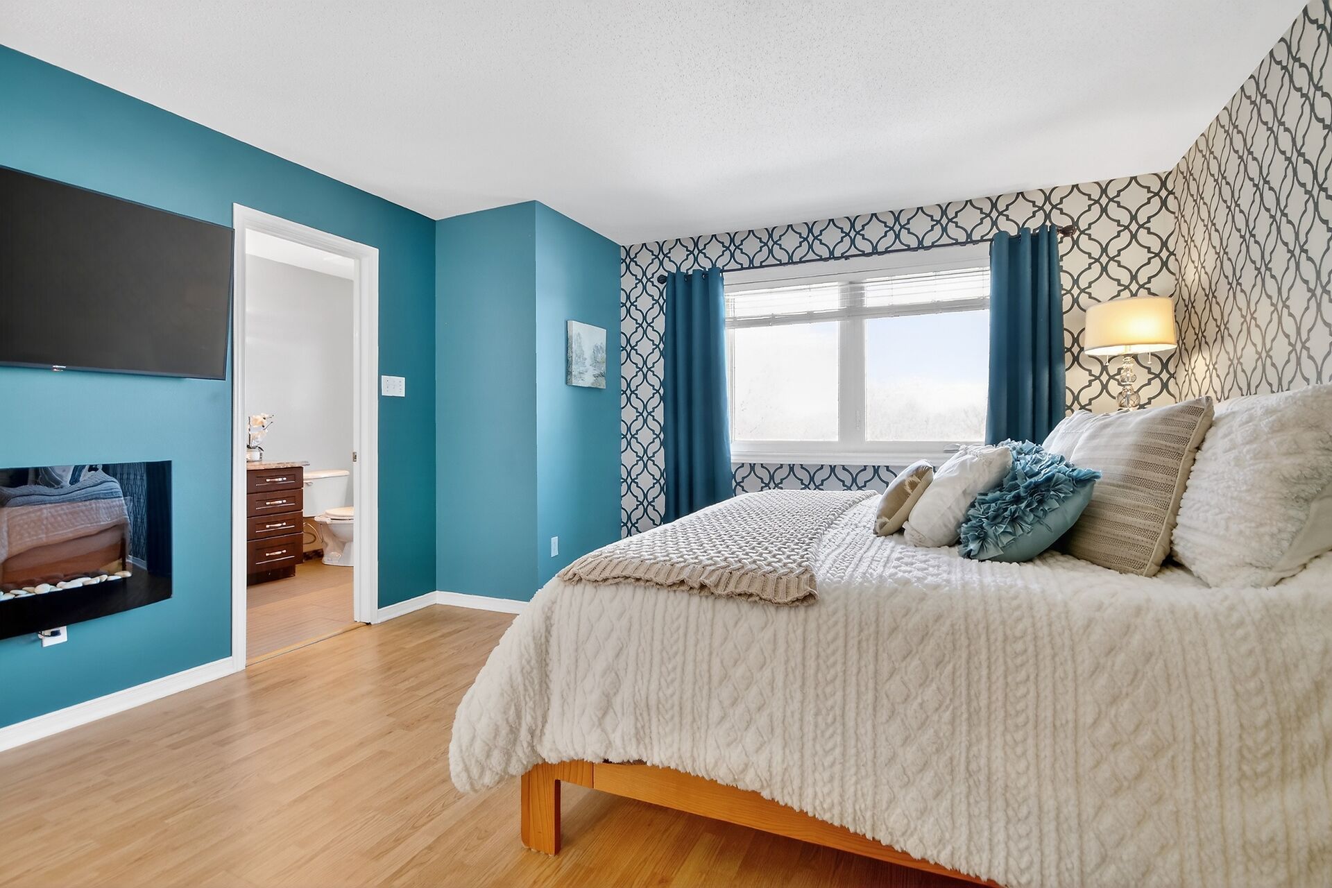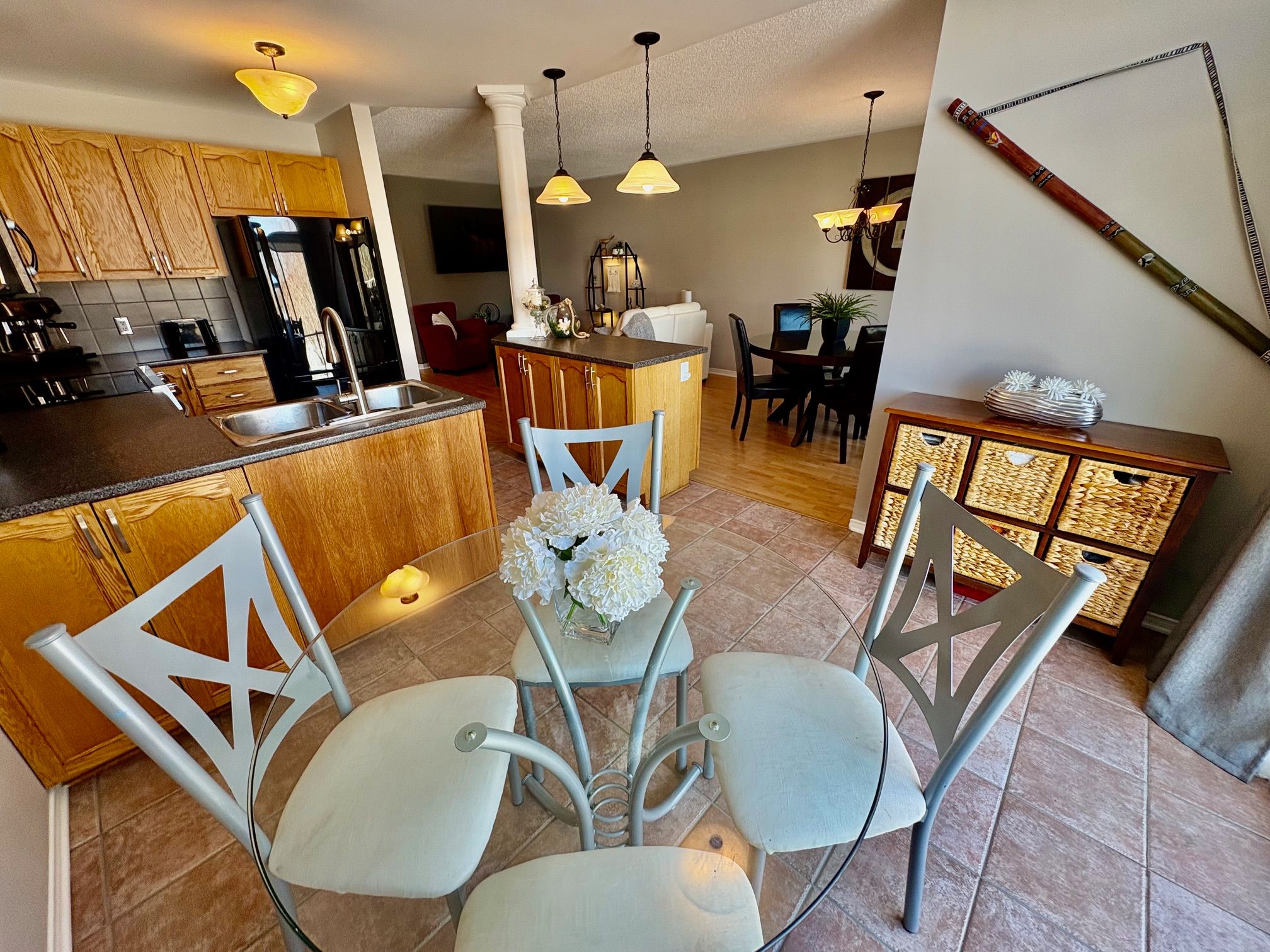 Open house 2-4 March 8th. Welcome to this beautiful semi detached home situated on a desirable pie shaped style lot in the lovely community of Chapel Hill North. You will be introduced by a sizable front foyer overlooking a stunning circular staircase with a lovely large window. This wonderful well maintained home showcases a lot of natural light. The open concept main level features a generous size lining/dining room, a breakfast area with partial vaulted ceiling and a functional kitchen with peninsula counter space in addition to a spacious island, double sink, and built-in microwave oven hood fan combo, all of which provide views of the backyard. Leading to the upper level you will be delighted by the spacious primary bedroom providing a walkin closet, electric fireplace and a convenient ensuite bathroom with separate shower and soaker tub. There are two sizable secondary bedrooms with double closets, a functional shared bathroom and a linen closet to complete the second level. Have fun and host your guests in the finished basement family room featuring a gas fireplace and good size window. There is plenty of storage space for all your personal needs, a practical laundry tub and no carpet to allow for easy maintenance. The backyard has a cedar deck & fence, perfect to entertain your family and friends including a hot tub. The Minto home plan indicates a total size of 1867 SQFT. Central air conditioning, practical interior garage access from the front foyer, garage door opener and 2 exterior parking spots for a total of 3 parking. You will appreciate that this home is surrounded by so many amenities such as shopping, transit, schools, parks, sport facilities and so much more. Take a moment to review the link for the panorama videos and additional pictures. As well as reading the multiple upgrades & special features list attached. Enjoy this nicely presented and move in ready home for your family to create new memories.