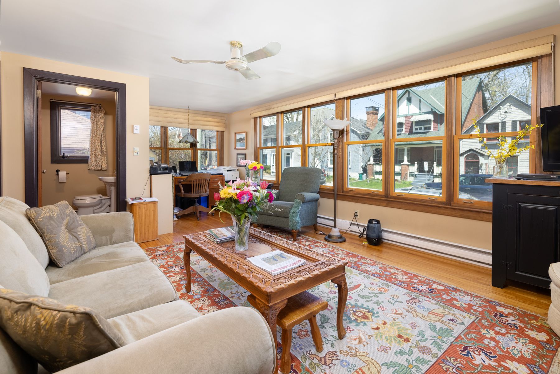 Stunning Family Home in the Heart of Sydenham Ward. This charming home, built in 1934, offers over 3,000 square feet of living space and is perfectly located within walking distance of downtown, City Park, the hospitals, live theatre, and the waterfront. Enjoy the convenience of city living, or unwind in the privacy of your own 20x19 composite deck, surrounded by privacy fencing. The main floor welcomes you with a spacious foyer that leads to generously sized principal rooms, including a cozy living room with a gas fireplace. The kitchen features heated tiled floors, adding an extra touch of comfort. A beautiful family room with large windows overlooking Gore Street provides plenty of natural light, and a convenient two-piece bath completes the main level. Upstairs, you'll find three bedrooms and a den. The second-floor bathroom is equipped with heated floors for added luxury. The principal bedroom, located on the third floor, is a true retreat, complete with its own ensuite bath for ultimate privacy. The fully finished basement offers additional living space, including a rec room, laundry area, and another two-piece bath. With a double detached garage and a stamped concrete driveway, this home blends historic charm with modern amenities, offering a truly unique property in one of the most desirable locations. Currently a family home but easy conversion to high end student home with 7/8+ bedrooms. See modified floor plan last picture.