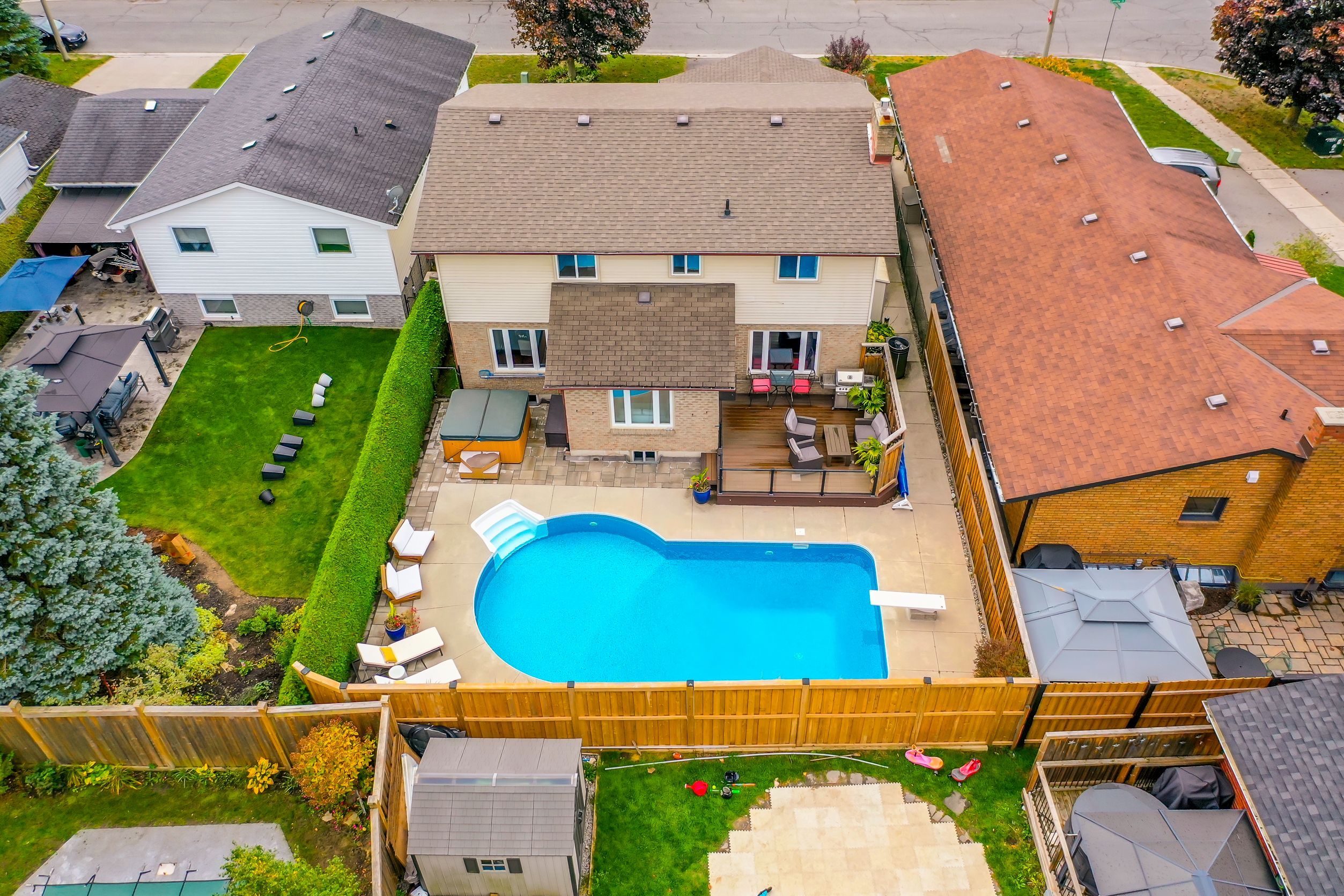 Located in the highly desirable University Heights neighbourhood, this beautifully maintained 4 bedroom, 4 bathroom home offers the perfect balance of space, comfort, and exceptional outdoor living. Just minutes from Trent University, the Peterborough Zoo, parks, trails, and excellent schools, this location is ideal for families looking to enjoy one of the city's most sought-after north-end communities. Designed with entertaining in mind, the open concept main floor seamlessly connects the living room, dining room, and family room complete with gas fireplace to an impressive kitchen centered around a large island. From the kitchen, enjoy views of the beautifully landscaped backyard oasis and step outside to your private retreat featuring an inground pool, hot tub, and deck, the ultimate setting for summer gatherings and relaxed evenings with family and friends. The main level also features an updated laundry room, convenient powder room, and direct access from the double car garage. Upstairs you'll find four spacious bedrooms, including a generous primary suite complete with a walk-in closet and private ensuite. A second full bathroom comfortably serves the remaining three bedrooms. The fully finished basement is ideal for growing families, teens, or extended family living. A large den with modern gas fireplace and entertaining bar creates the perfect hangout space. Two additional rooms offer flexibility for guest sleeping, a home office, or gym, while a full bathroom across from the larger room creates excellent potential for a teen or in-law retreat. Storage space and a cold cellar complete the lower level. This home has been pre-inspected for peace of mind. Finished from top to bottom and completely move-in ready, this exceptional home and backyard set the scene for making unforgettable summer memories.