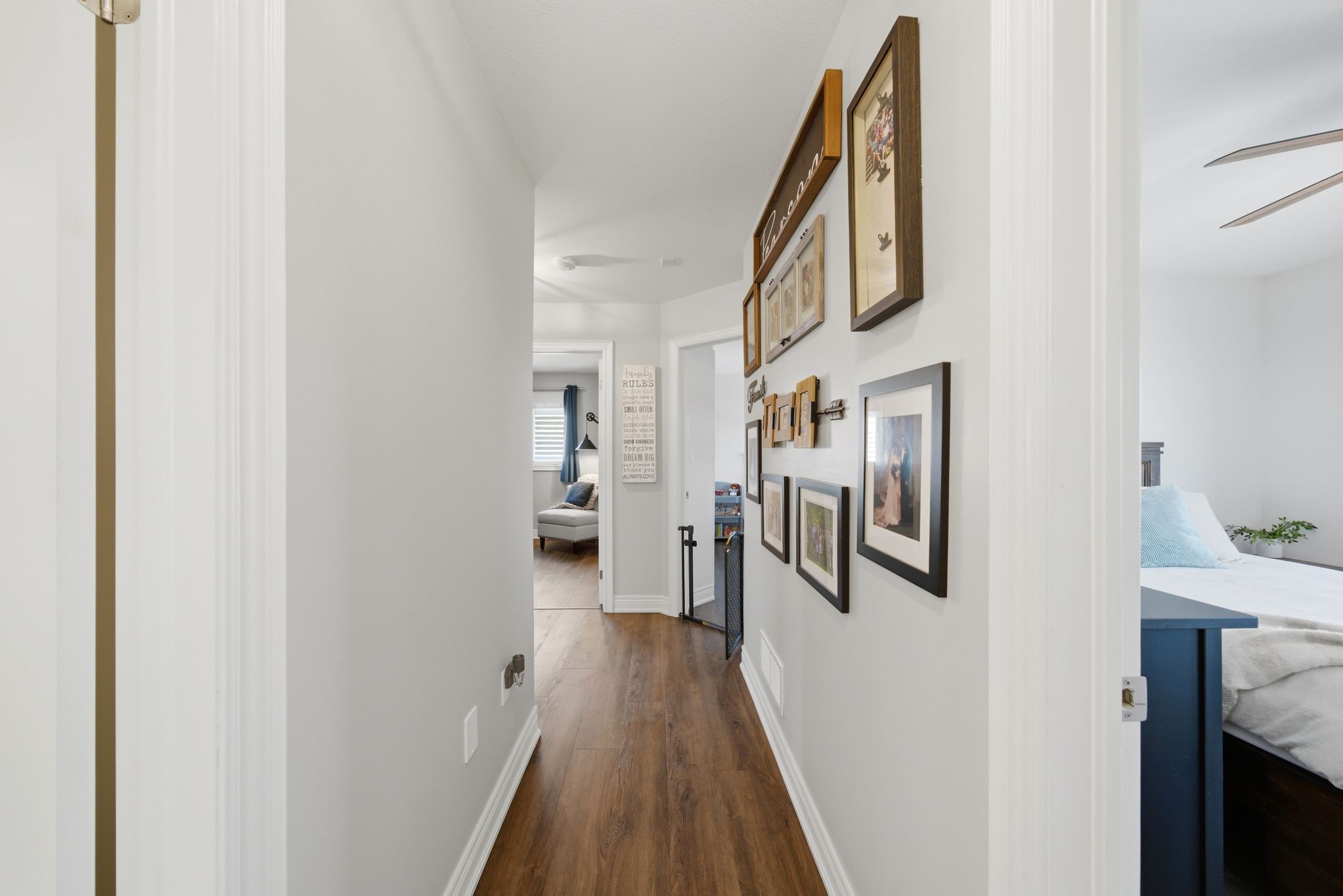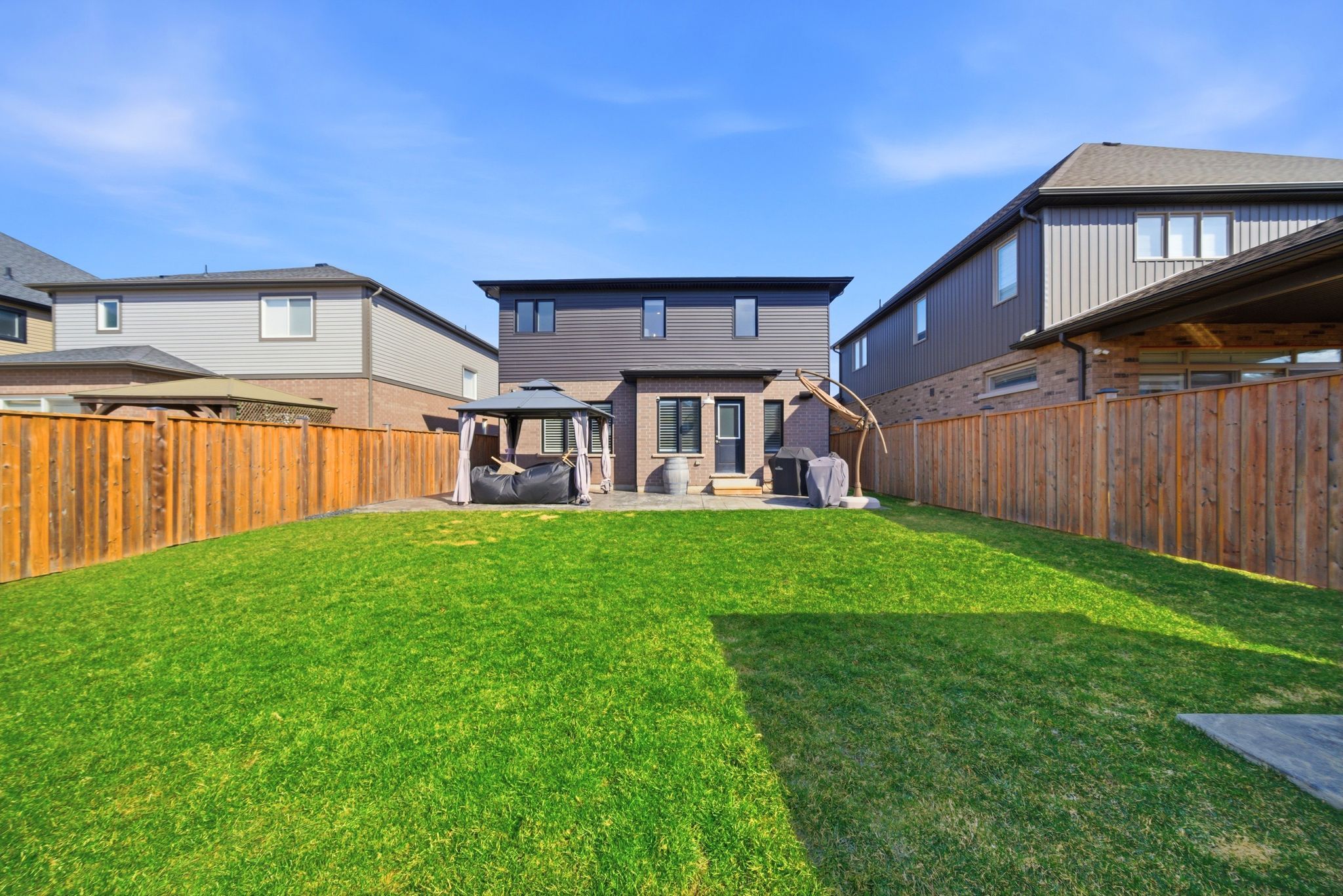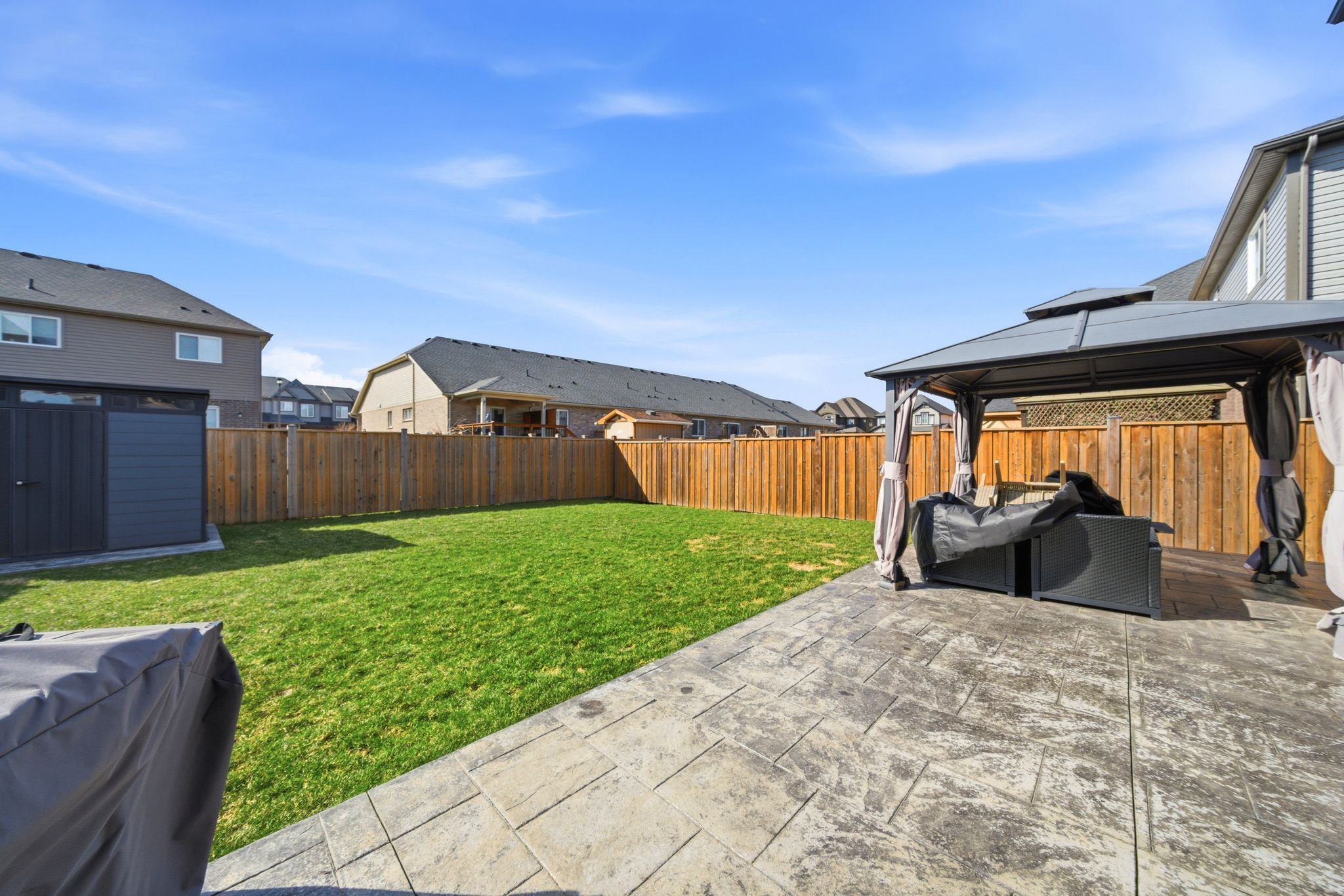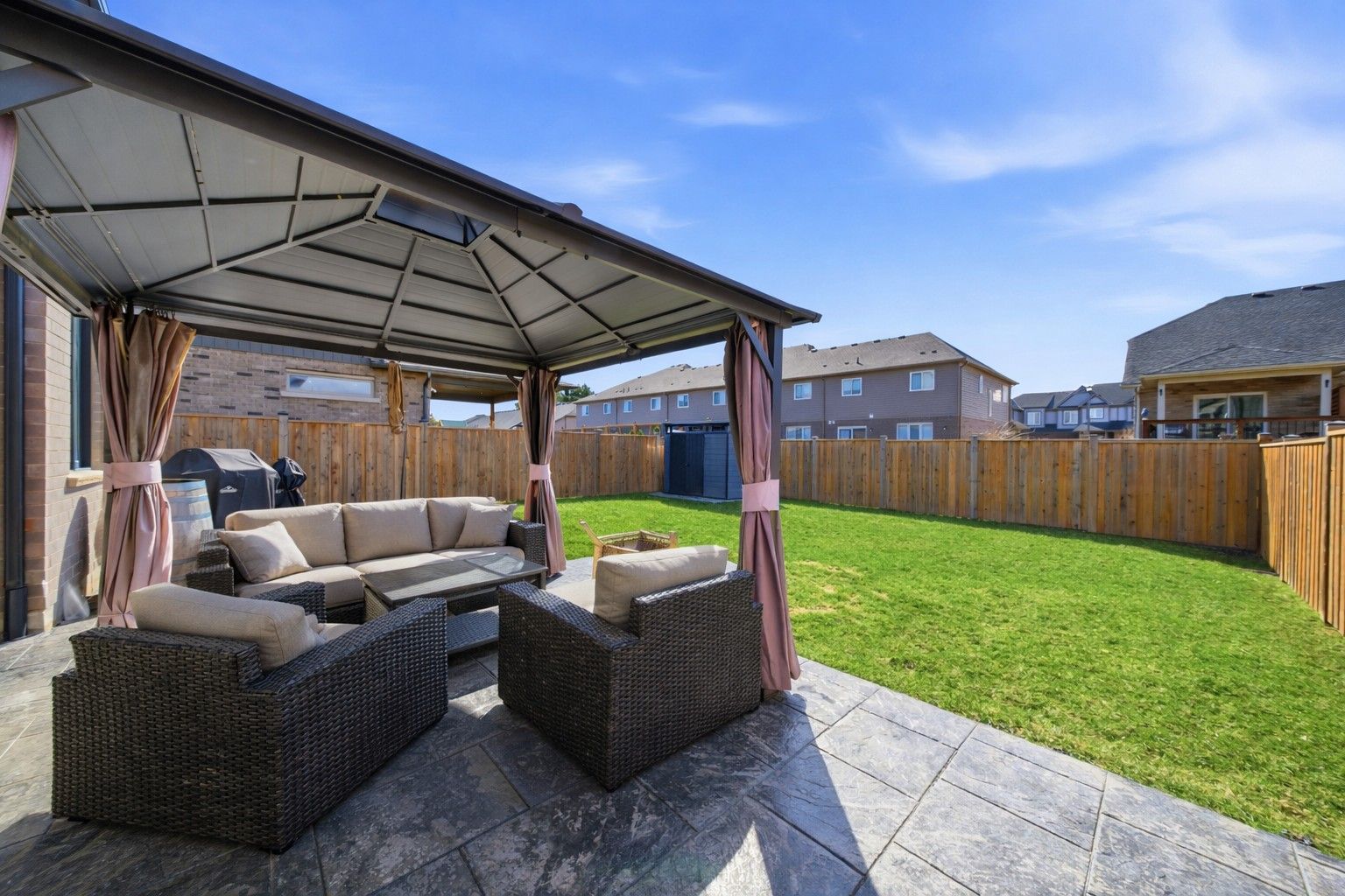 Exquisitely built in 2020, this beautifully upgraded residence is nestled in the prestigious, family-oriented Saffron Estates community of Fonthill. Offering approx.1,869 sq. ft. of elegant above-grade living space plus an approx. 782 sq. ft. unfinished basement, this 4-bedroom, 3-bath home showcases thoughtful design and exceptional craftsmanship throughout. The open-concept main floor features 9' ceilings, engineered hardwood flooring, integrated ceiling speakers, and a stunning stone-clad natural gas fireplace with a custom hearth and antique wood mantel insert, framed by bespoke cabinetry with quartz countertops. The refined kitchen is highlighted by an oversized quartz island, custom coffee and wine bar, tile flooring, and seamless access to the backyard. The primary suite is a true retreat with his and hers walk-in closets and a spa-inspired 5-piece ensuite featuring double sinks, a glass shower, and a freestanding soaker tub. A rare second-floor laundry adds everyday convenience. Fully wired for Google Home, the home includes an alarm system, surge-protected electrical panel, sump pump tied to the alarm, gas hookups for BBQ and garage, and a 40-amp garage sub-panel. Exterior features include soffit pot lights, stamped concrete driveway, walkways and patio(reinforced for hot tub), gazebo, fully fenced yard, and shed on a concrete pad. Ideally located near parks, trails, Meridian Community Centre, and the charm of downtown Fonthill, this is refined Niagara living at its finest.