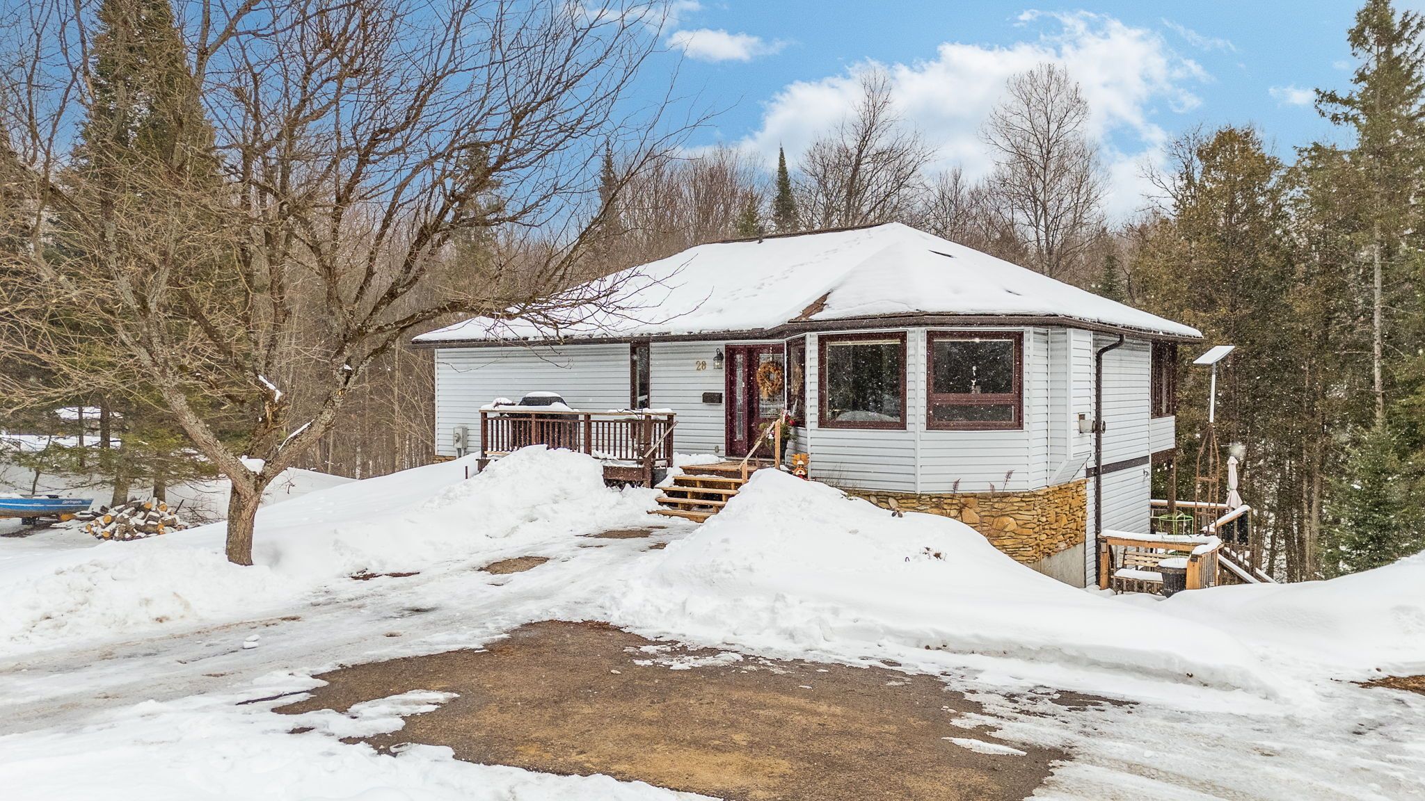 Welcome to 28 Independence Street, a beautiful home on the peaceful outskirts of Haliburton. This incredible package includes the main residence plus the adjacent separately deeded vacant lot at 16 Independence Street. Keep the heavily treed lot as a privacy buffer, or explore the potential to build or sell! Boasting a paved driveway, detached garage, and inviting front deck, this property offers a serene forest backdrop. Spanning roughly 1,450 sq ft, the classic main floor perfectly separates the living and sleeping quarters. Elegant hardwood floors and large windows highlight the bright living room, formal dining area, and beautiful kitchen featuring granite countertops and a cozy breakfast nook. This space extends into a wonderful 3 season sun room. Tucked at the opposite end are three generous bedrooms and two full baths, including a spacious primary suite with a walk in closet and private 3 piece ensuite. The 1,265 sq ft walkout basement completely elevates this property. One half features a spacious rec room with a cozy propane fireplace, bar area, and laundry room. The other half is a dedicated one bedroom, one bathroom in law suite. With access from the rec room or its own private exterior door, it is the perfect setup for extended family or rental income. Step out from the lower level to a large back deck overlooking the forest. Enjoy the balance of privacy and convenience with a drilled well and septic. You are just a 1 minute drive or 5 minute walk to the heart of Haliburton and all amenities, including grocery stores, restaurants, shops, and the hospital. Set right in the hub of the area's stunning lakes and outdoor recreation, this property offers an unparalleled lifestyle and investment. Do not miss this rare dual lot opportunity!