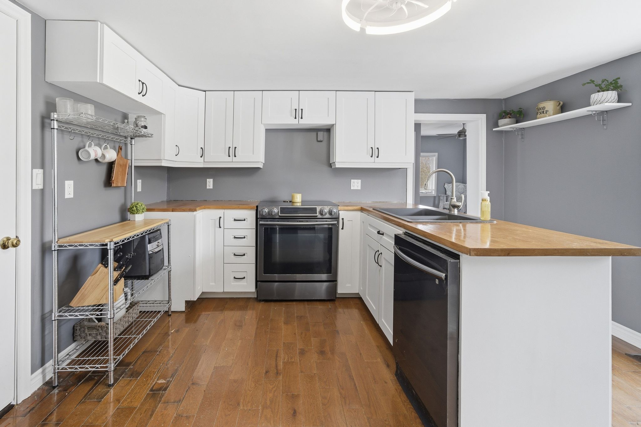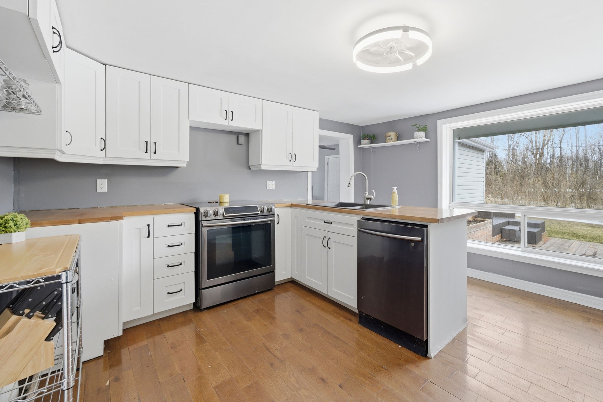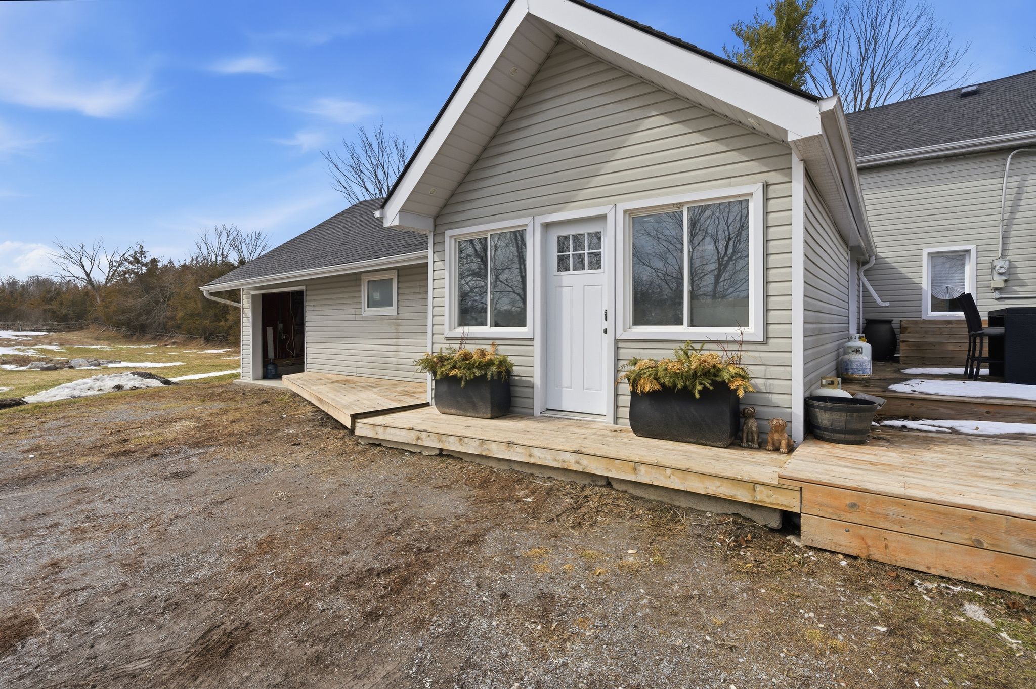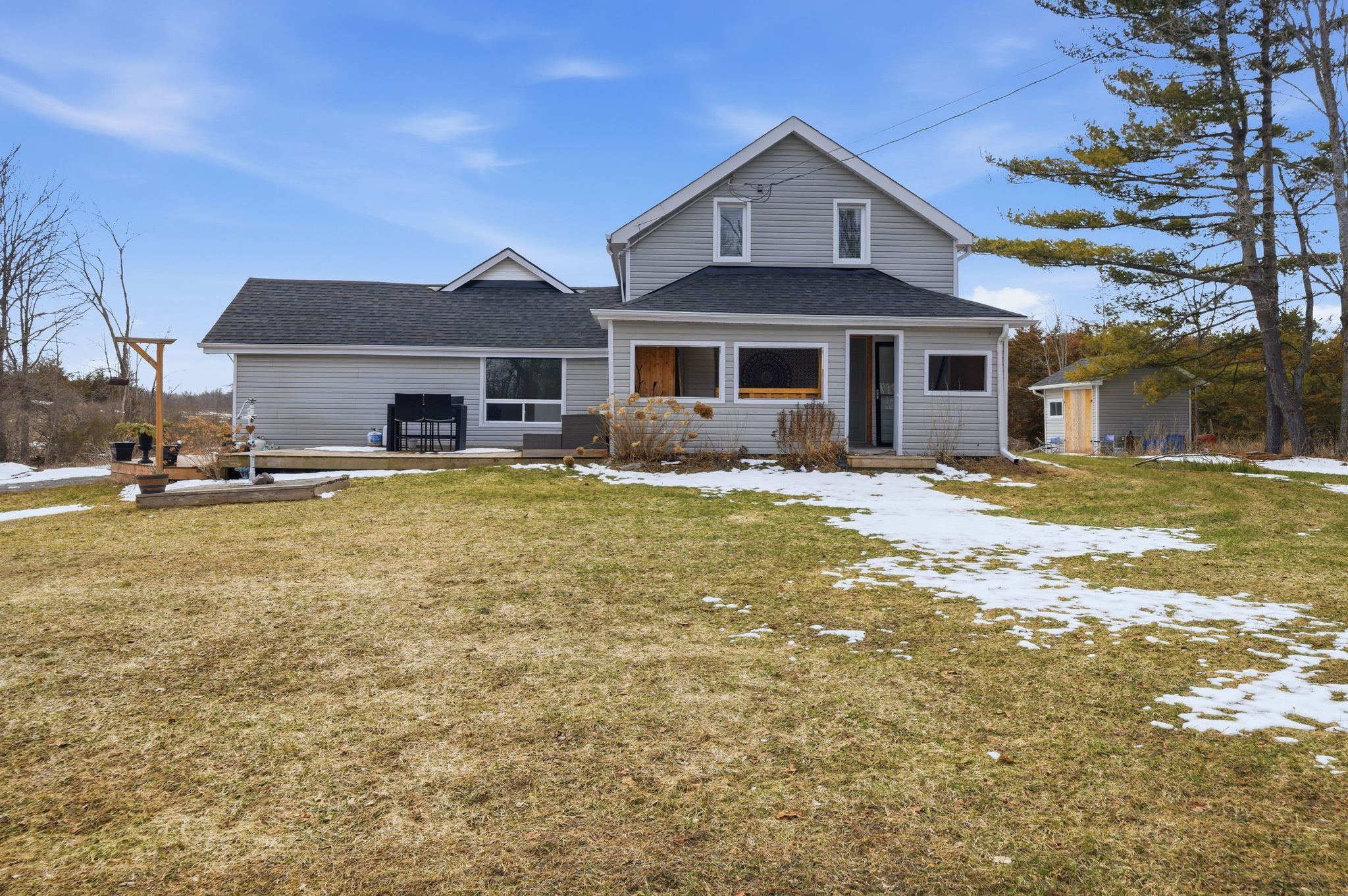 At the crossroads of opportunity & potential lies endless possibilities @ 1957 Read Road. Nestled in from the paved municipal road on 1.3 picturesque acres resides this 1.5 storey home, surrounded by stunning rural views and open space to roam. New front door to the window lined mudroom with two closets & trending octagon patterned linoleum flooring + tongue & groove pine ceiling feature provides a functional entry. Step in to the updated kitchen with clean white cabinetry and complimenting butcher block countertops. This bright space also offers an eat-in option if desired. The hardwood flooring continues into the living area. Main floor bedroom here plus spacious 3 piece bathroom with relaxing freestanding soaking tub. Up the stairs is home to the primary suite with generously sized bedroom area, bonus en-suite with glass and tile step in shower, updated vanity, porcelain flooring & great wall storage. The perks continue into the massive walk-in closet with window & custom shelving. This provides an ideal nursery option as well, if needed. Many exterior offerings include the enclosed front porch. Watch the sunrise on the newer east facing deck or the sun set beyond the backyard fire pit area. The attached single garage & connecting 260 sq ft area to home is currently mid renovation & welcomes you to finish to suit your need, taste & vision. The majority of vinyl siding is complete & remainder is included in this sale to assist with your exterior finishing touches. Located within minutes to St. Mary's elementary school & 10 minutes to Shannonville Road with direct access to highway 401, while tucked away in your own peaceful slice of beautiful Tyendinaga Township. Join us for an open house, Saturday March 28th, 1:30-2:30pm.