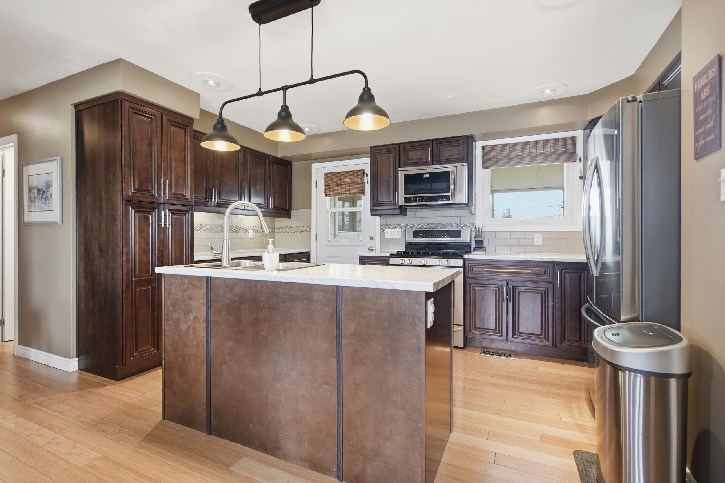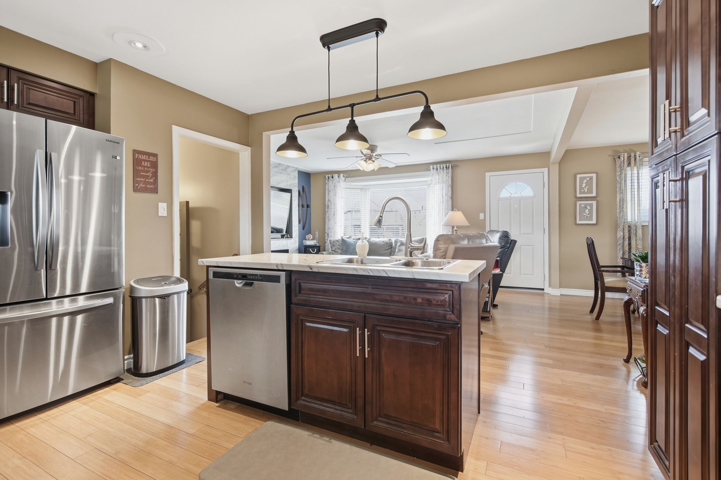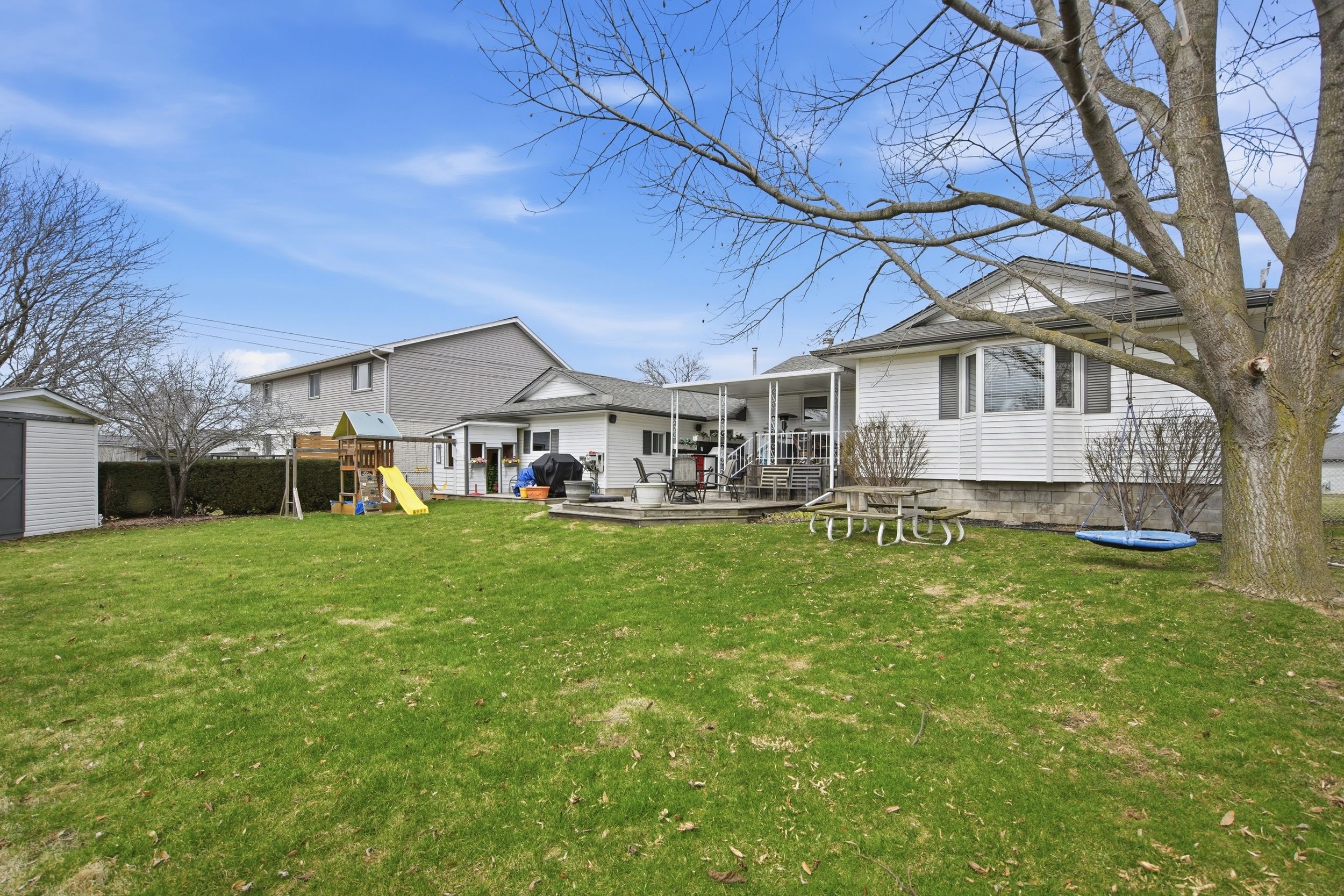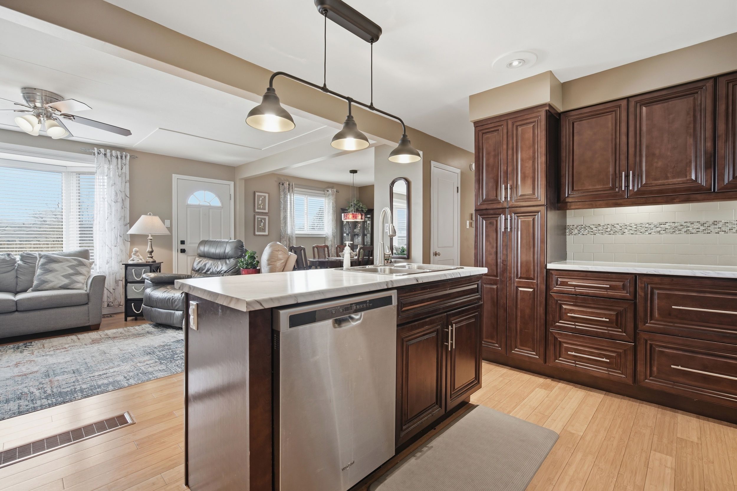 Welcome to this one-of-a kind home in Lynhurst - a thoughtfully renovated 2+1 bedroom, 2.5 bathroom ranch with 4 car heated garage - a great combination of style, function, & space both inside & out.The heart of the home was transformed in a major 2013 renovation that opened up the kitchen, living & dining rooms into a seamless, light-filled space. Beautiful bamboo floors, updated baseboards, & refreshed light fixtures flow throughout the main level. The kitchen features ample cabinetry, prep island, access to the deck and the adjacent dining room accommodates formal gatherings. An updated bay window (2018) floods the living room with natural light & a newer electric fireplace adds warmth & ambiance - this home was made for entertaining. A well-appointed mudroom keeps boots & gear neatly contained before entering the main living area.The generous primary bedroom easily holds a king size bed, offers abundant closet space, has a new window (2018) & a private 2 piece ensuite bath with sleek pocket door. Downstairs, the family can spread out in the finished recreation room, a third bedroom, a 4 piece bathroom updated in 2018, dedicated laundry & ample storage, including a crawl space under the addition - a true second living zone. Car enthusiasts, hobbyists & adventure-seekers will be captivated by the double-wide, double-deep heated 4 car garage - currently part Man Cave/Billiards Room, easily adaptable for vehicles, a boat, or trailer. The double-wide concrete driveway holds 8 vehicles, ideal when hosting friends & family. Outside, enjoy lovely front landscaping & a rear two-tiered deck - the perfect stage for summer barbecues while the kids play in the fully fenced yard. Nestled in a warm, close-knit community near parks, shopping & quality healthcare - this is a property you truly have to see to believe. Notable Updates: Furnace (2013) | Roof with 50-year shingles (2012) | Basement & crawl space spray-foamed