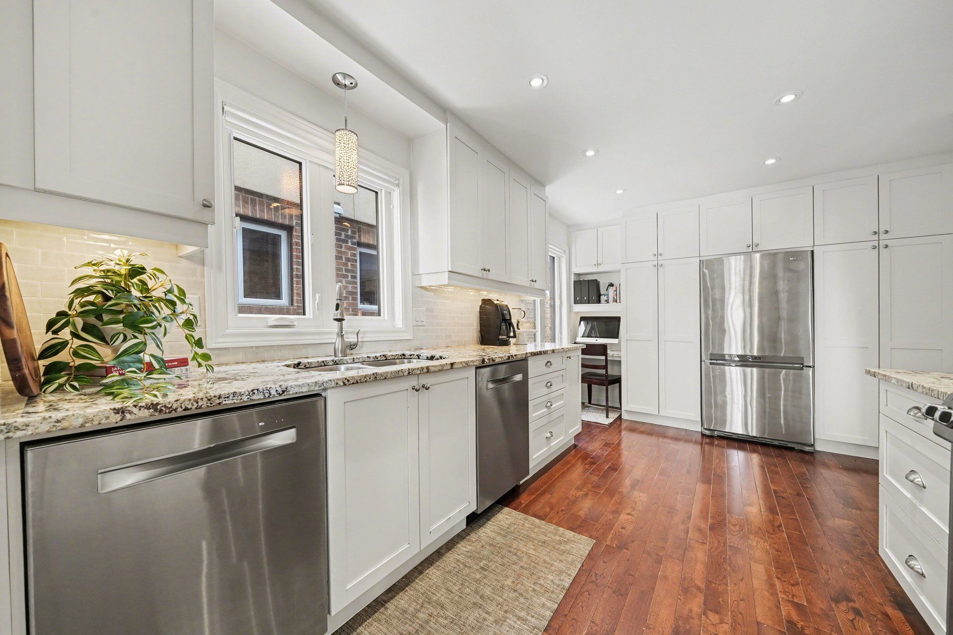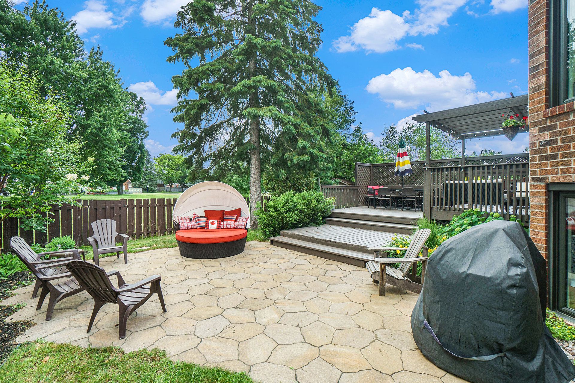 Discover refined family living in this impeccably maintained split-level home, where sophisticated finishes, spacious interiors, and a serene backyard setting create the perfect balance of comfort and luxury. The main level presents an inviting and thoughtfully designed layout featuring a separate living and dining room, both enhanced by rich hardwood flooring-perfect for both everyday living and refined entertaining. The updated kitchen is a standout space, showcasing sophisticated granite countertops, stainless steel appliances, contemporary finishes, and generous workspace and storage to inspire the home chef. Warmth and comfort define the home's gathering spaces, including a welcoming living room with a gas fireplace, and an above ground lower-level family room with brand-new carpeting-ideal for cozy movie nights, playtime, or relaxed evenings with family and friends. The second level features three well-appointed bedrooms, including a spacious primary retreat complete with his and her closets and a beautifully renovated four-piece ensuite. This spa-inspired bathroom features quartz countertops, shower with rainfall showerhead, and a deep soaker tub, creating a tranquil private oasis. A generously sized third-level bedroom with walk-in closet offers the perfect private retreat for a child, teen, or guest. The home's bathrooms have been tastefully updated, including the main bathroom featuring elegant quartz countertops. Step outside to a beautifully landscaped backyard designed for both relaxation and entertaining. A spacious deck and interlock patio create the perfect setting for hosting guests or enjoying warm summer evenings. With no rear neighbours, the outdoor space offers exceptional privacy and tranquility. Ideally located just steps from a park and public transit, this move-in-ready home presents a wonderful opportunity for families seeking comfort, convenience, and a welcoming community.
