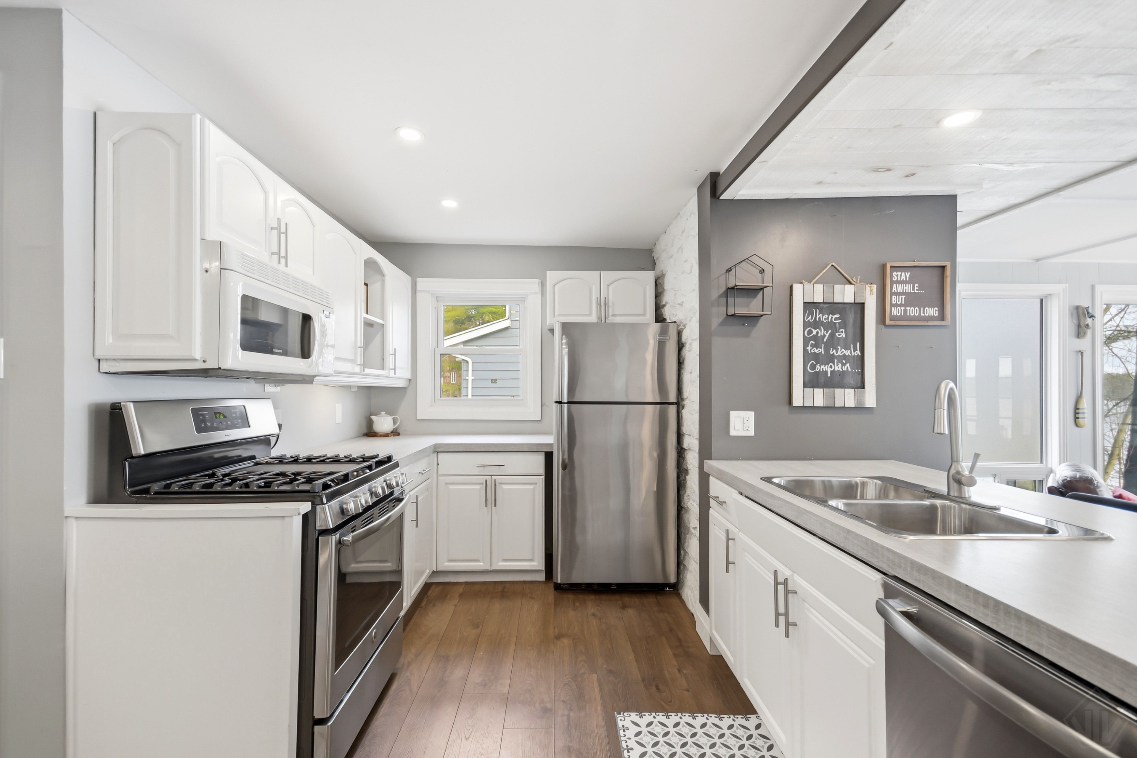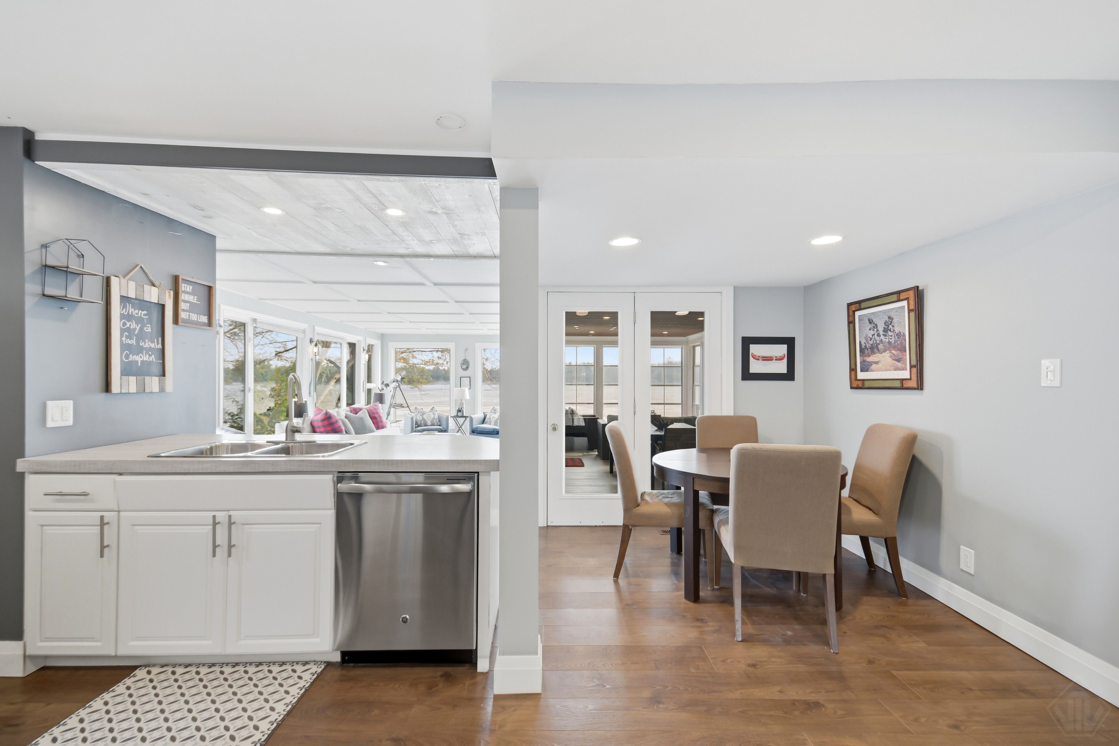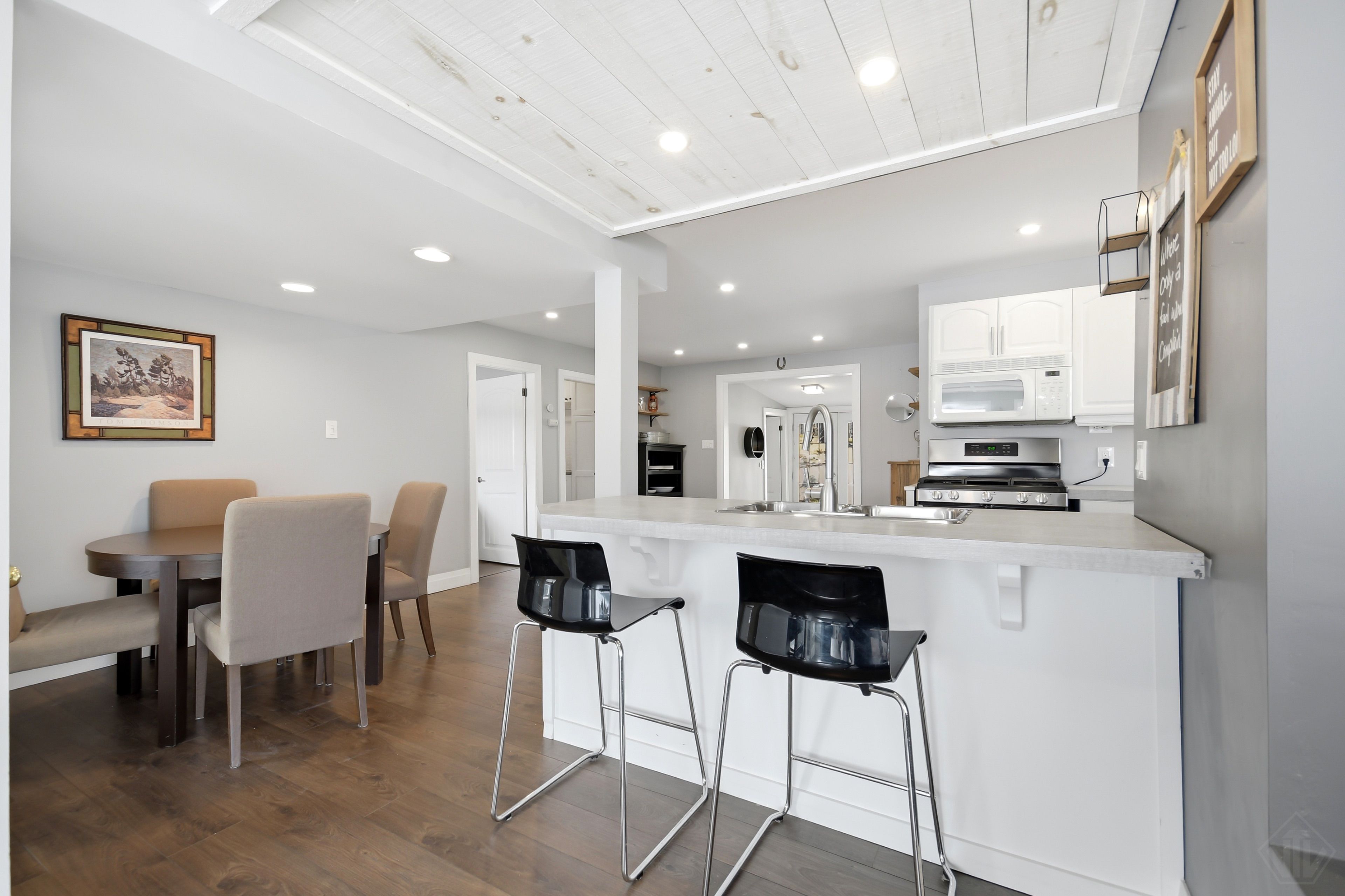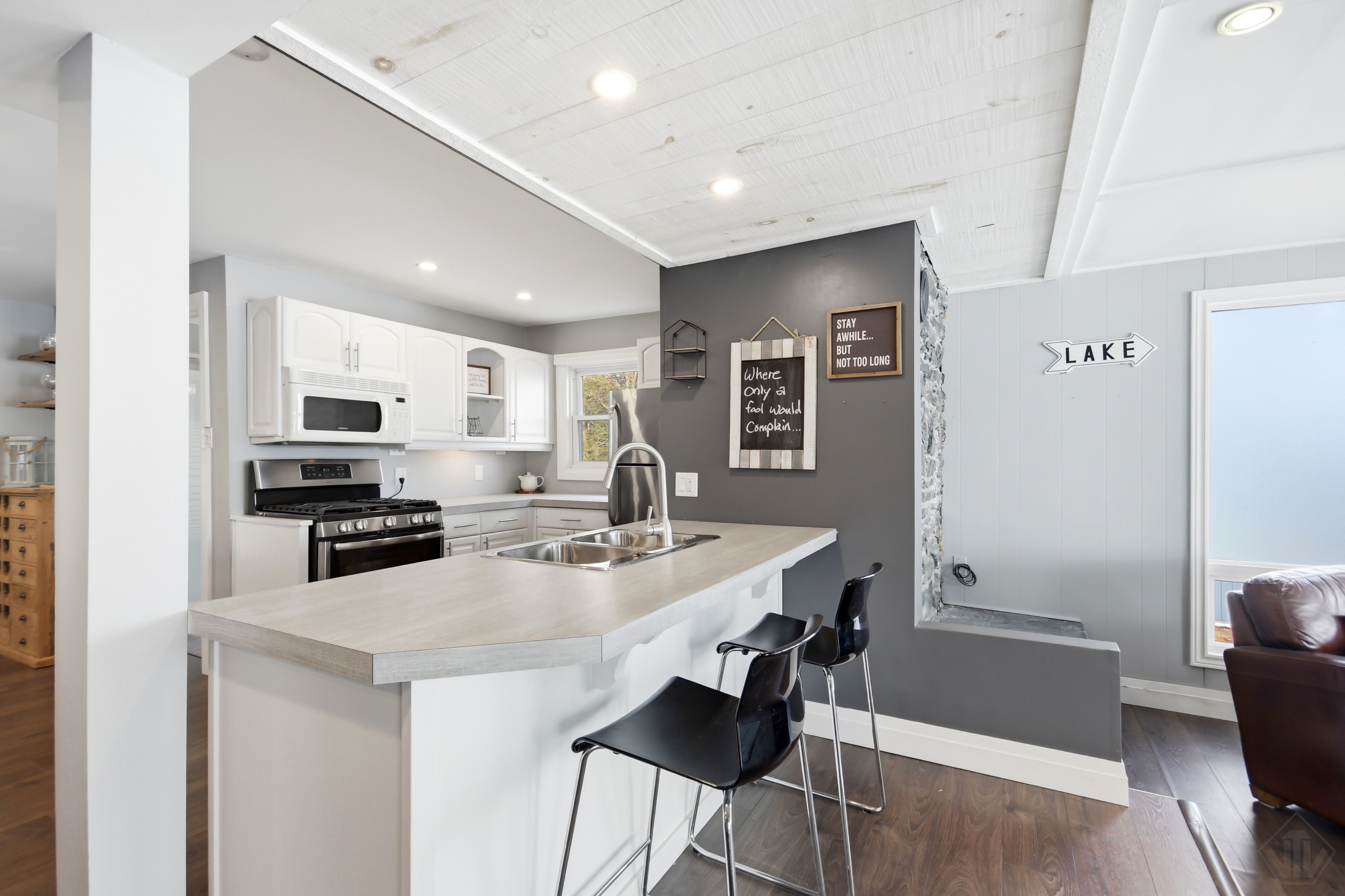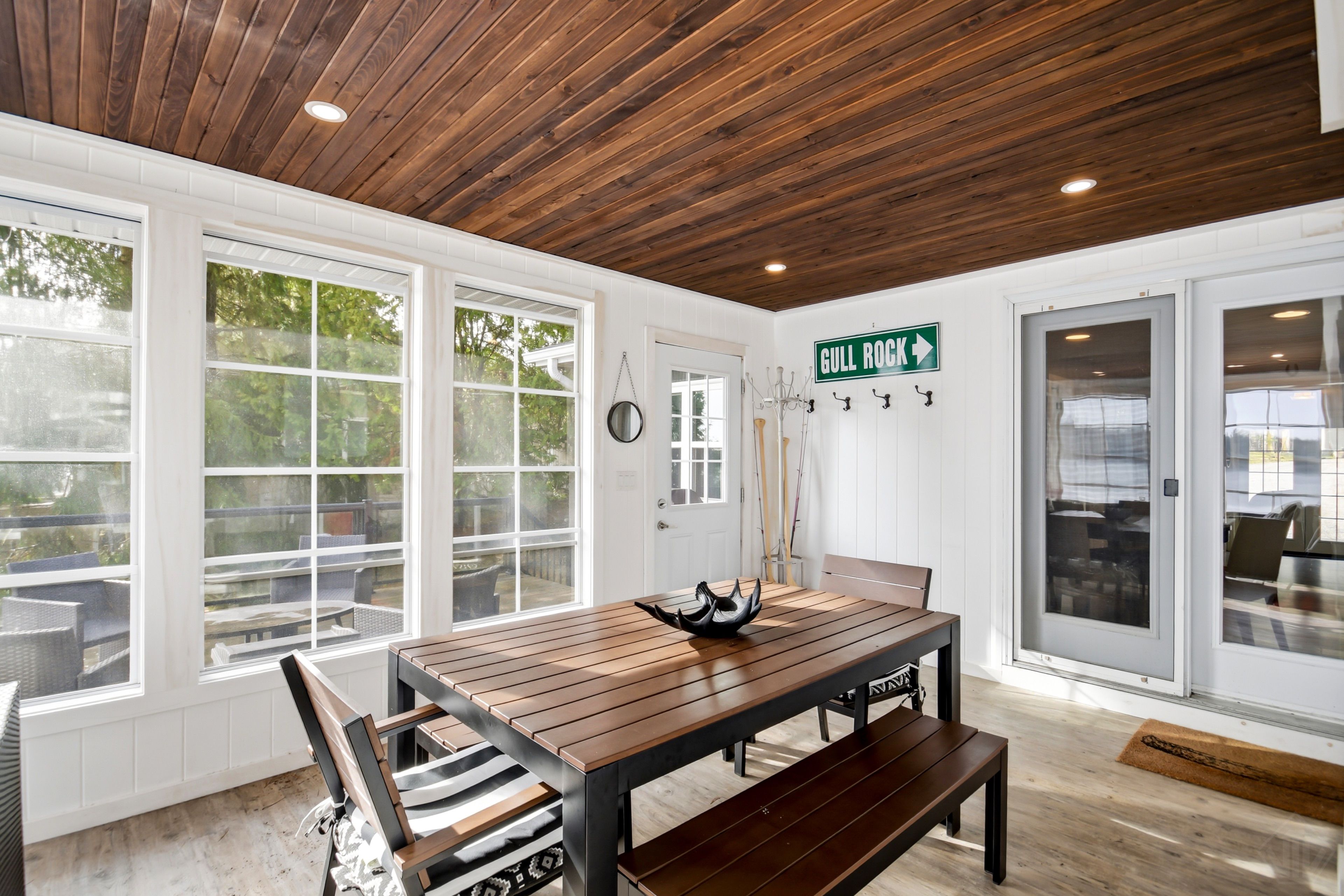 Welcome to this beautifully updated turnkey 1,164 sq ft bungalow cottage on Gull Lake, offering 75 ft of clean, sandy north-east shoreline and stunning lake views. Perfectly positioned to capture the morning sun, this 3-bedroom, 1-bathroom cottage blends classic Muskoka charm with modern updates. Inside, the bright open-concept kitchen, dining, and living room feature large windows that fill the space with natural light and showcase picturesque lake views. The kitchen offers ample cabinet space and island seating, perfect for entertaining or casual family meals. Just off the main living area is the inviting Muskoka room with wood ceilings and large windows, providing a beautiful place to relax while enjoying peaceful waterfront scenery. The cottage layout includes two bedrooms at the back and a primary bedroom at the front featuring views of Gull Lake, along with a 3-piece bathroom. A newly renovated laundry room features extensive built-in cabinetry and functions well as a walk-in pantry and storage area. Step outside to a large deck with glass railings off the Muskoka room, leading to new steps down to the water and a spacious dock with pergola, ideal for swimming, boating, and relaxing at the lake. The property offers a long driveway with plenty of parking and a spacious shed. A charming bunkie with wood walls and ceilings, power, and a bedroom loft provides great extra sleeping space, and a cool hang out spot for kids and overflow guests. Nearby the sports court provides added entertainment and activity. A strategically positioned outhouse with a composting toilet offers convenience for bathroom breaks. Serviced by municipal water, natural gas, and septic, the cottage offers year-round convenience. Located less than 3 minutes to town and amenities, and close to a beautiful park with tennis courts, baseball diamond, playground, beach, and volleyball court, this property offers the perfect balance of peaceful waterfront living and convenience.