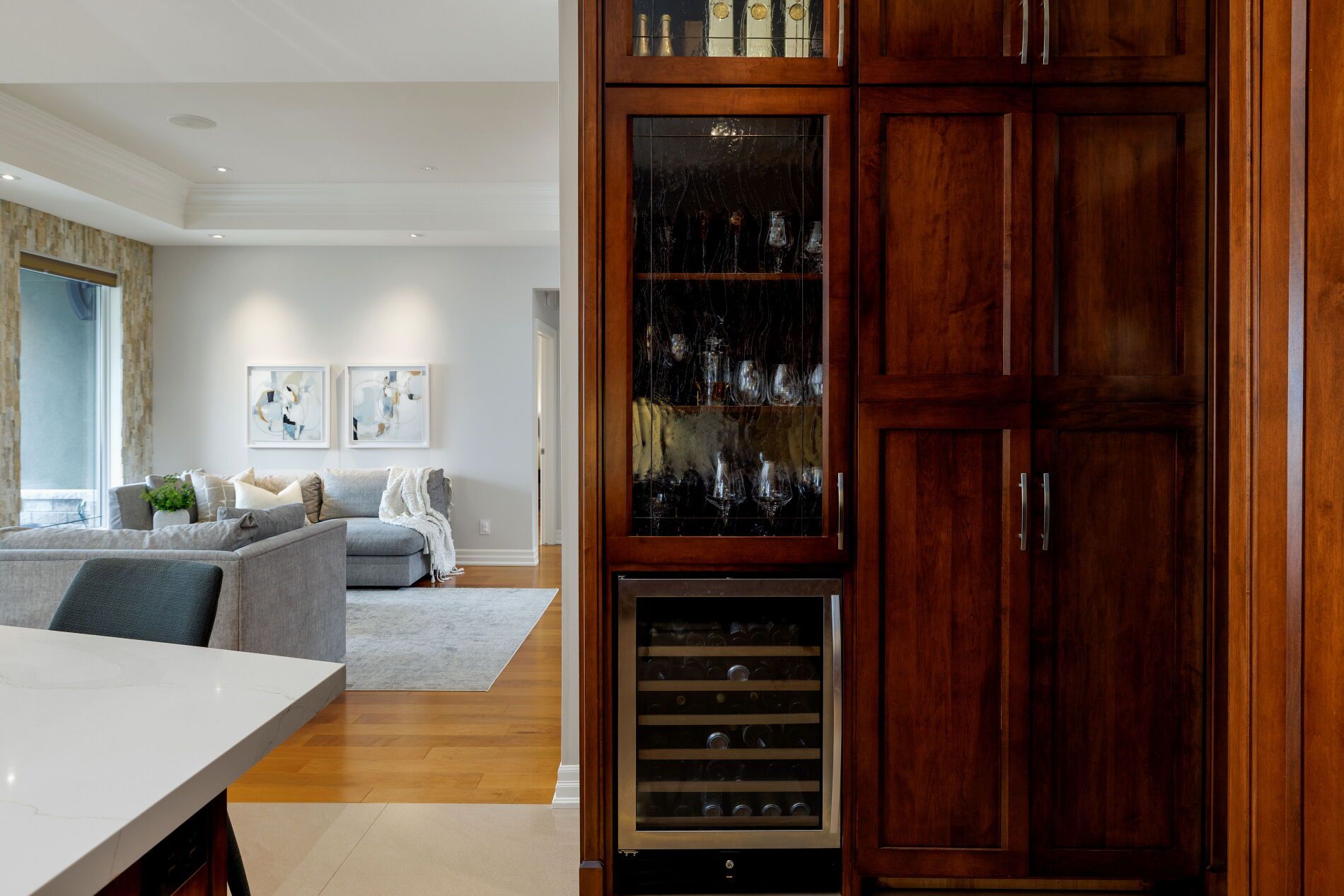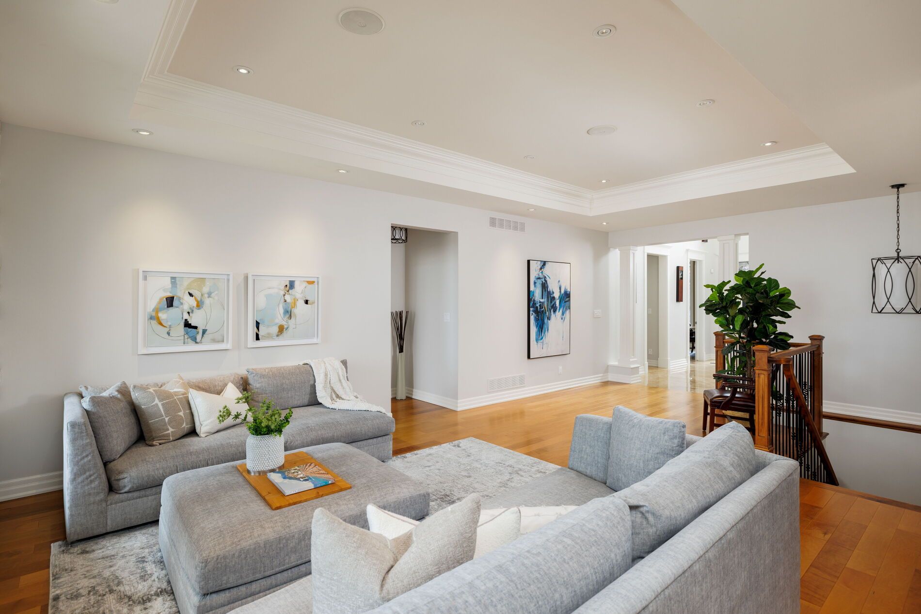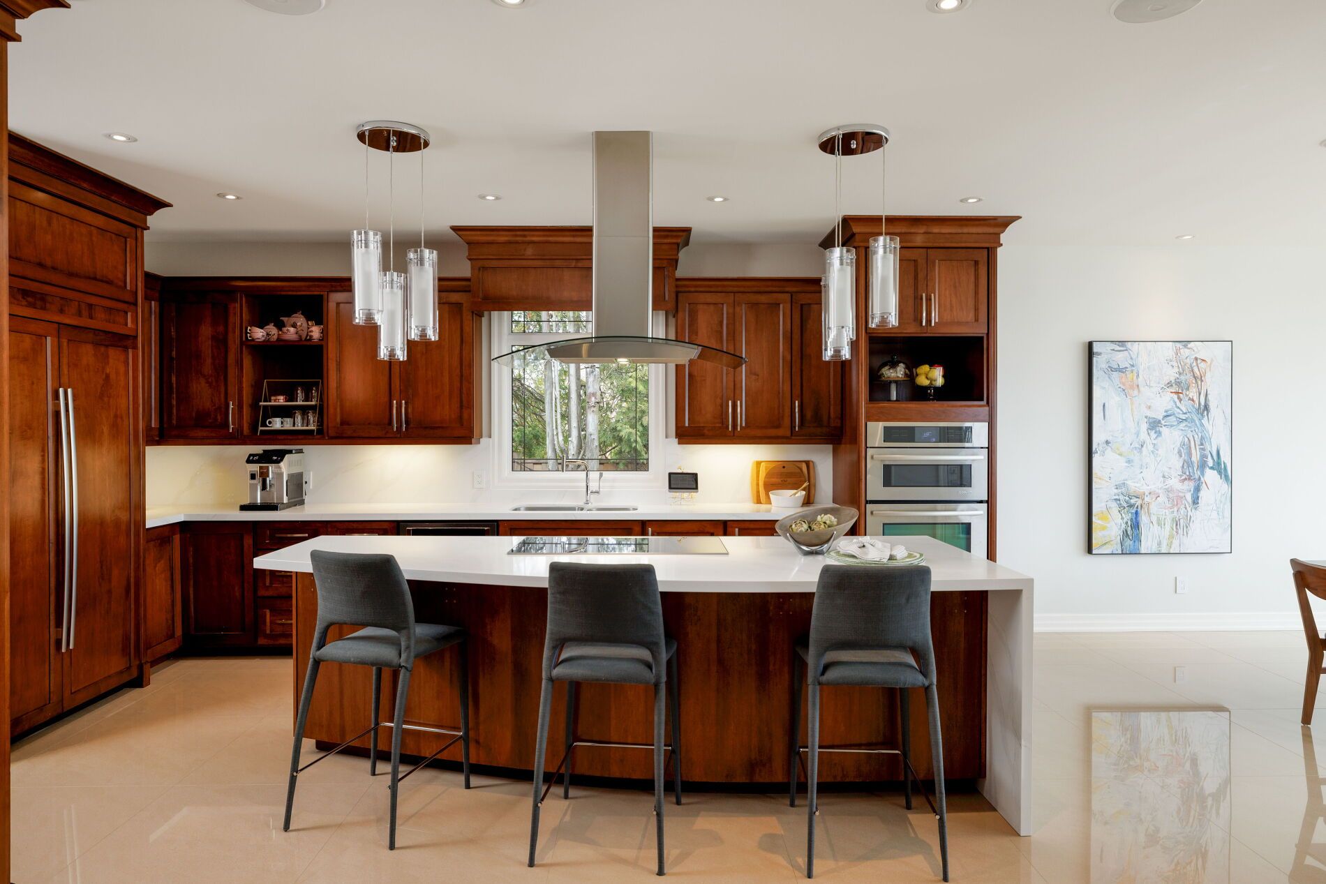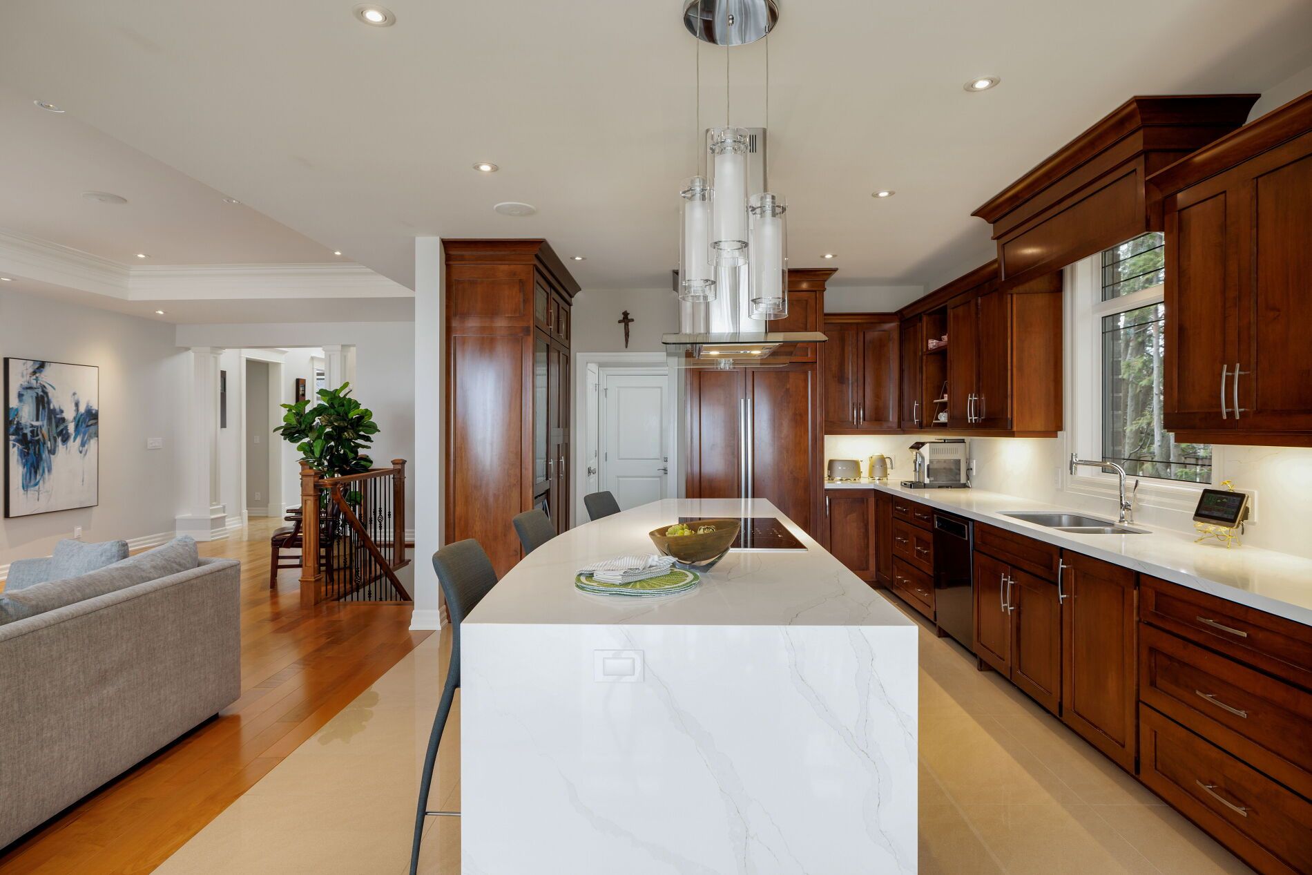 An upscale lakeside lifestyle awaits in Lakeland Landing, an exclusive detached bungalow condominium community in Grimsby on the shores of Lake Ontario. Siding onto a grove of trees, this stunning 4-bedroom residence with a beautifully finished walkout basement is one of only four estates with direct beach access. Enjoy nearby waterfront parks, the Grimsby Waterfront Trail, Forty Mile Creek Park, Foran's Marina, the shops and restaurants of Grimsby on the Lake, and wineries and fine dining minutes away with easy QEW access at the gateway to Ontario's Wine Country. Outstanding curb appeal and magnificent professional landscaping with a cobblestone driveway accommodating 6 cars, extensive use of armour stone, and the backyard is a private lakeside retreat with two terraces designed to capture sweeping water views. Custom-built by DeHaan Homes, the home showcases exceptional craftsmanship with 9 and 10-ft ceilings, engineered hardwood floors, custom millwork, designer lighting, and expansive windows capturing breathtaking lake views. The open-concept main level features functional, elegant living spaces, a great room with a quartzite feature wall, 2-sided gas fireplace and exceptional lake views, a chef's kitchen with upgraded quartz counters, 10' waterfall island with a breakfast bar, and premium appliances, and a dining area with a walkout to a covered terrace with a fireplace, frameless glass railings and a custom wrought iron staircase to the lower terrace. The primary suite offers lake views and a luxurious 5-piece ensuite. The walkout lower level includes a renovated family room with a fireplace, a second kitchen with Thermador appliances, a home theatre, two bedrooms, a 4-piece bath and terrace access. Recent upgrades (2022-2025) include renovated living spaces, updated kitchens, EV charger rough-in, electrical upgrades, and security window film.