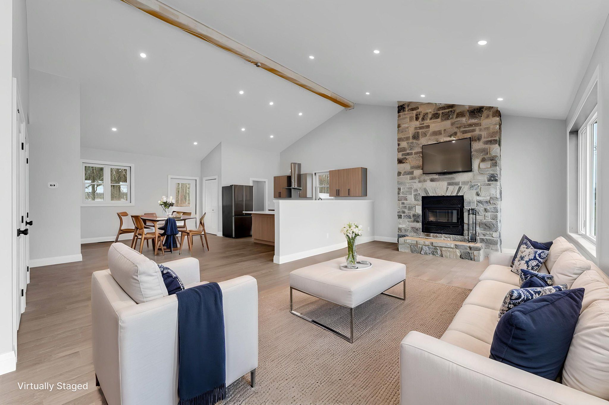 Welcome to island living at its finest - 99 Blue Heron Lane on beautiful Howe Island. Nestled along the shores of Johnson's Bay with direct access to the Bateau Channel and the St. Lawrence River, this recently renovated two-storey home offers the perfect blend of luxury, comfort, and waterfront lifestyle.Thoughtfully designed to capture breathtaking water views and endless sunshine, the home features soaring vaulted ceilings and expansive windows that flood the space with natural light. The open-concept living area is anchored by a stunning stone wood-burning fireplace, creating a warm and inviting atmosphere year-round. The chef-inspired kitchen is a true showpiece, complete with marble counter tops, high-end cabinetry, a spacious pantry, and premium finishes throughout. Engineered hardwood flooring and large-format tile add a refined touch, while spa-like bathrooms offer glass showers and a relaxing soaker tub. Upstairs, the private primary retreat boasts a walk-in closet and a beautifully appointed en-suite bath, offering a peaceful escape at the end of the day. Set on a private lot just steps from the water, enjoy your own dock and effortless access to boating, and all that island life has to offer. Whether you're entertaining guests or unwinding by the shoreline, this property delivers an exceptional waterfront experience in one of the region's most sought-after locations.