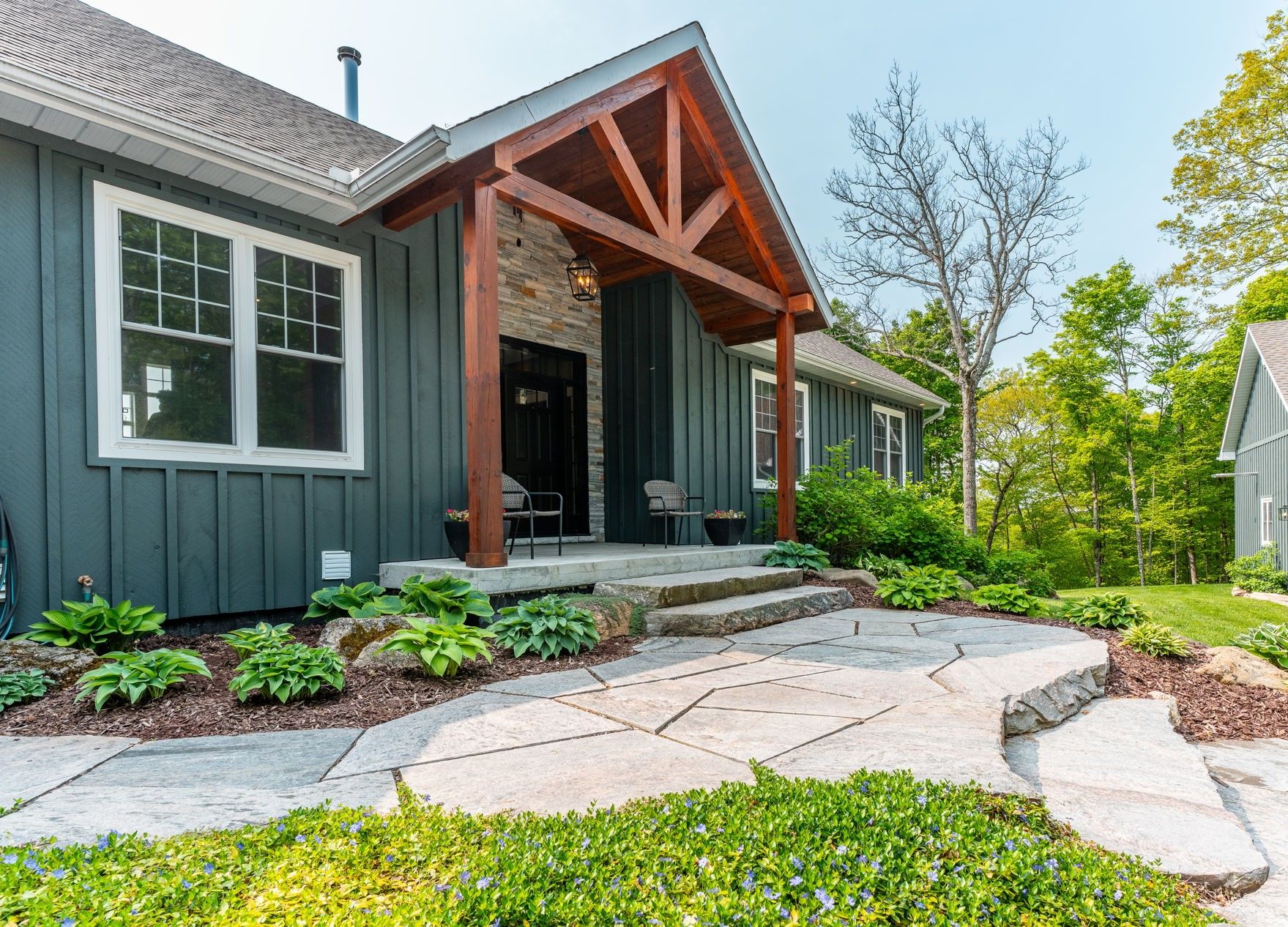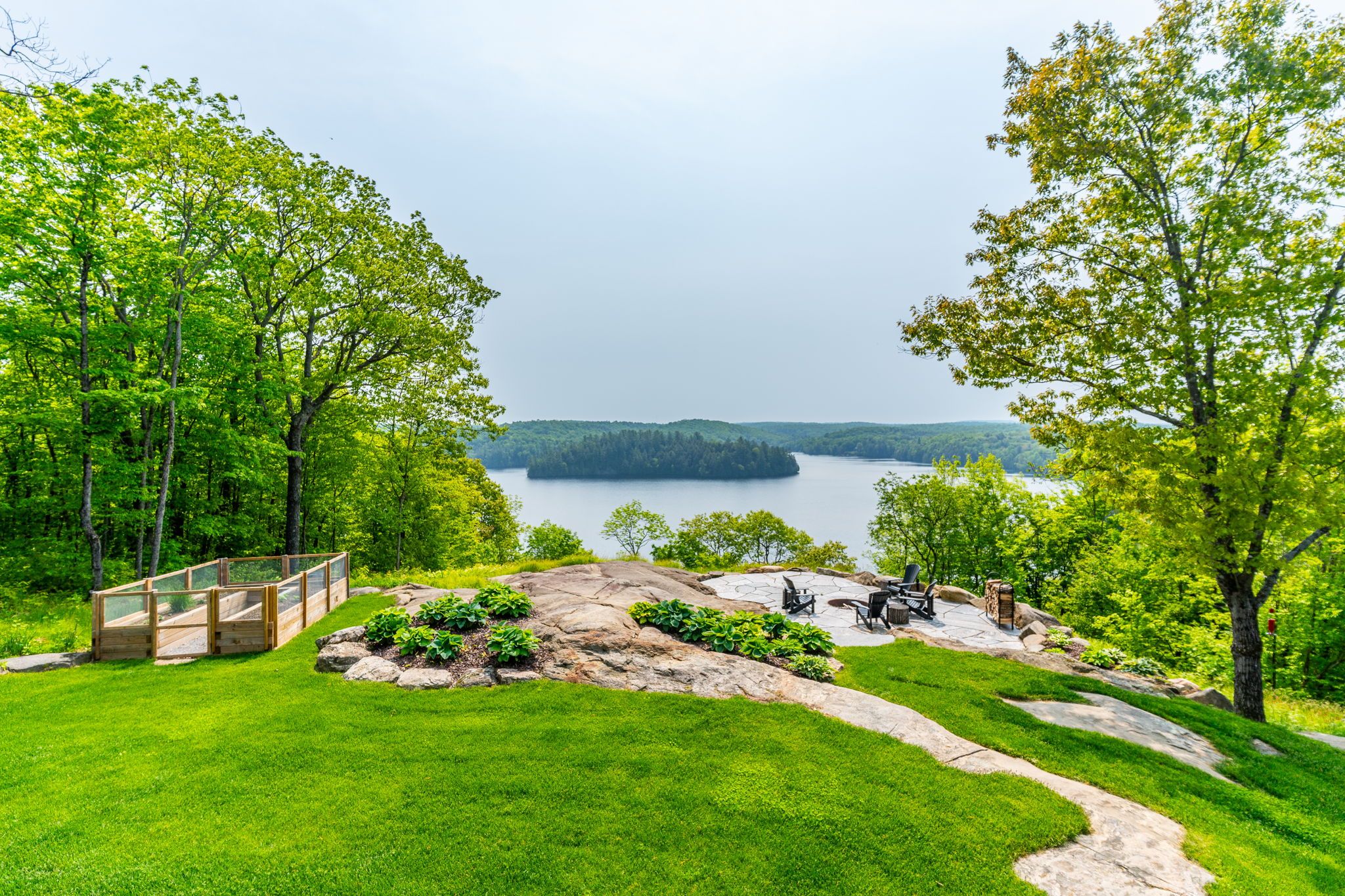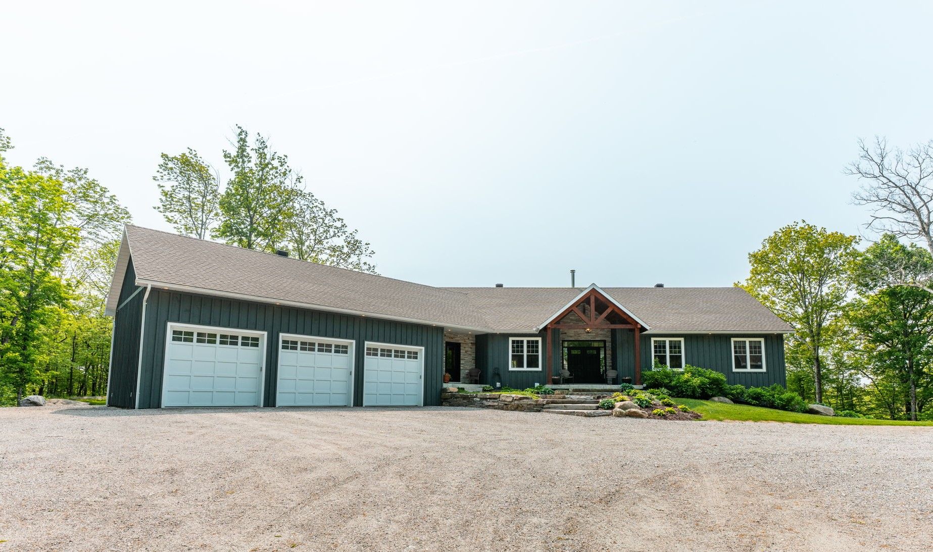 Nestled on 54 sprawling acres along the private shores of Loon Lake, this meticulously maintained estate offers an unparalleled blend of luxury and wilderness. With 800 feet of deep waterfront and over 5,000 square feet of refined living space, the property is a masterpiece of design and privacy. The journey begins at the timber-frame porch, leading into a grand Great Room where a floor-to-ceiling dry-stack stone fireplace and expansive windows invite breathtaking panoramic views indoors. The heart of the home flows seamlessly to an 850-square-foot glass-railed deck, perfect for watching the sunrise over a tranquil horizon. The kitchen is a chef's delight, featuring stainless steel appliances and soft-close cabinetry, while the main-floor primary suite serves as a true sanctuary with heated ensuite floors and direct access to a screened-in Haliburton Room.The home's versatility continues on the lower level, a walk-out space equipped with two additional bedrooms, a second kitchen, a games room, and a cozy living area. This level opens to a dedicated hot tub room, where stone flooring and stacking windows blur the line between indoor comfort and the natural beauty outside. Beyond the main residence, the property is designed for the ultimate hobbyist, featuring a heated triple garage with a drive-through bay and a separate 1,800-square-foot heated workshop. Modern essentials like a full-property generator, 200-amp service, and wide, accessible hallways ensure peace of mind. Outside, the landscape is dotted with perennial gardens, dry-stack stone walls, and a natural granite firepit. Whether you are hunting in your own backyard, exploring nearby snowmobile trails, or taking a short ATV ride down to the deep-water dock, this estate represents the gold standard of lakeside living.
